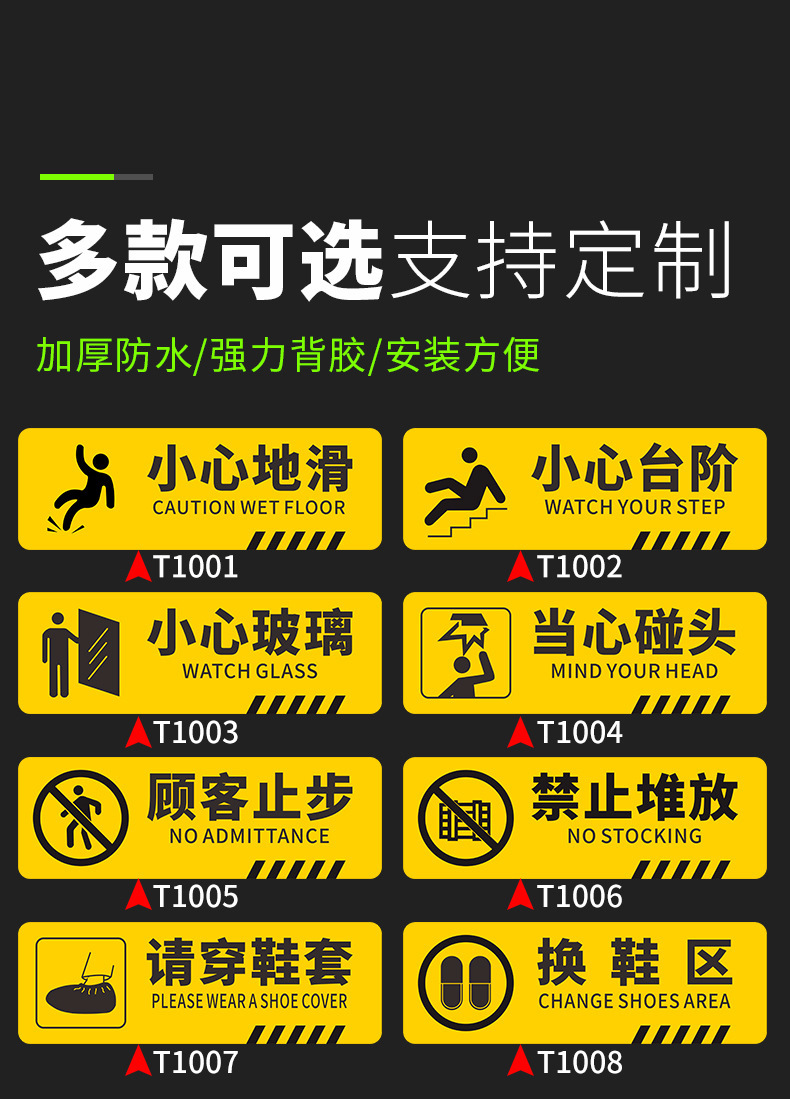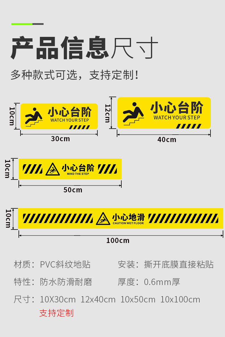 머리 부딪힘 방지, 조심스럽게 미끄러지기 방지 경고 스티커, 계단 안전 표지, PVC 내마모성 미끄럼 방지 알림 스티커