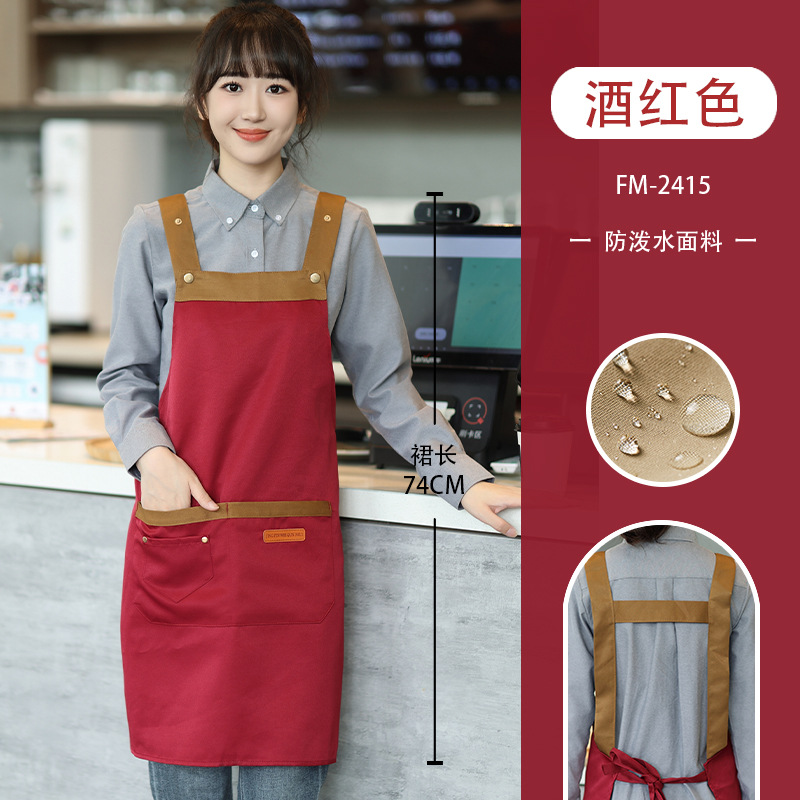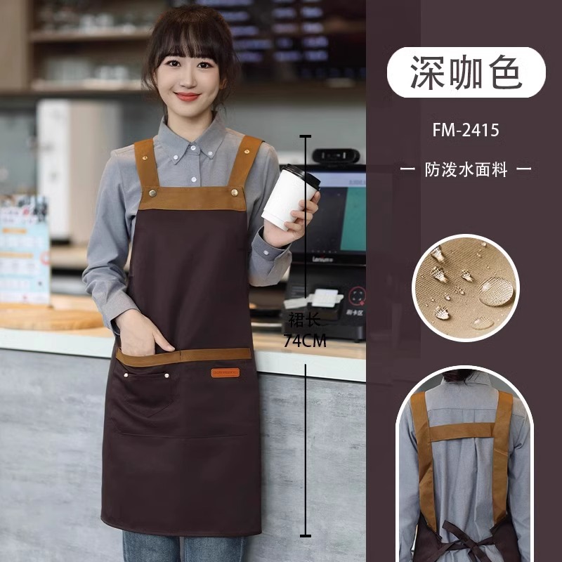 케이터링용 맞춤형 로고 프린팅이 가능한 방수 앞치마, 커피 밀크티 가게 주방 웨이터 작업복 여성용 앞치마