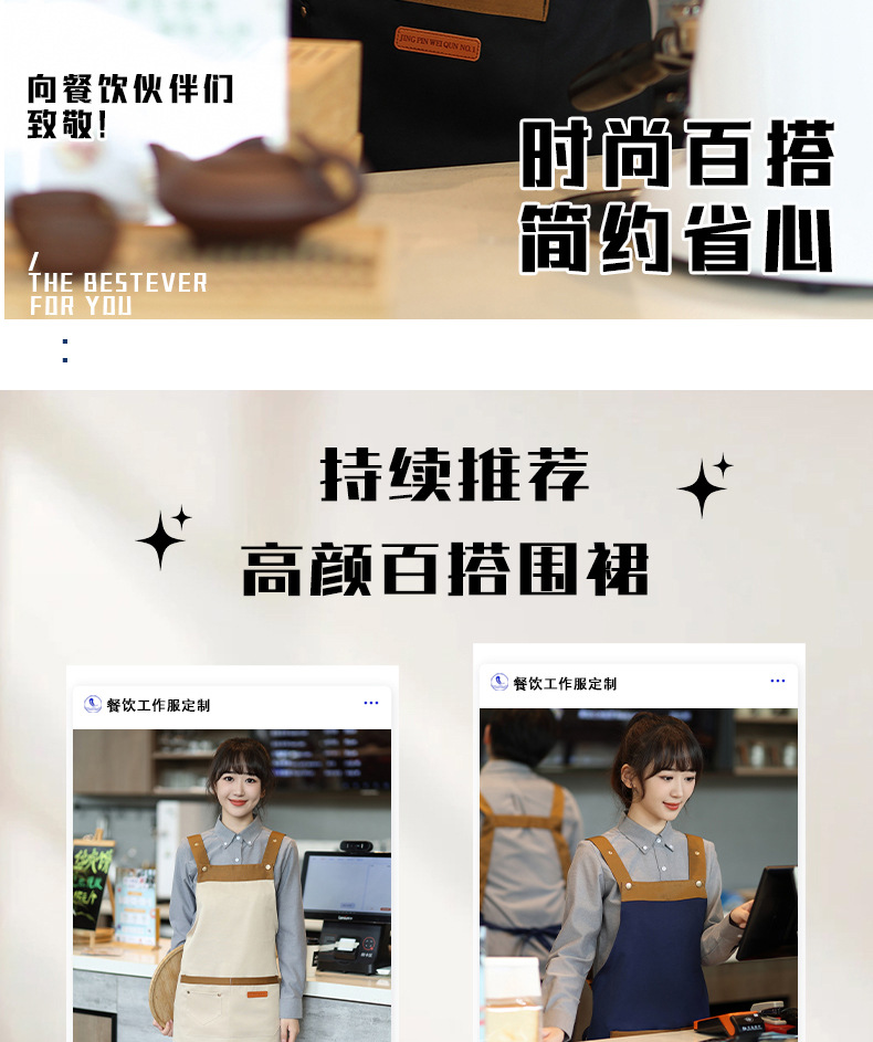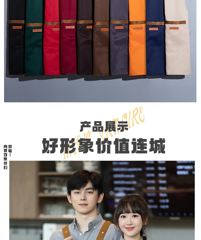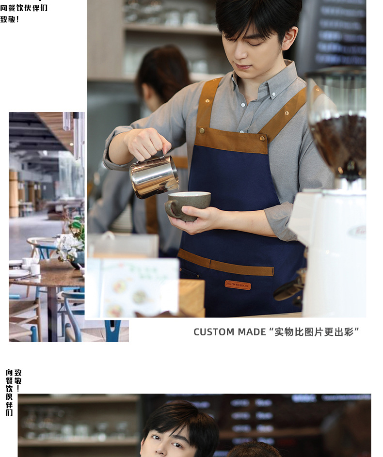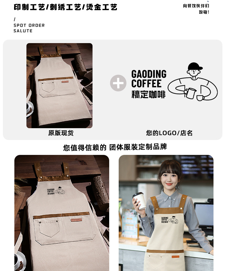 케이터링용 맞춤형 로고 프린팅이 가능한 방수 앞치마, 커피 밀크티 가게 주방 웨이터 작업복 여성용 앞치마스토어 가기