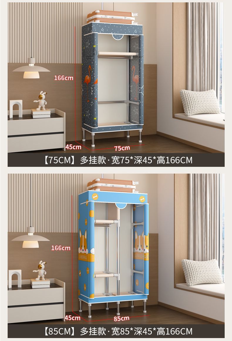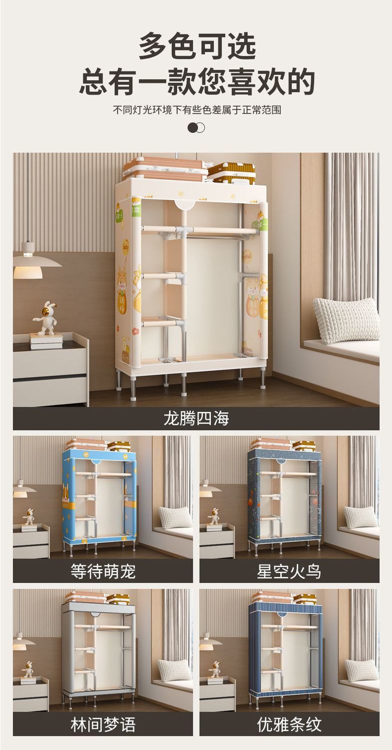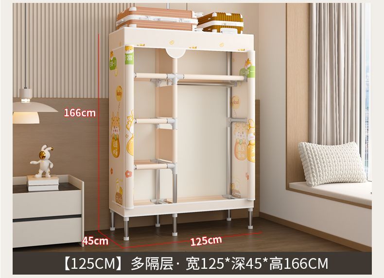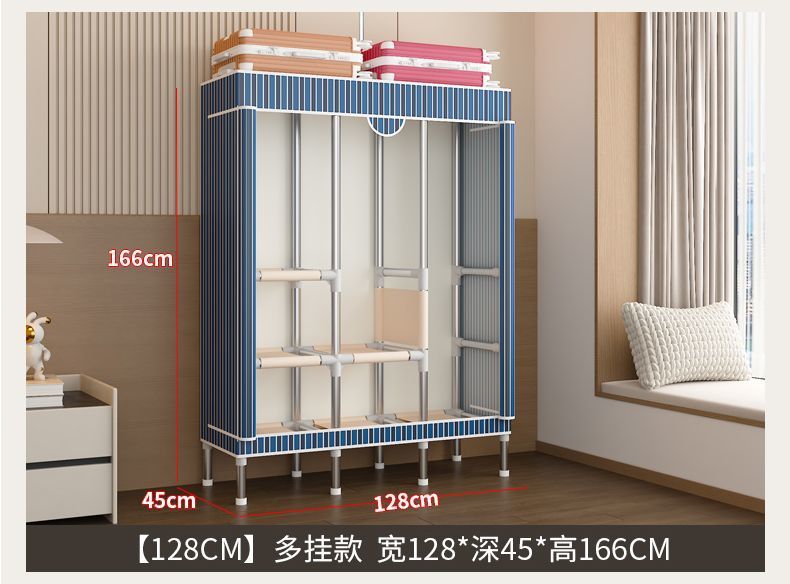 두꺼운 옥스포드 천 간단한 옷장 강철 파이프 조립 전체 지퍼 폐쇄형 더블 모델 멀티 칸 침실 보관 옷장스토어 가기