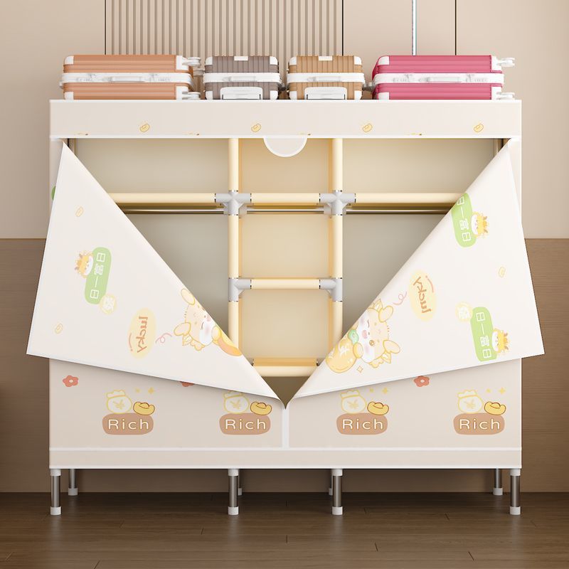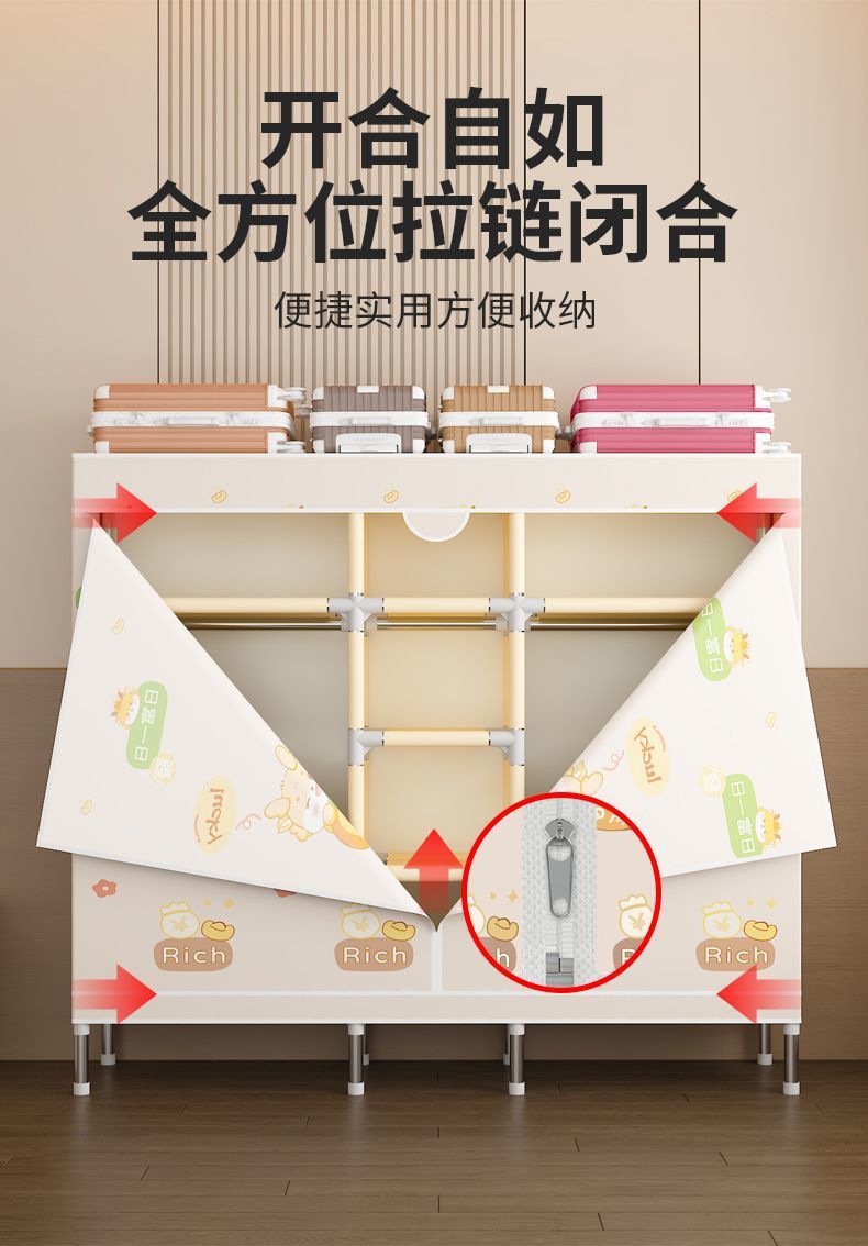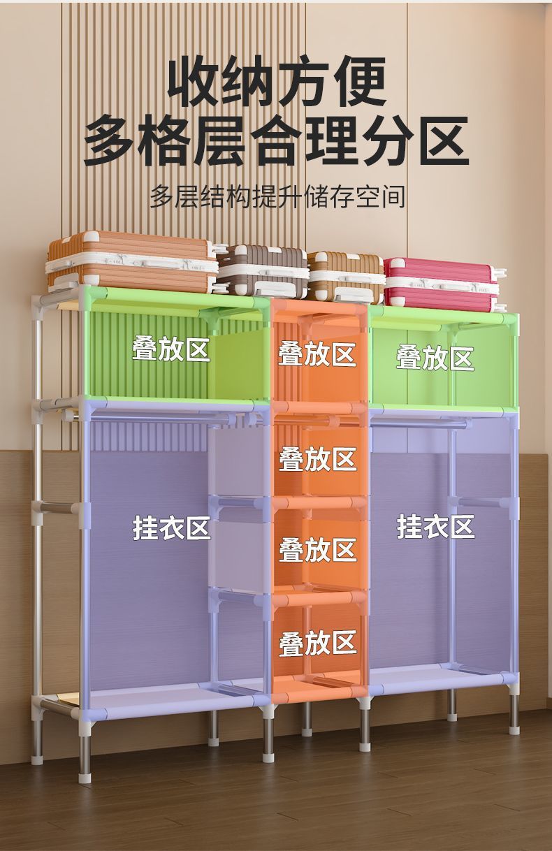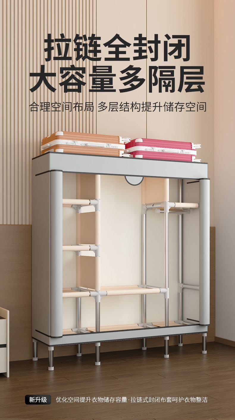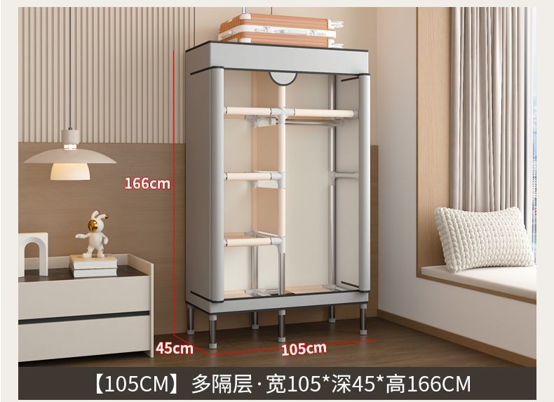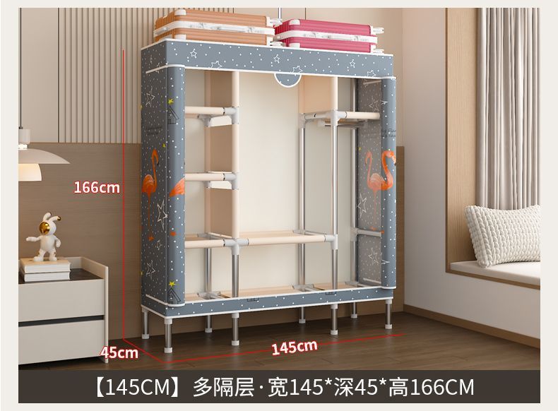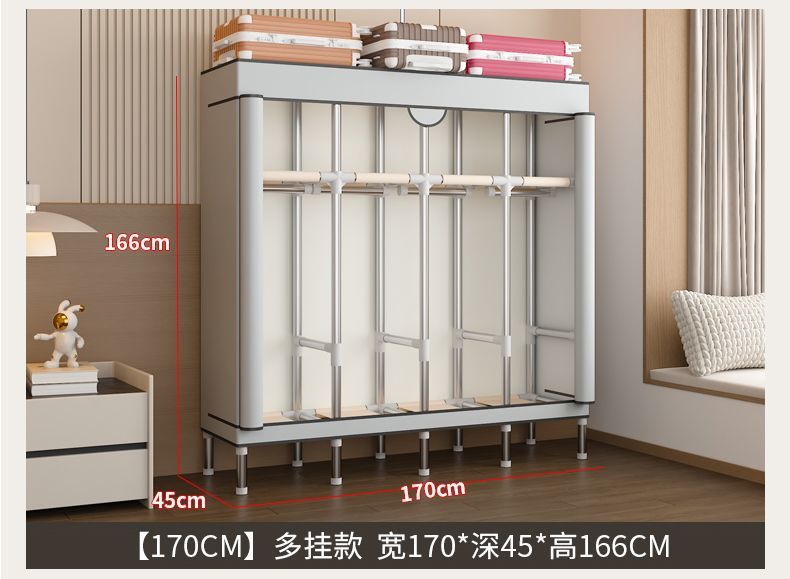 두꺼운 옥스포드 천 간단한 옷장 강철 파이프 조립 전체 지퍼 폐쇄형 더블 모델 멀티 칸 침실 보관 옷장