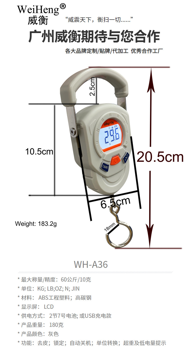 WeiHeng WeiHeng WH-A36 새로운 낚시 저울 60kg 후크 저울 가정용 식료품 쇼핑 저울 광동 전자 저울스토어 가기