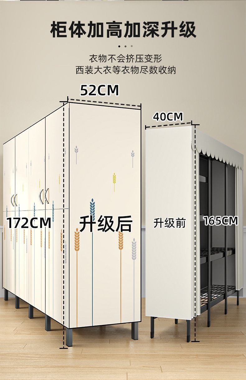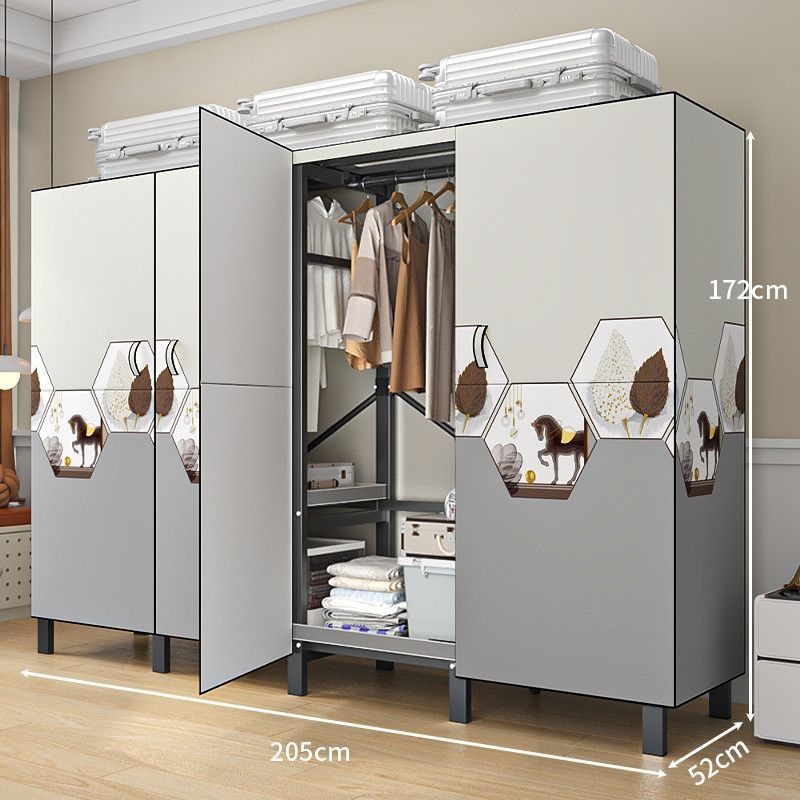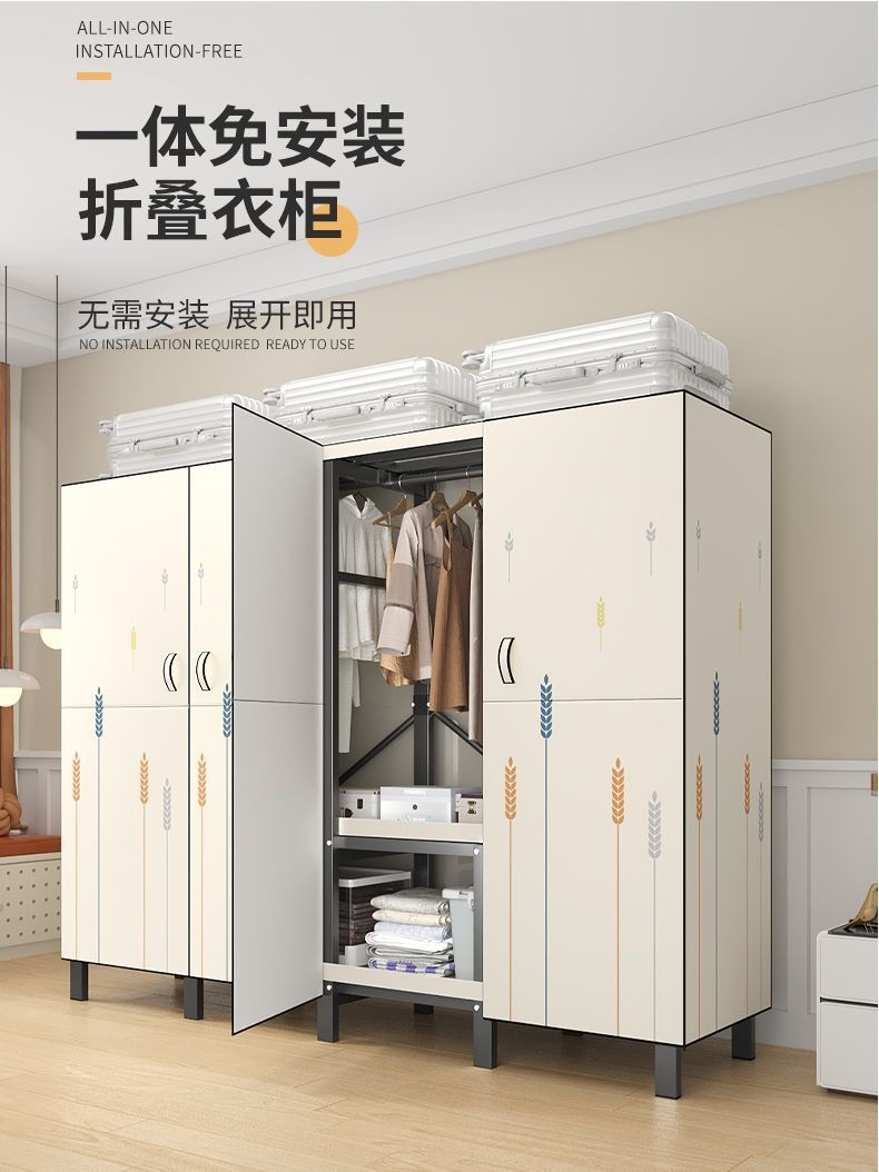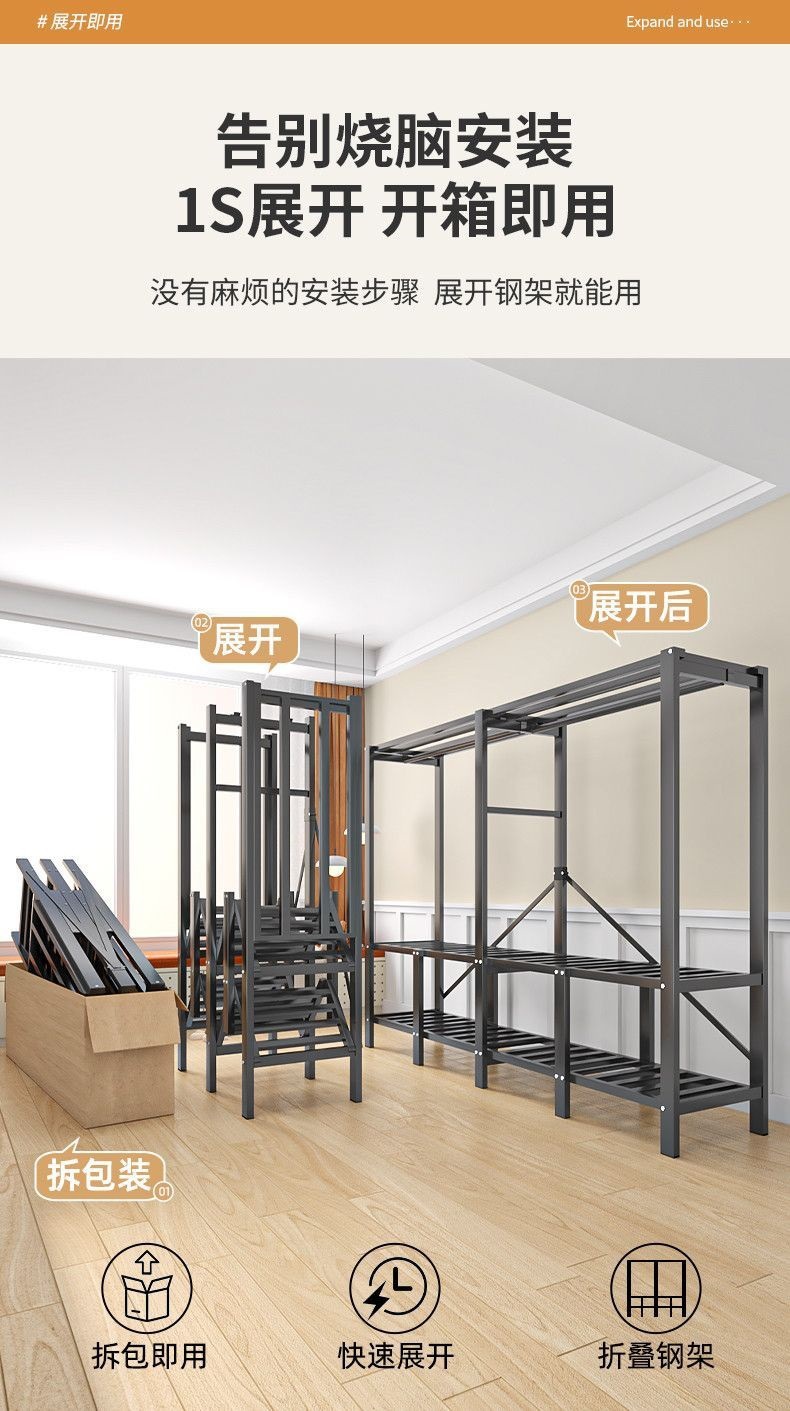 설치가 필요 없는 접이식 옷장, 임대 주택, 두껍고 강화된 강철 프레임, 게으른 사람들을 위한 침실 옷장