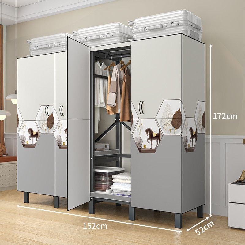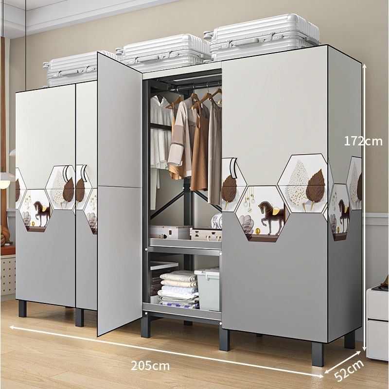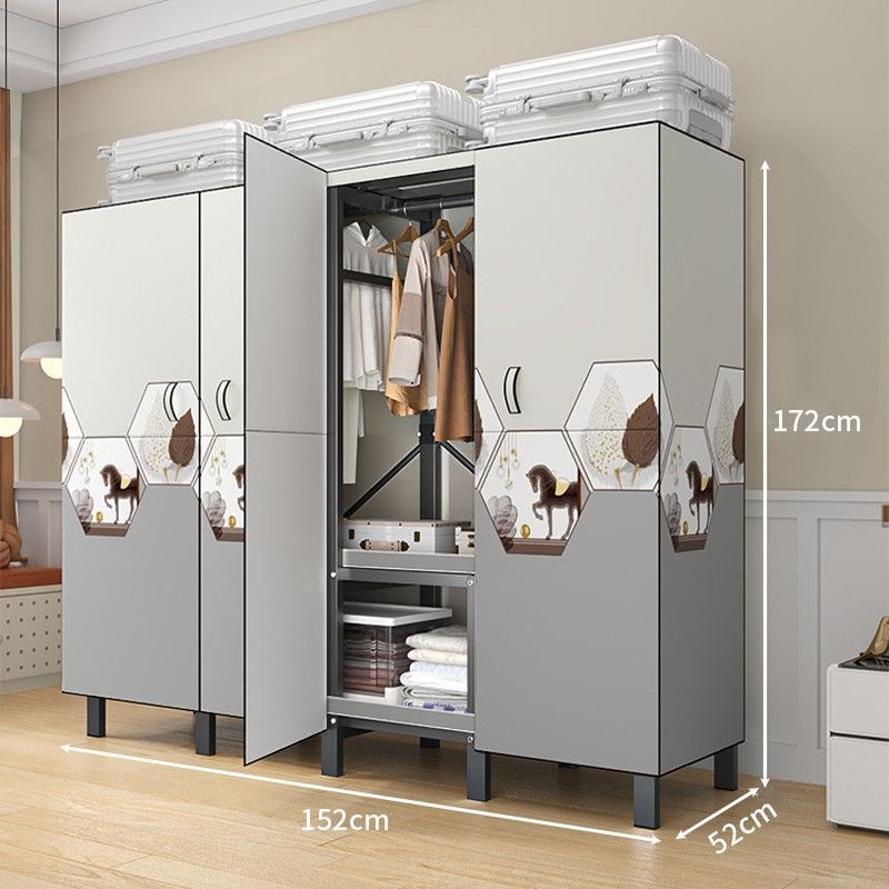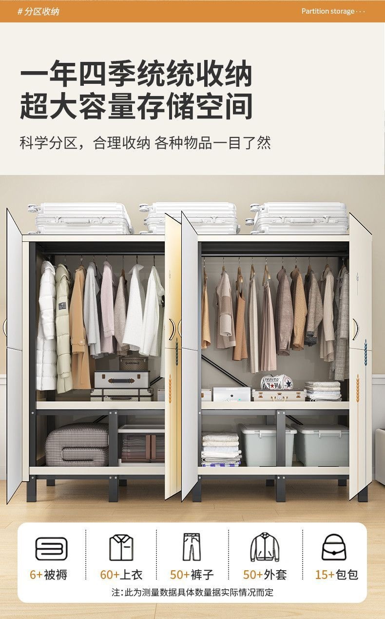 설치가 필요 없는 접이식 옷장, 임대 주택, 두껍고 강화된 강철 프레임, 게으른 사람들을 위한 침실 옷장