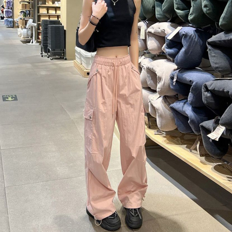 가을 겨울 여성을 위한 얇은/벨벳 아메리칸 파라슈트 작업복 새로운 하이웨이스트 루즈 속건성 등산 스포츠 와이드 팬츠스토어 가기