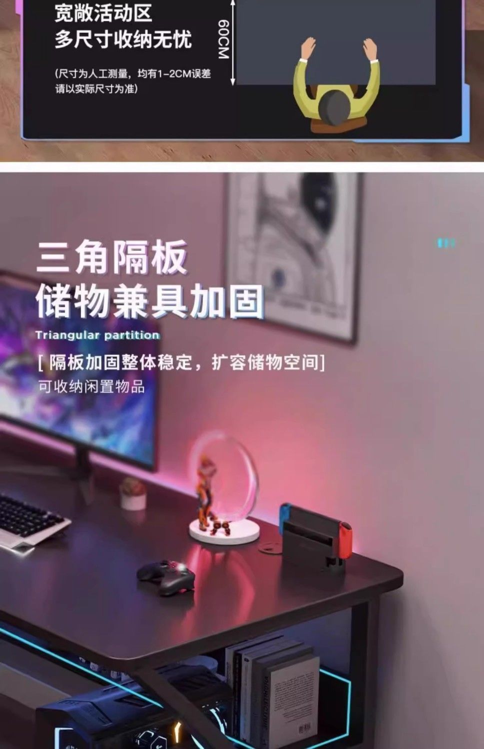• 60cm 따뜻한 흰색 [직사각형 좁은 데스크탑] 싱글 테이블