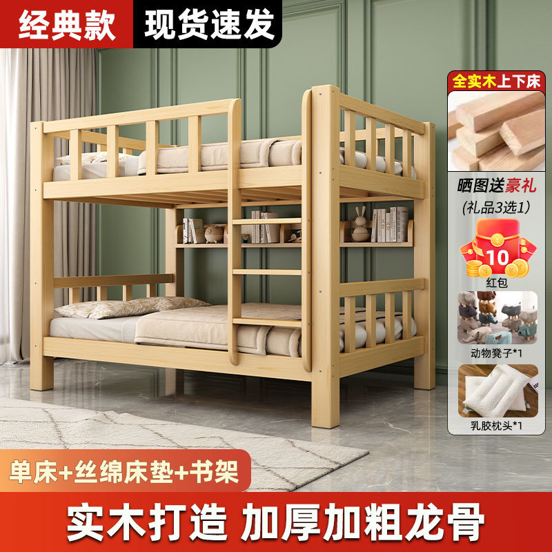 • 원목 이층 침대 + 책장 + 실크 침대 매트리스*2
