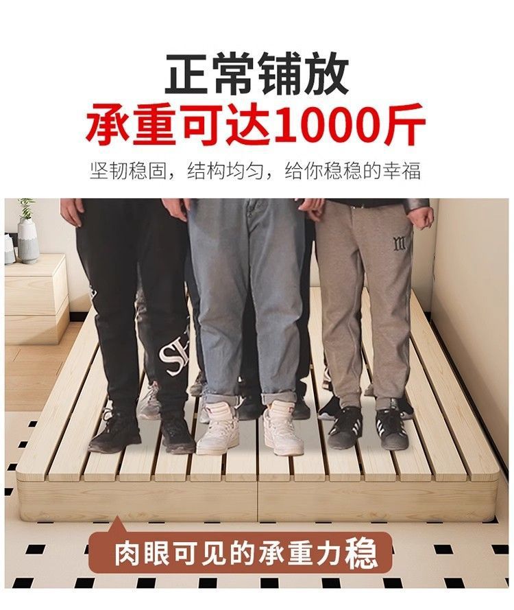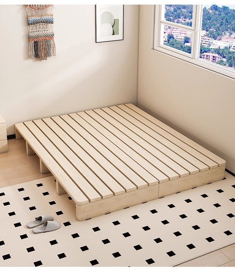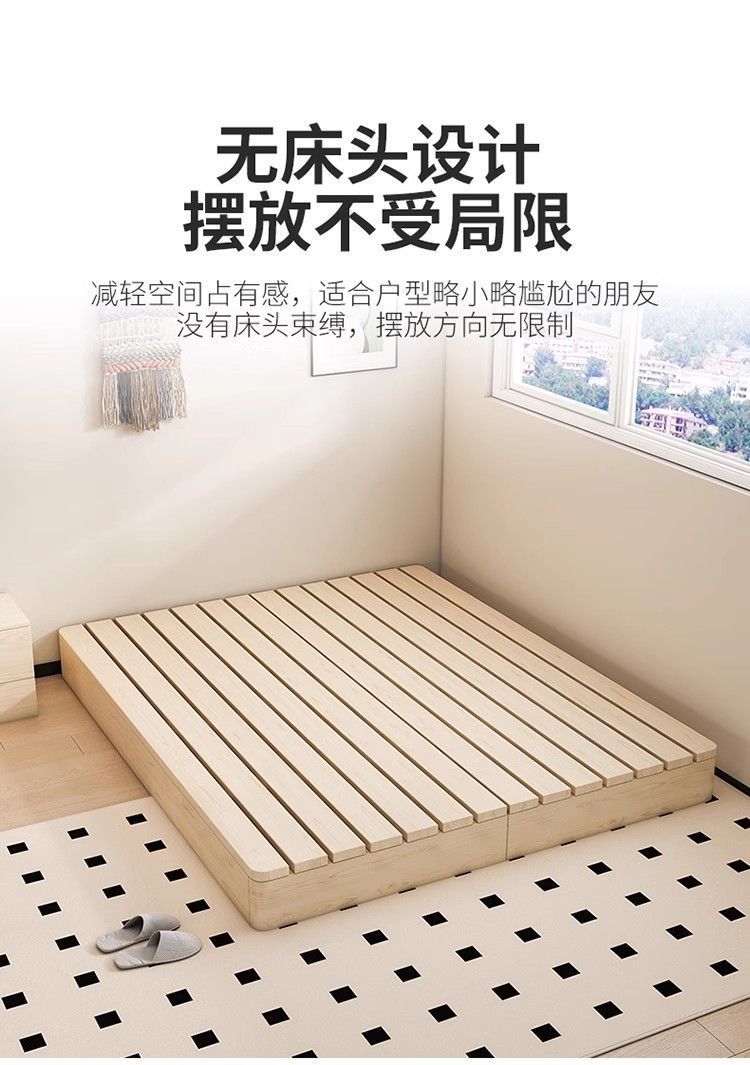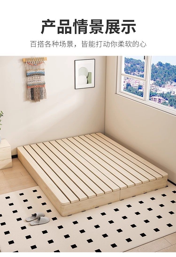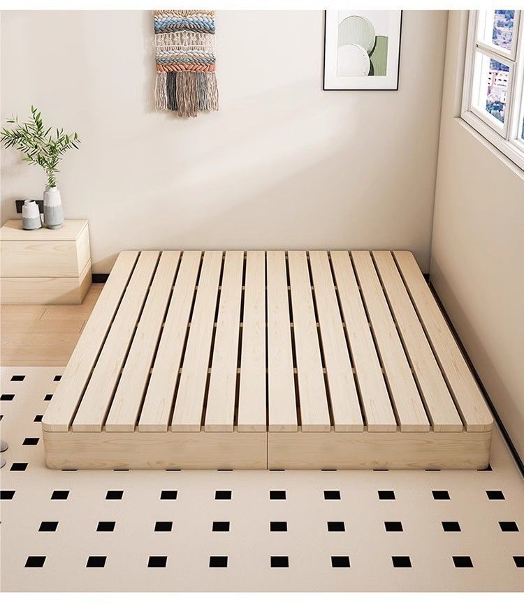 원목 침대 현대적인 미니멀리스트 임대실 플로어 스탠딩 낮은 침대 프레임 더블 침대 일본식 다다미 침실 나무 침대 프레임스토어 가기