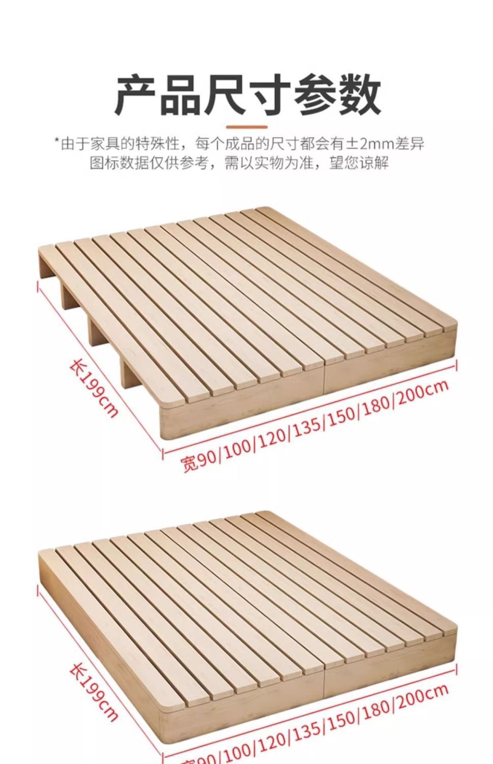 • 올 원목 침대 프레임 높이 5.9cm [가장자리 밀봉 및 사방 보강 버전]