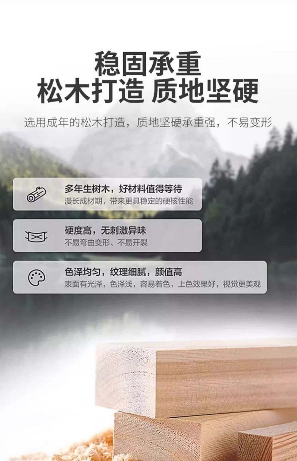 • 올 원목 침대 프레임 높이 4.5cm [가장자리 밀봉 및 사방 보강 버전]