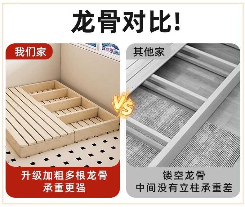 • 올 원목 침대 프레임 높이 16cm [가장자리 밀봉 및 사방 보강 버전]