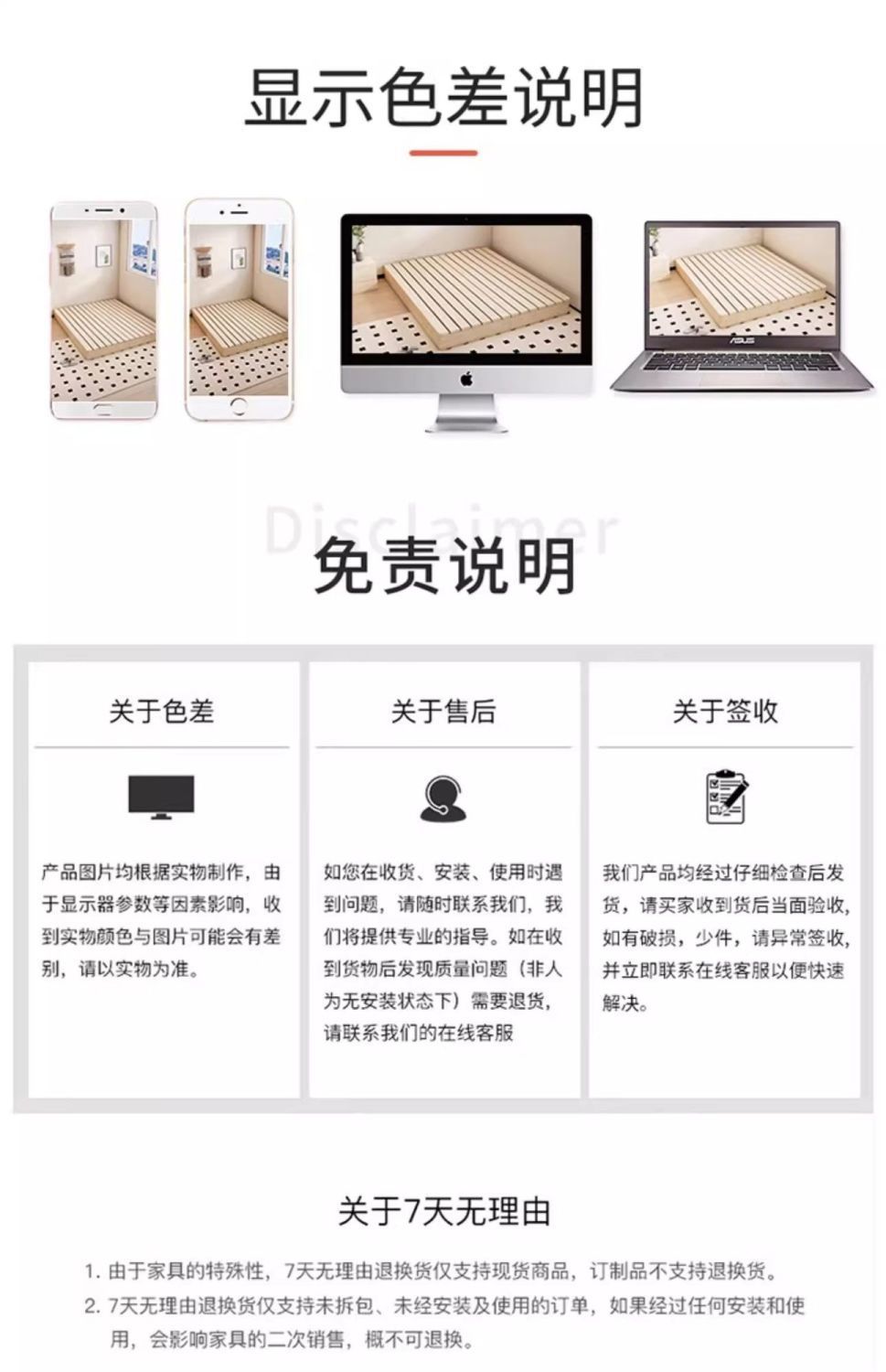 • 올 원목 침대 프레임 높이 7.5cm [가장자리 밀봉 및 사방 보강 버전]