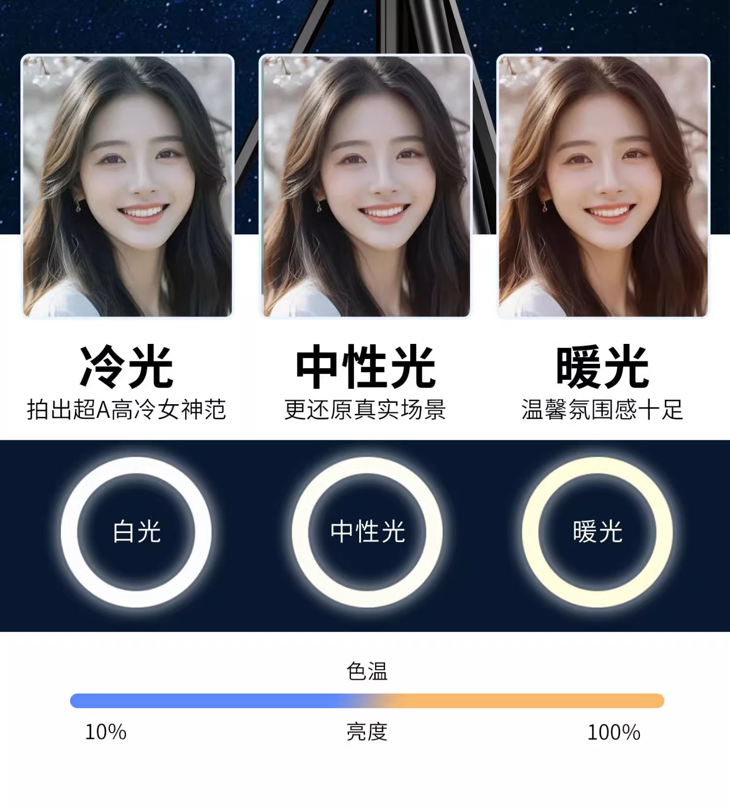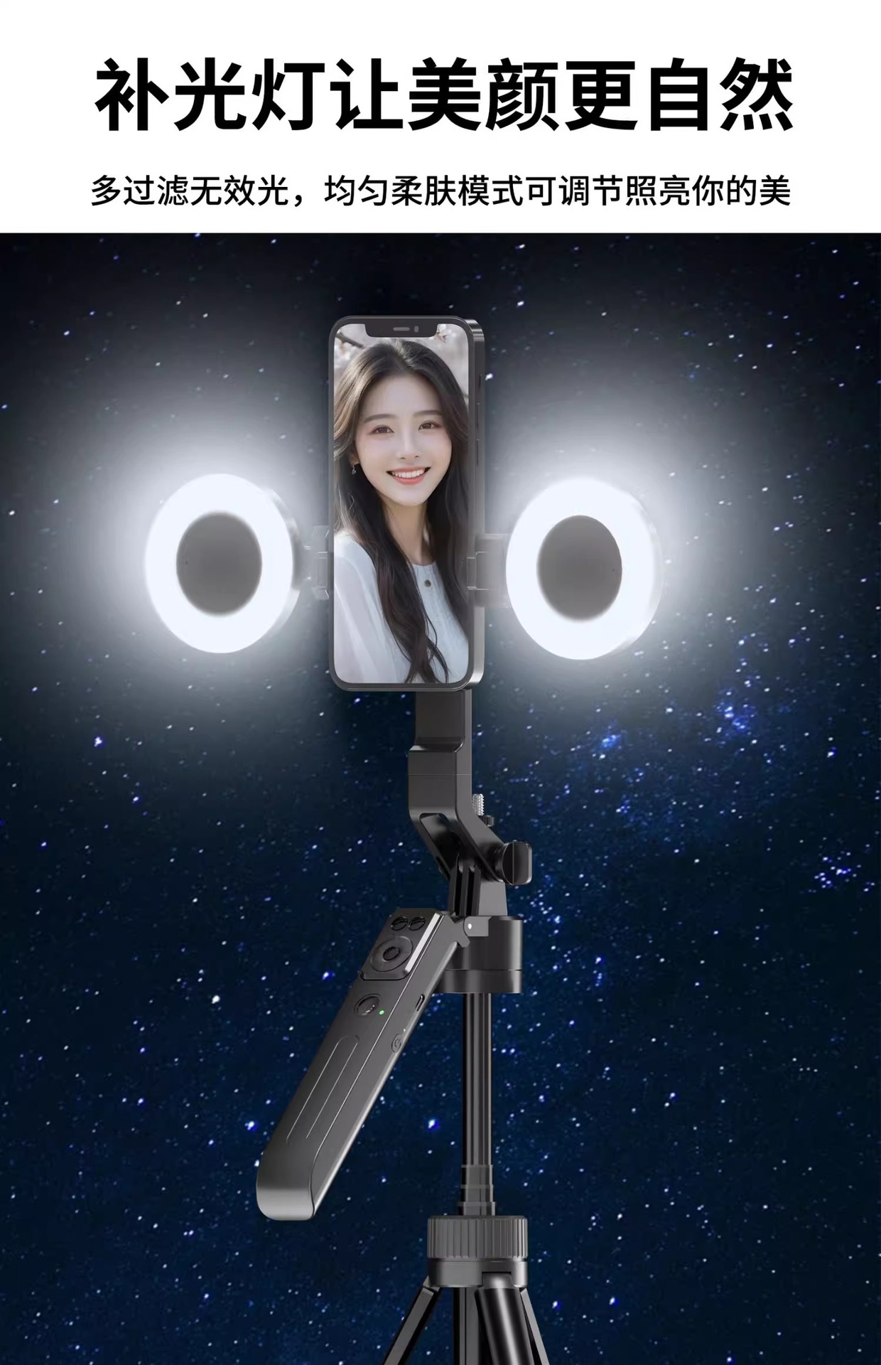 • C19 이중 조명 Douyin 원격 제어 버전 [1.9m 알루미늄 합금 극 + 지능형 추적 + Douyin 원격 제어 + 2 대형 원형 조명]