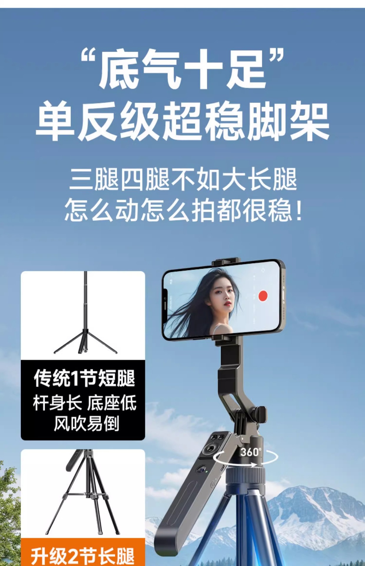 새로운 C19 알루미늄 합금 셀카봉 지능형 얼굴 추적 및 촬영 짐벌 통합 사진 삼각대 360 ° 회전