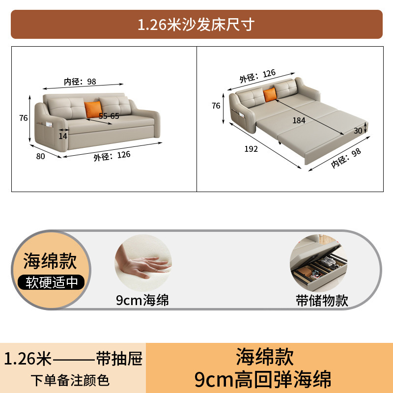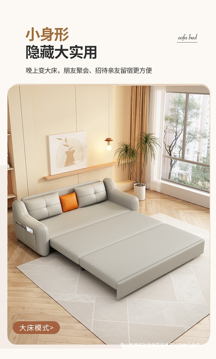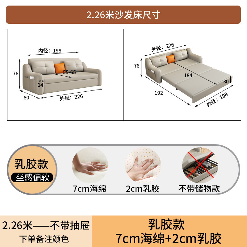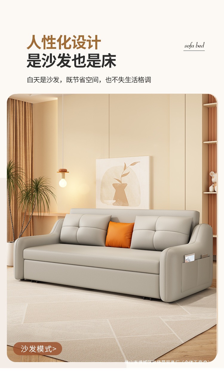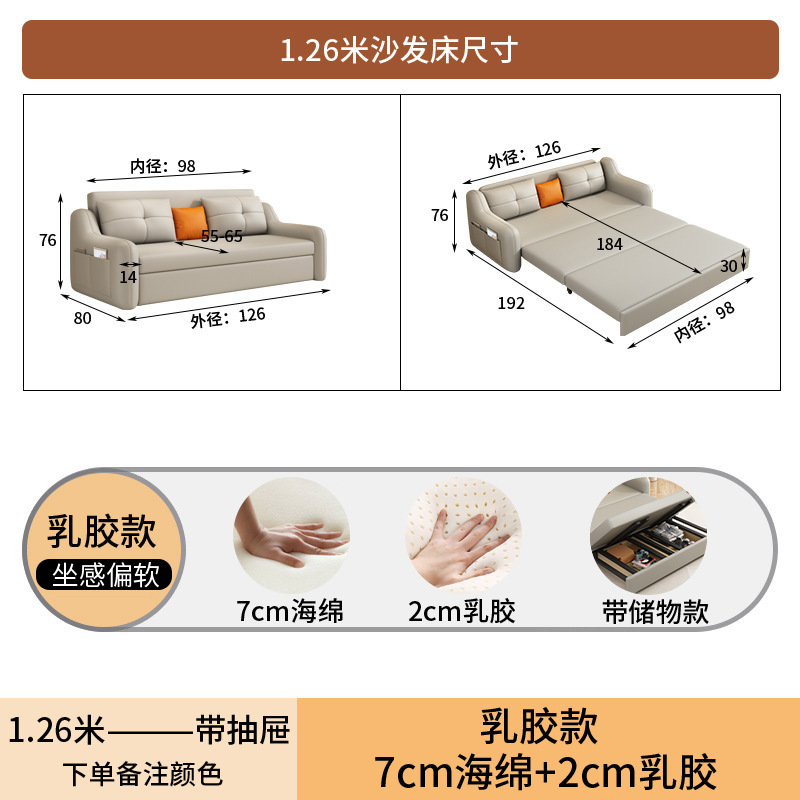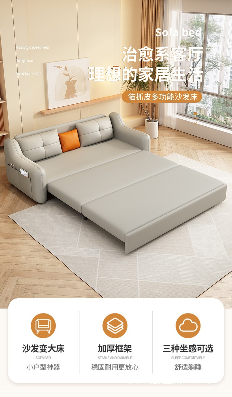 현대적인 고양이 발톱 방지 가죽 소파 베드 이중 목적 거실 크림 간단한 작은 아파트 다기능 수납 접이식 침대