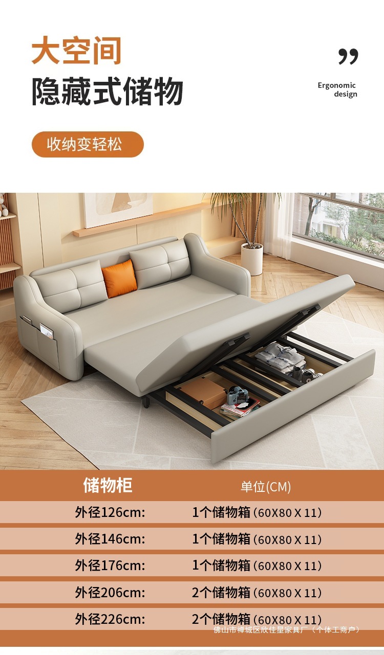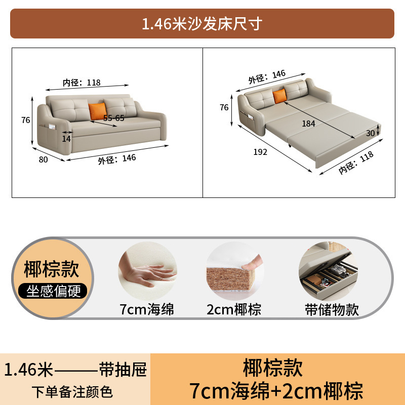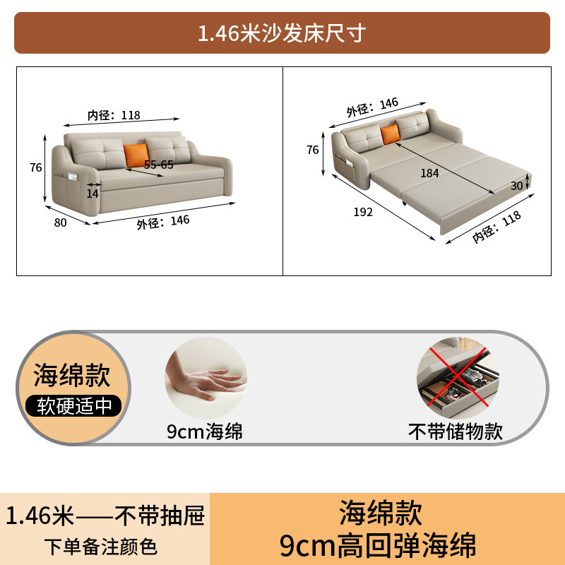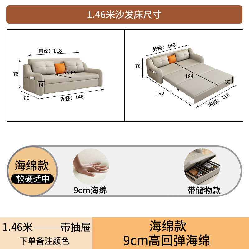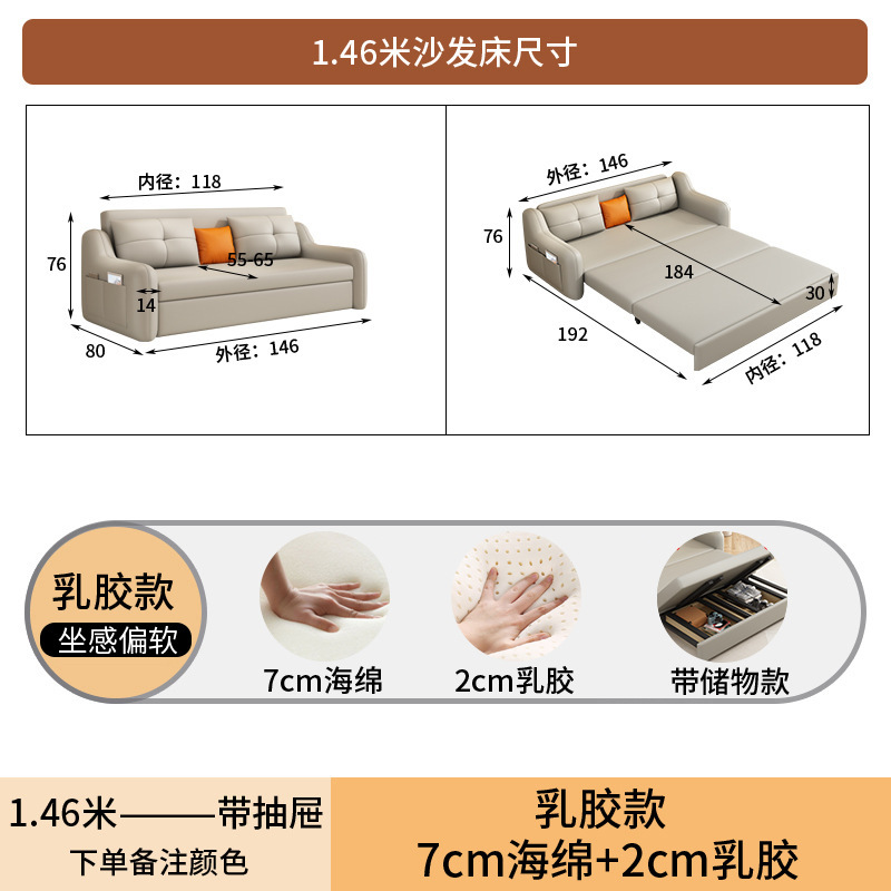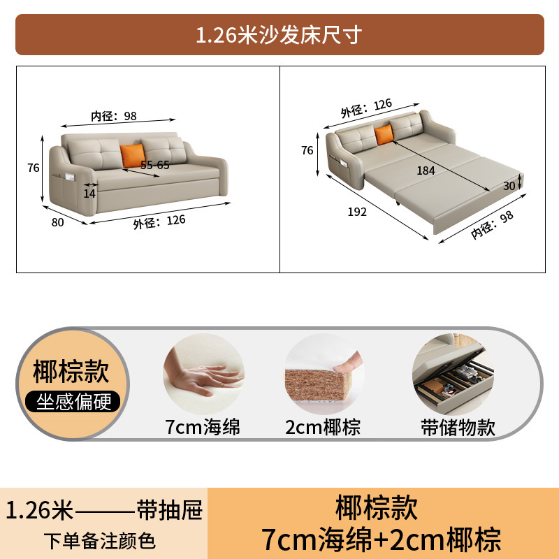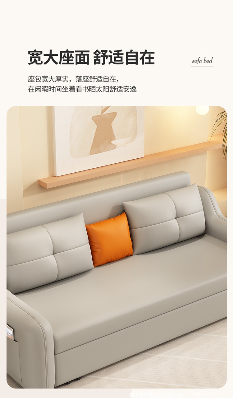 현대적인 고양이 발톱 방지 가죽 소파 베드 이중 목적 거실 크림 간단한 작은 아파트 다기능 수납 접이식 침대