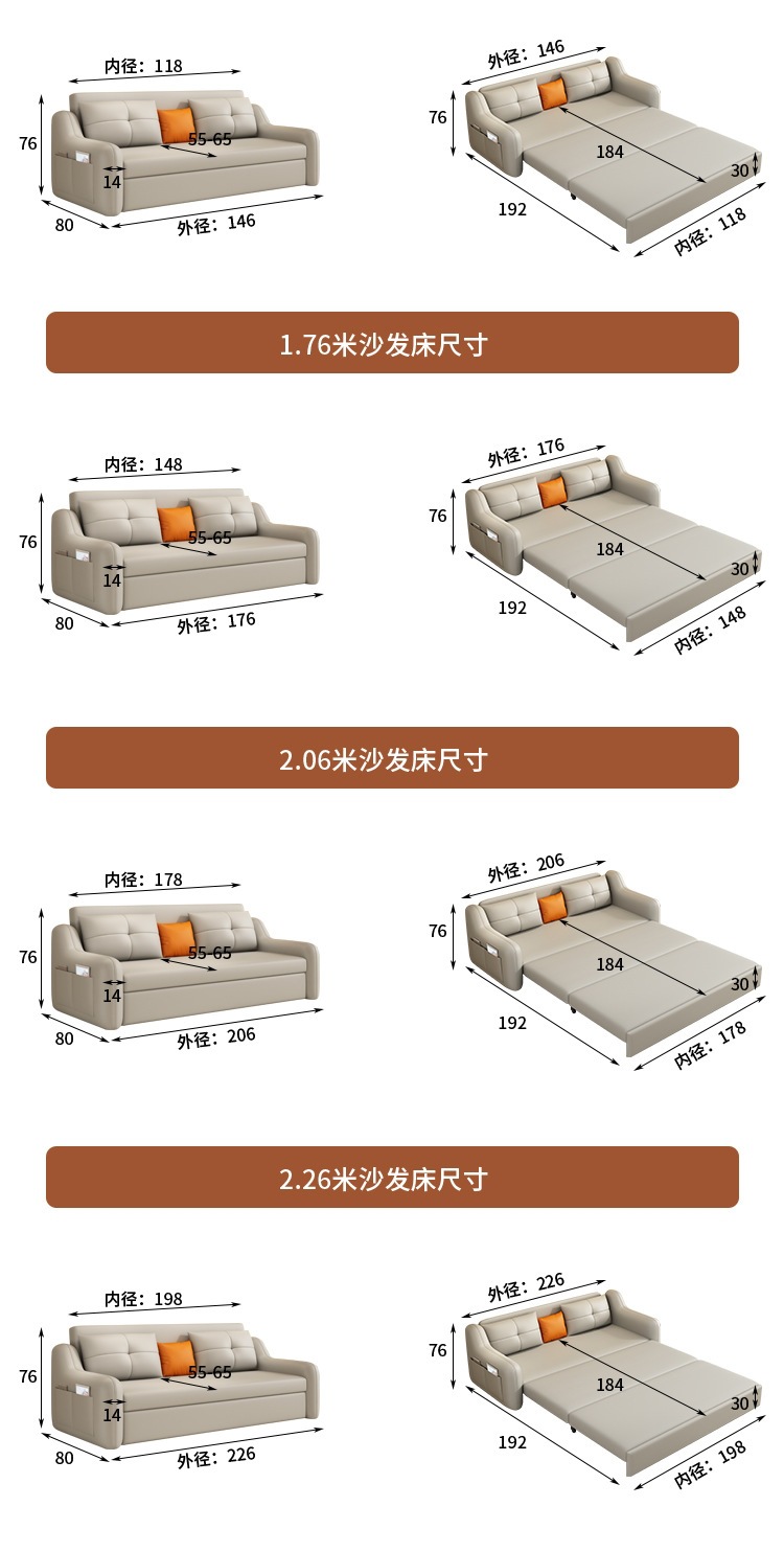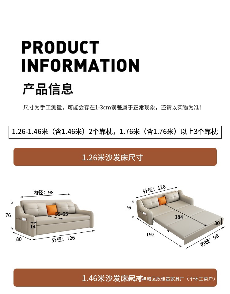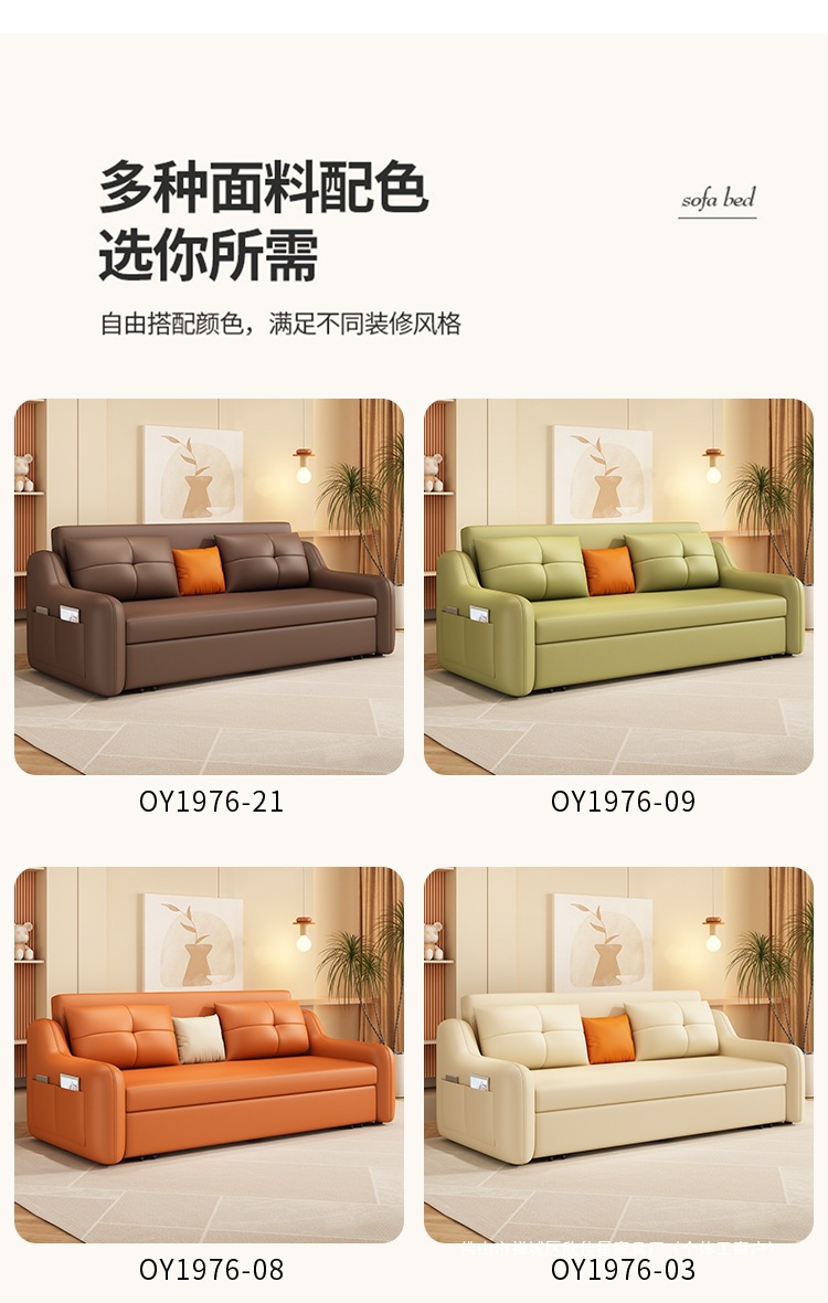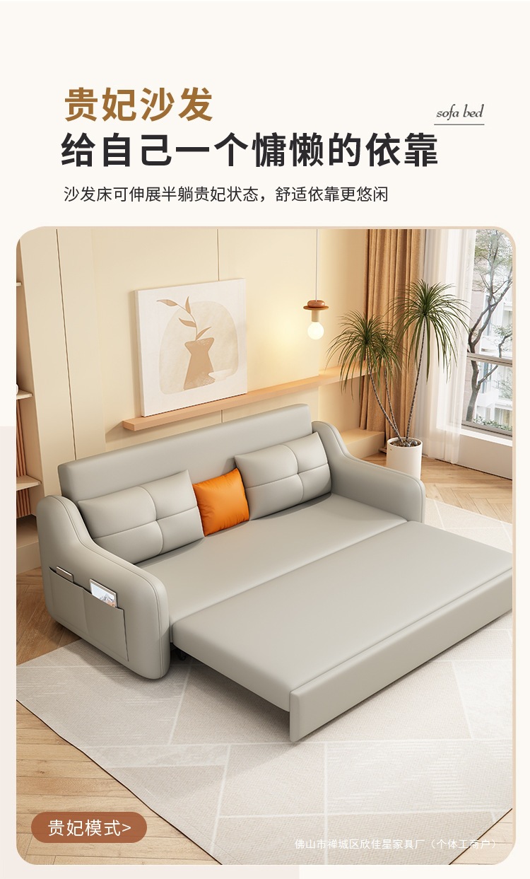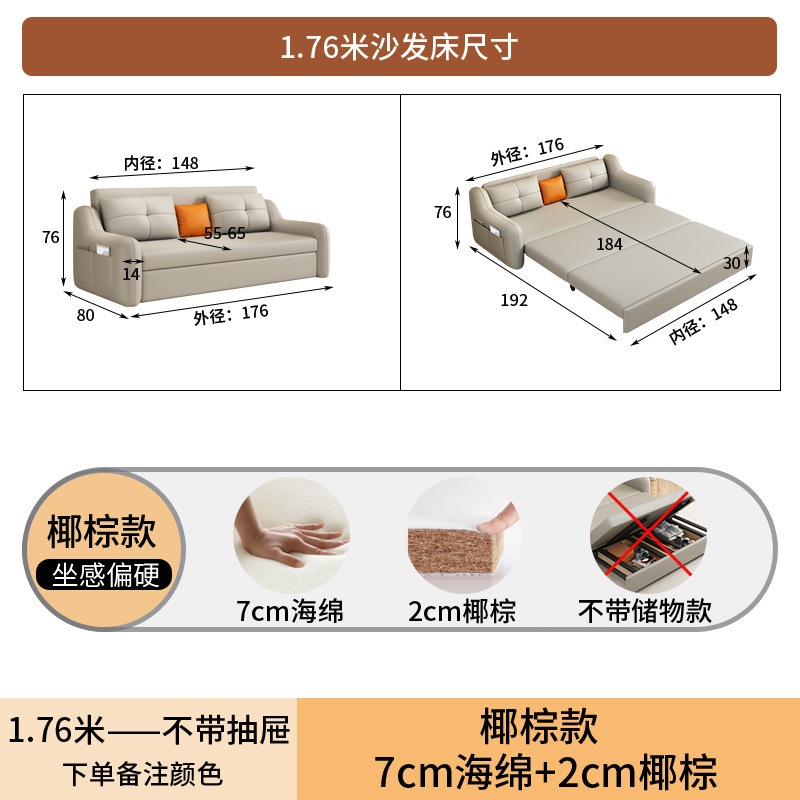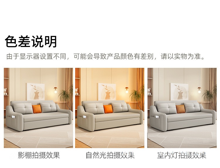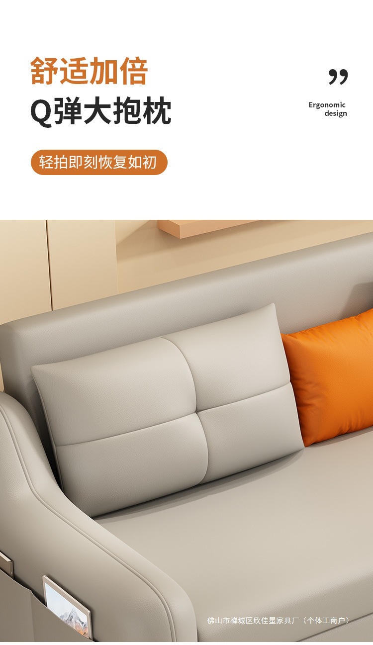 현대적인 고양이 발톱 방지 가죽 소파 베드 이중 목적 거실 크림 간단한 작은 아파트 다기능 수납 접이식 침대