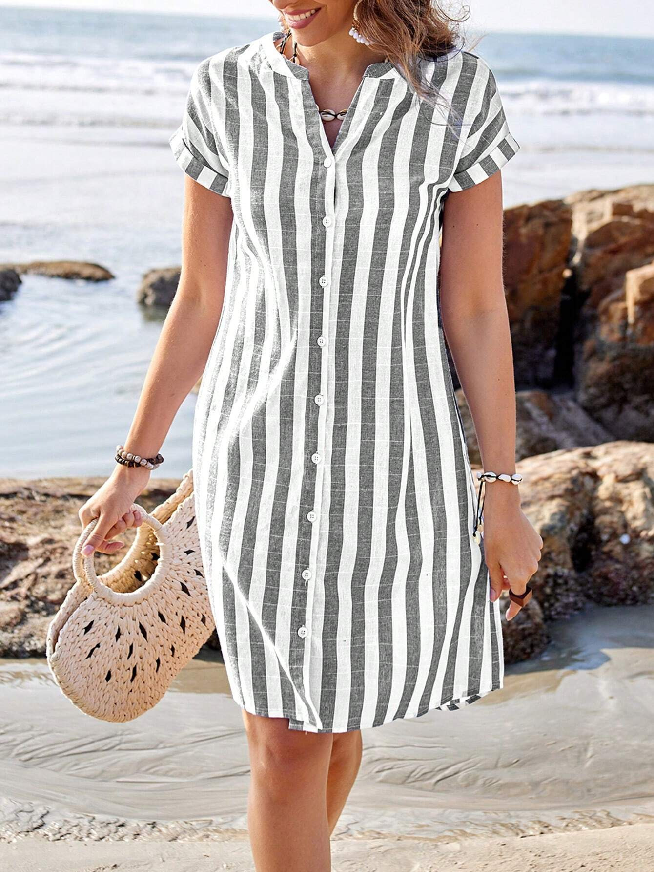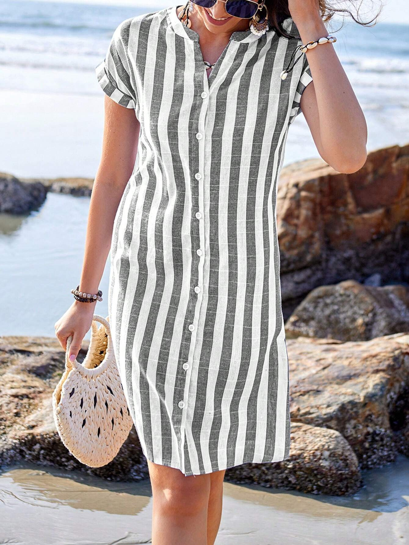 Amazon Cross-Border 2025 여름 셔츠 여성 패션 루즈 캐주얼 기질 캐주얼 스트라이프 셔츠 탑