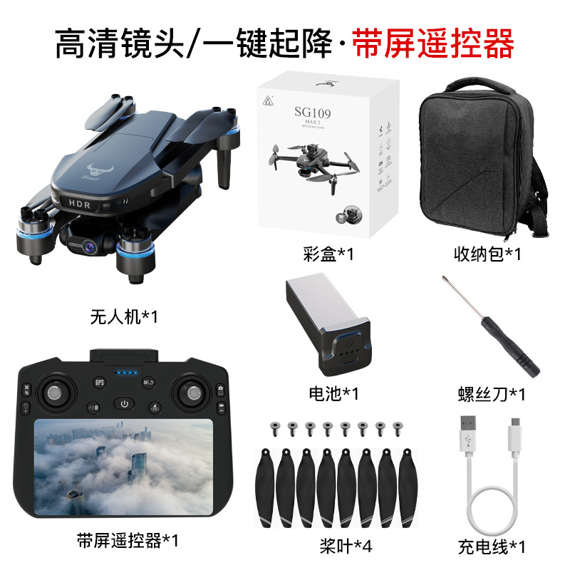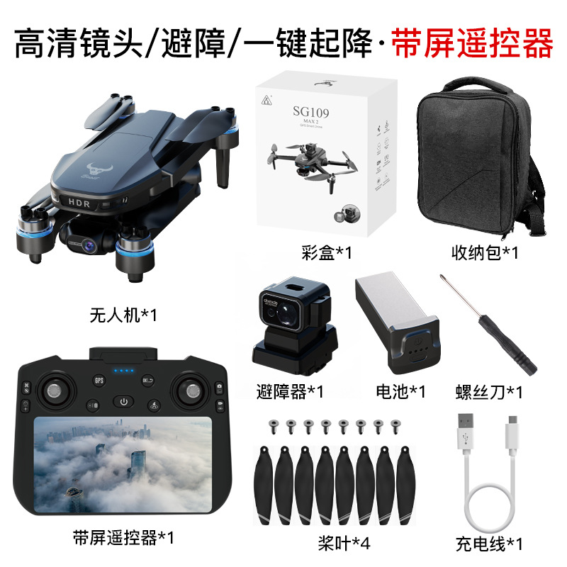 Animal SG109MAX2 HD 항공 사진 장애물 회피 드론 3축 짐벌 GPS 스크린 원격 제어 장난감 비행기