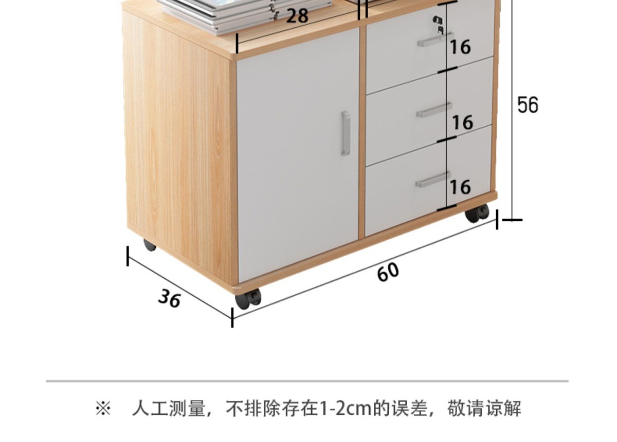 • [업그레이드 강화두꺼운판] 서랍 3개, 문 1개, 벚나무색상 60*36*56