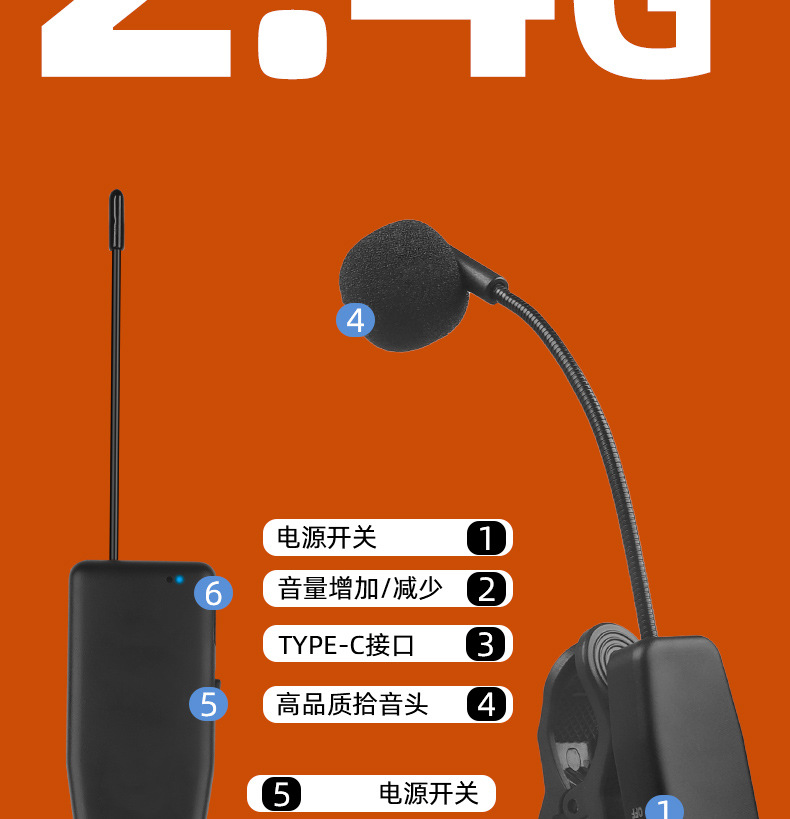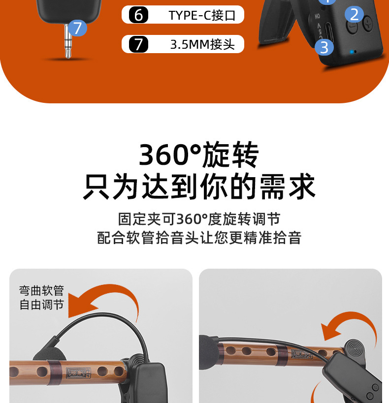 해외 음악기기 전용 무선 마이크 픽업기, 호루시, 플루트, 바오우 공연용 마이크, 무선 공연용스토어 가기