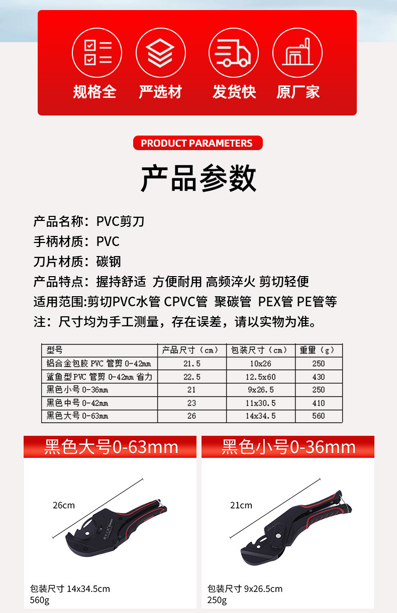 PPR 수도관 튜브 가위 커터 가위 소형 대형 32mm42mm 커터 PVC 튜브를 빠르게 절단