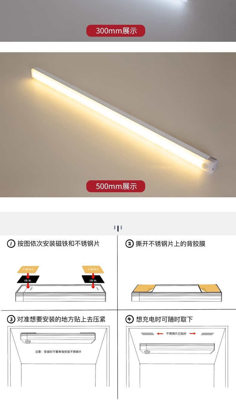 LED 인체 유도 야간 조명 지능형 자동 무선 긴 스트립 충전 자기 램프 옷장 캐비닛 복도 침실