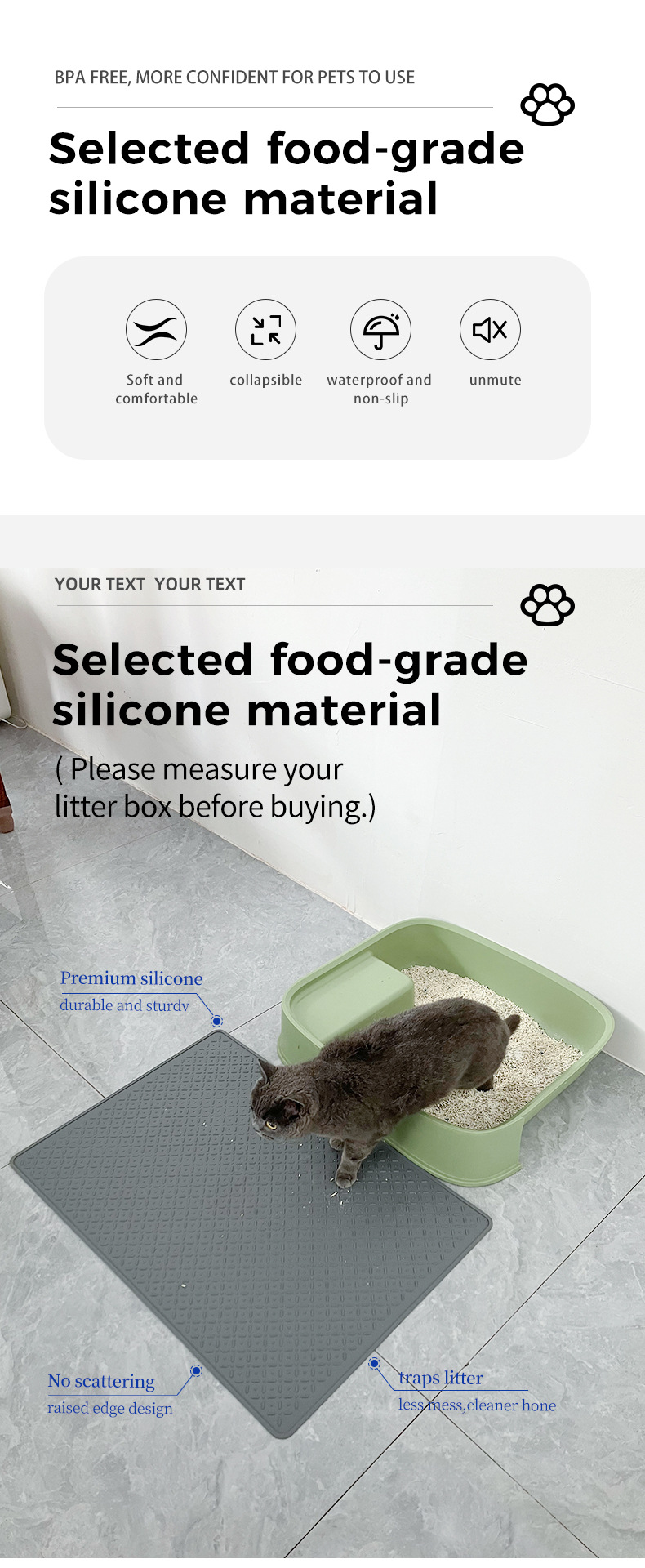 국경 간 실리콘 고양이 쓰레기 패드 대형 방지 휴대 가능 세척 가능 냄새 없음 애완 동물 용품 고양이 쓰레기 상자 안티 스플래시 패드스토어 가기