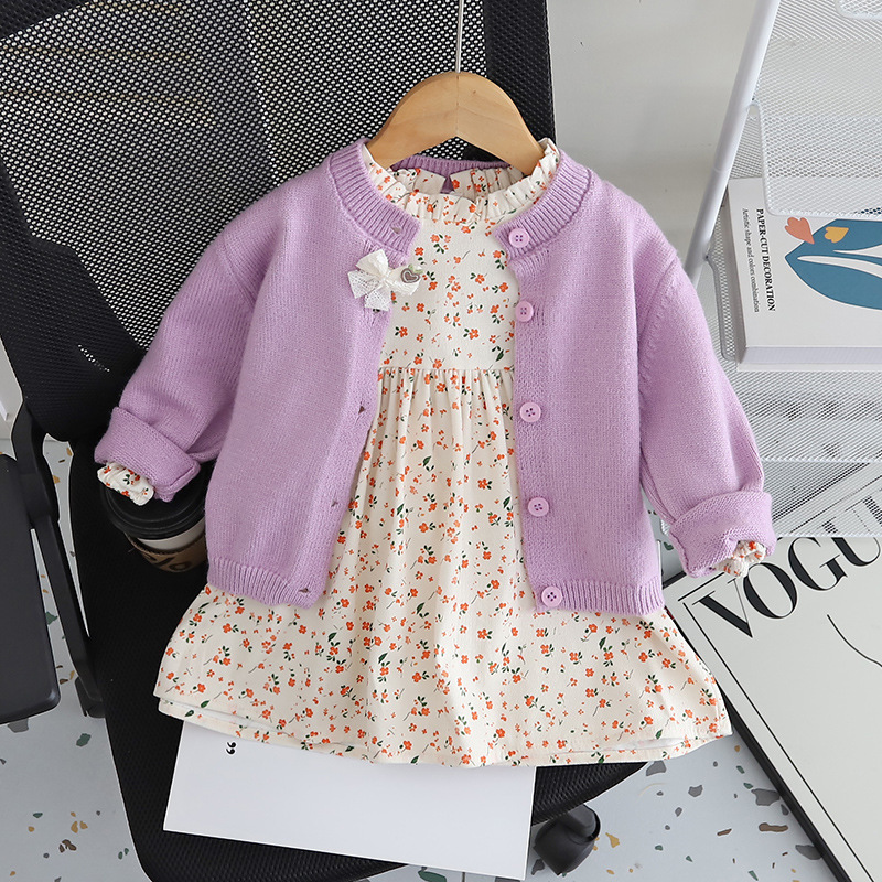 아기 소녀 2025 새로운 가을 작은 꽃 드레스 스웨터 코트 서양식 우아하고 귀여운 투피스 세트 도매