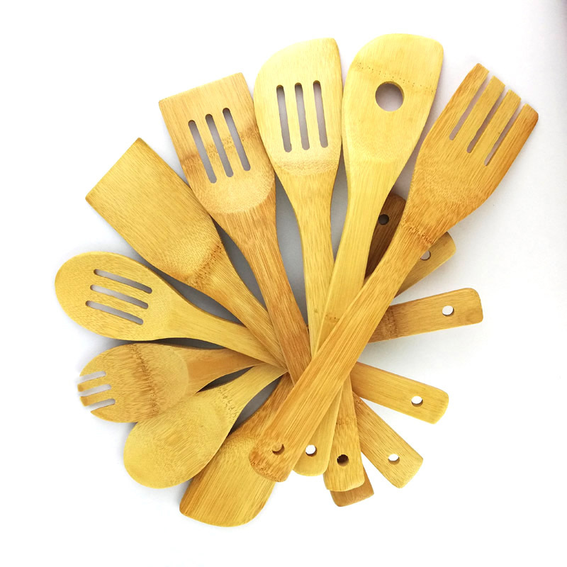 주방도구 대나무 주걱 세트 대나무 주걱 대나무 숟가락 대나무 경사 주걱 대나무 주걱 대나무 수프 포크 세트 대나무 나무 숟가락 주걱 세트