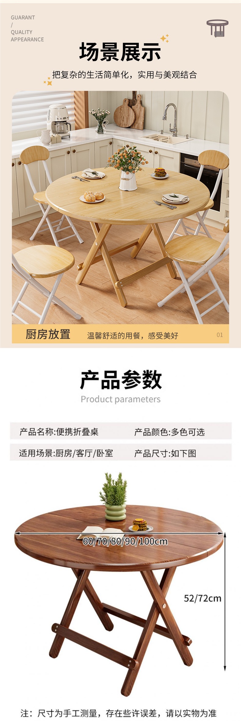 • 원래 색상 두꺼워진 80cm 원형 표면 [설치가 필요 없고 보관이 용이함] 테이블 높이 72CM