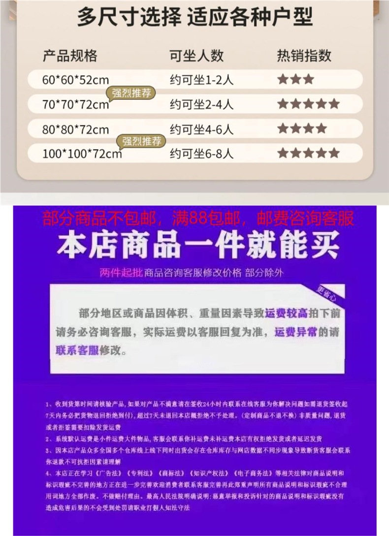 • 원래 색상 두꺼워진 80X80 측면 [설치가 필요 없고 보관이 용이함] 테이블 높이 72CM