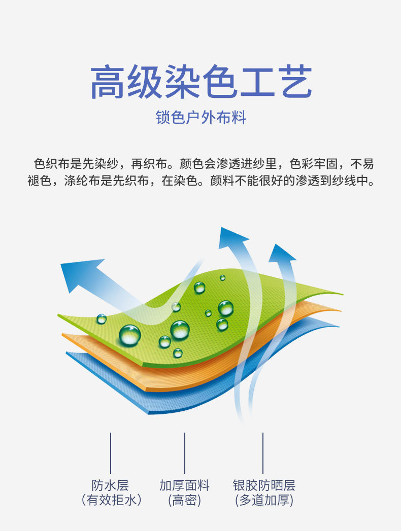 • 3.0m 업그레이드된 블루 + 더블 레이어 실버 젤 자외선 차단제