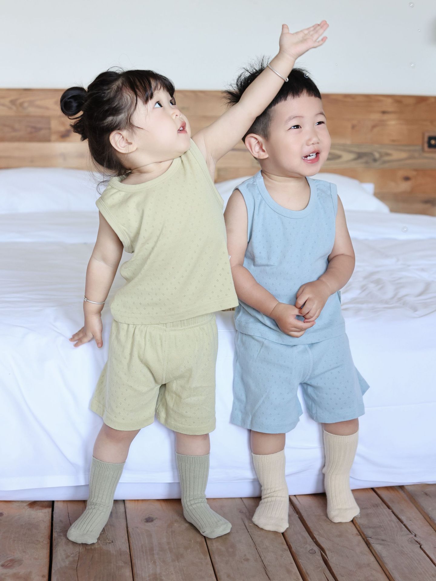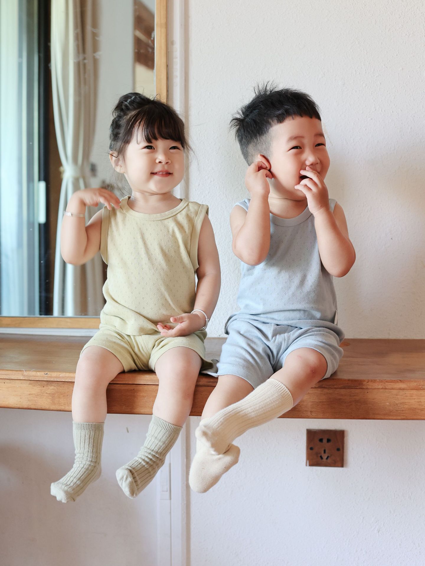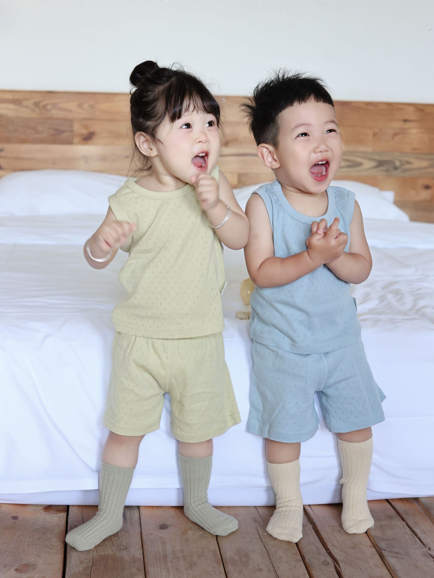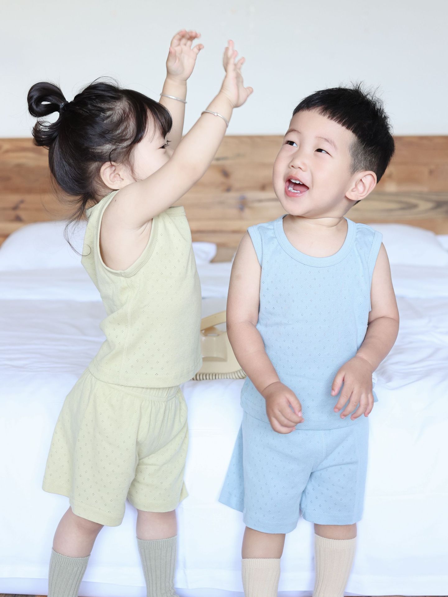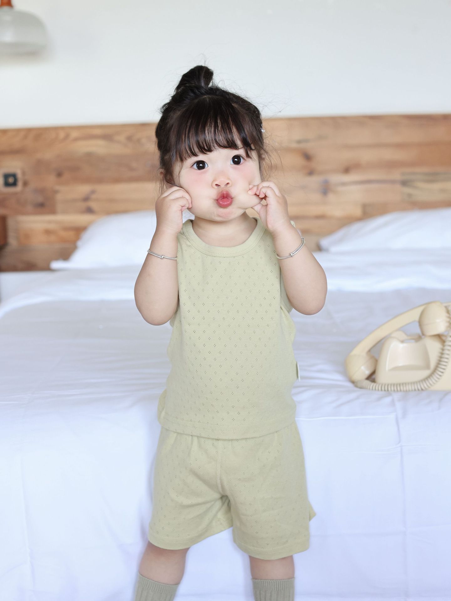 아동용 잠옷, 여름용 얇은, 중소형, 남녀 아기 조끼, 반바지, 자매복, 가정복 세트, A급 면스토어 가기