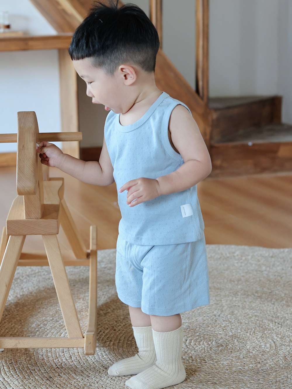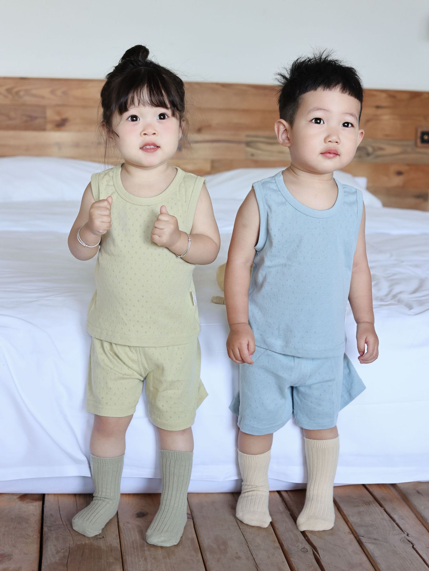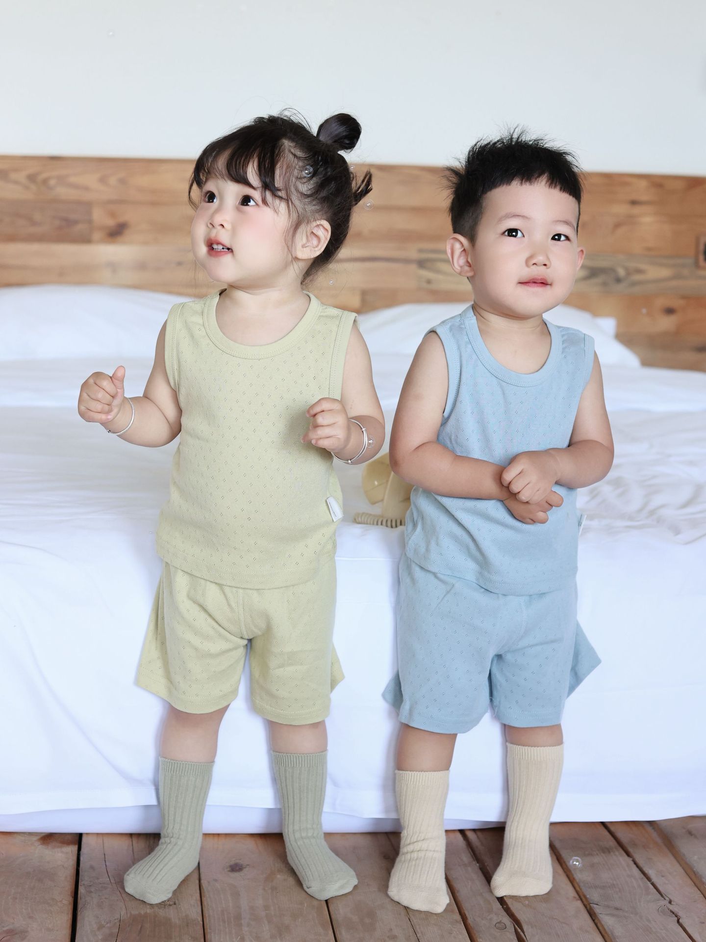 아동용 잠옷, 여름용 얇은, 중소형, 남녀 아기 조끼, 반바지, 자매복, 가정복 세트, A급 면