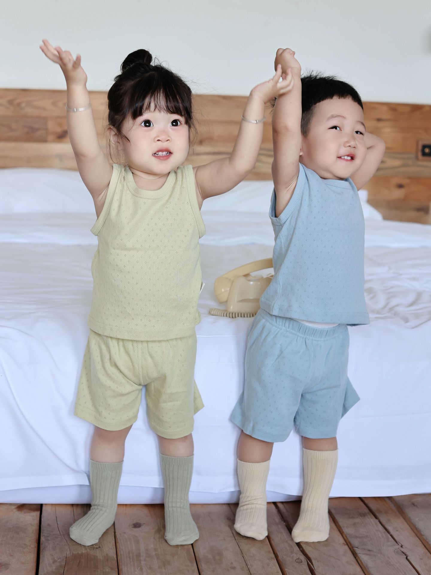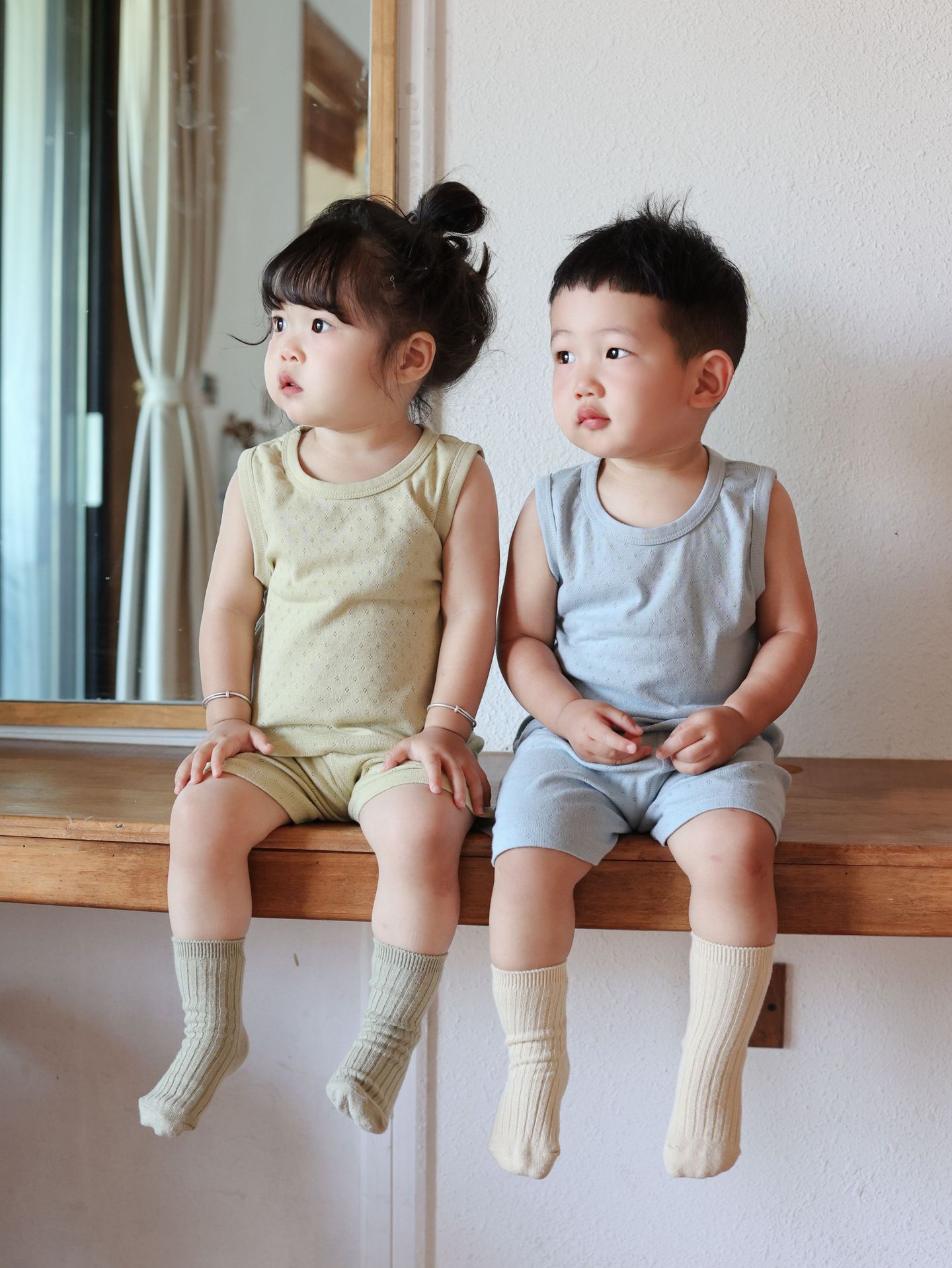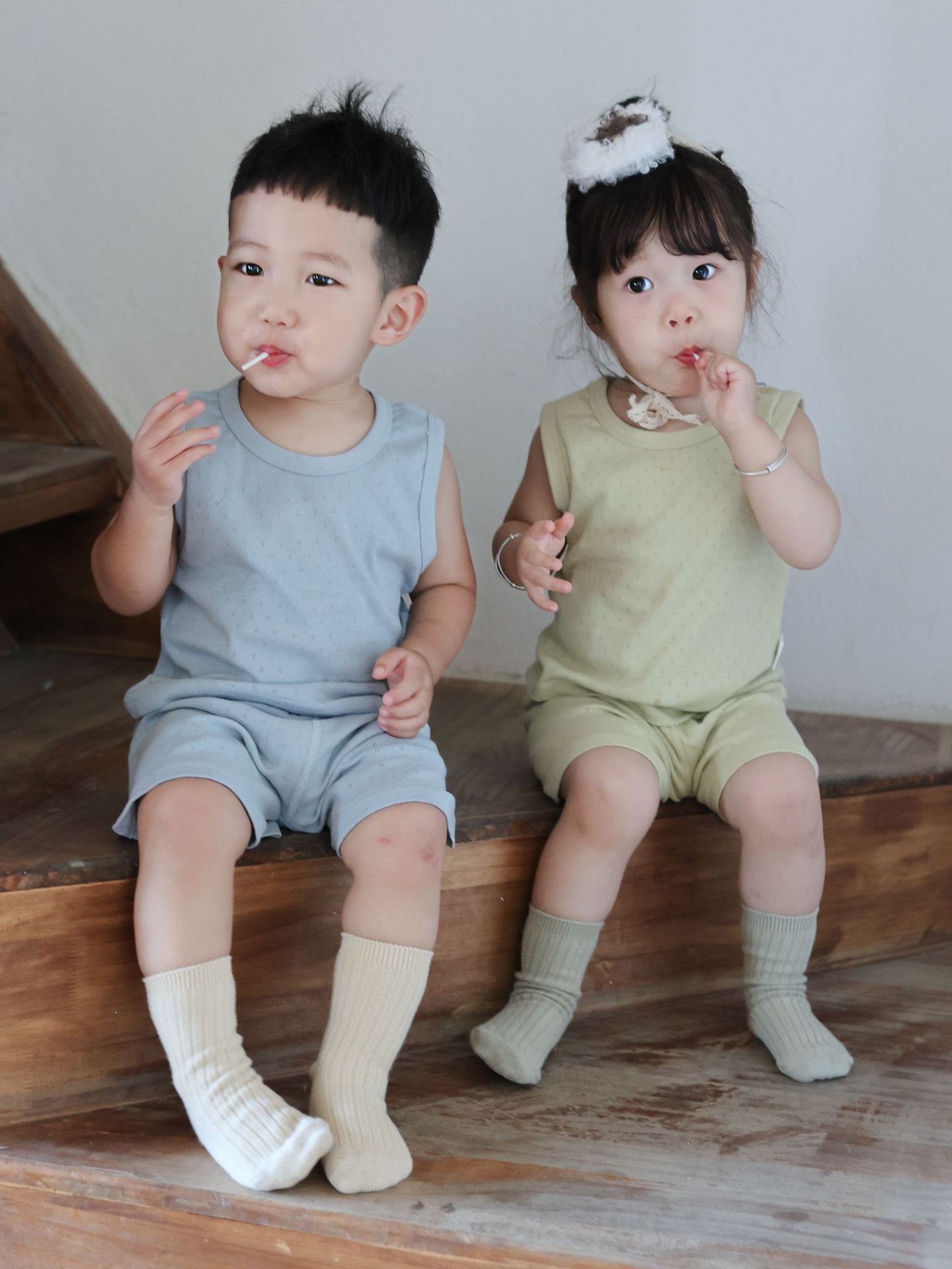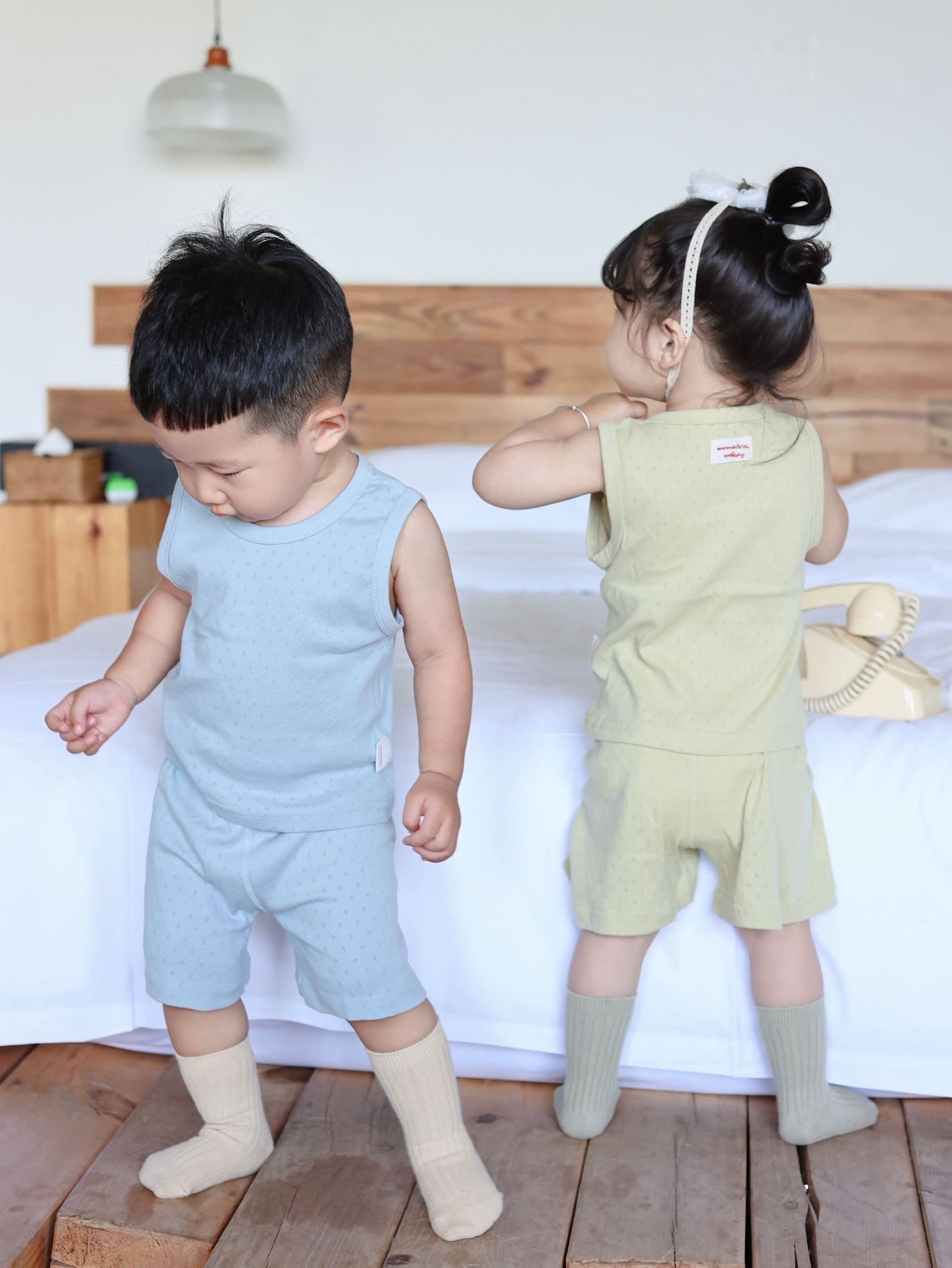 아동용 잠옷, 여름용 얇은, 중소형, 남녀 아기 조끼, 반바지, 자매복, 가정복 세트, A급 면