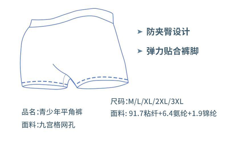 청소년 속옷 모달 10A 등급 항균 사각형 고탄성 메쉬 통기성 초박형 얼음 실크 남성용 사각 팬티스토어 가기