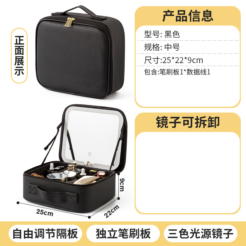 국경을 넘는 인기 거울 화장품 가방 LED 조명 거울 내장 대용량 휴대용 외출용 메이크업 가방 메이크업 아티스트 메이크업 박스스토어 가기
