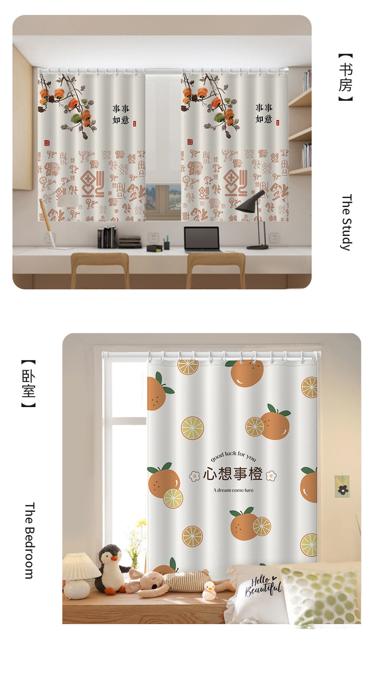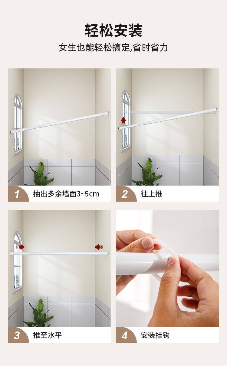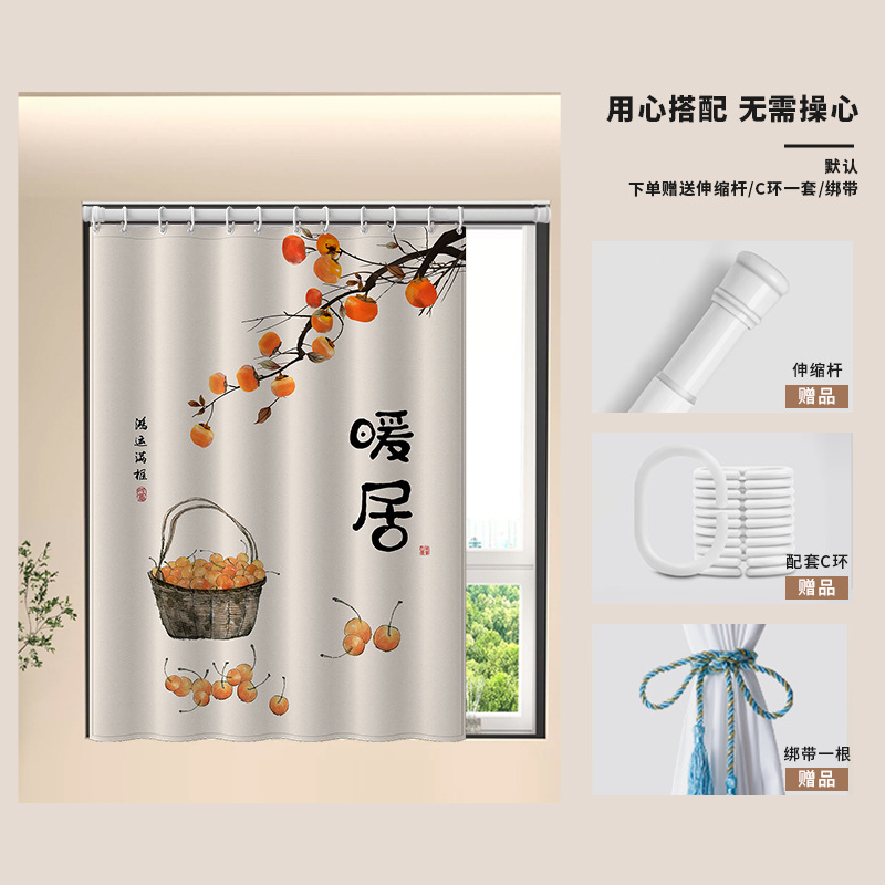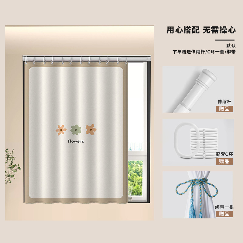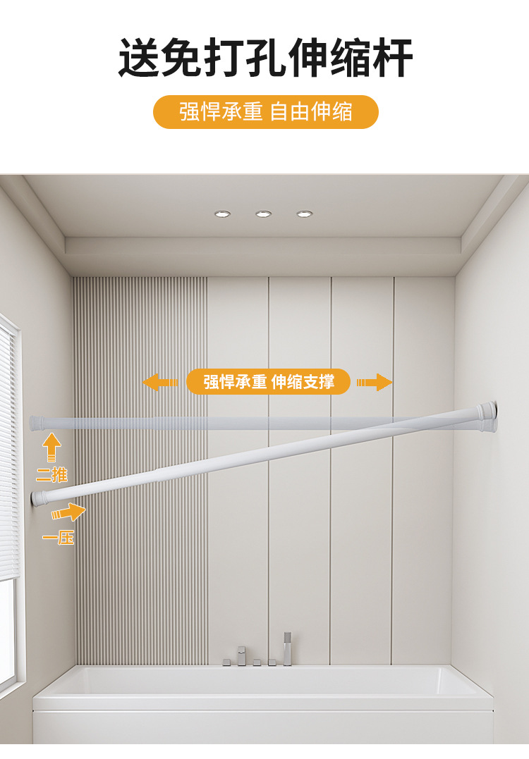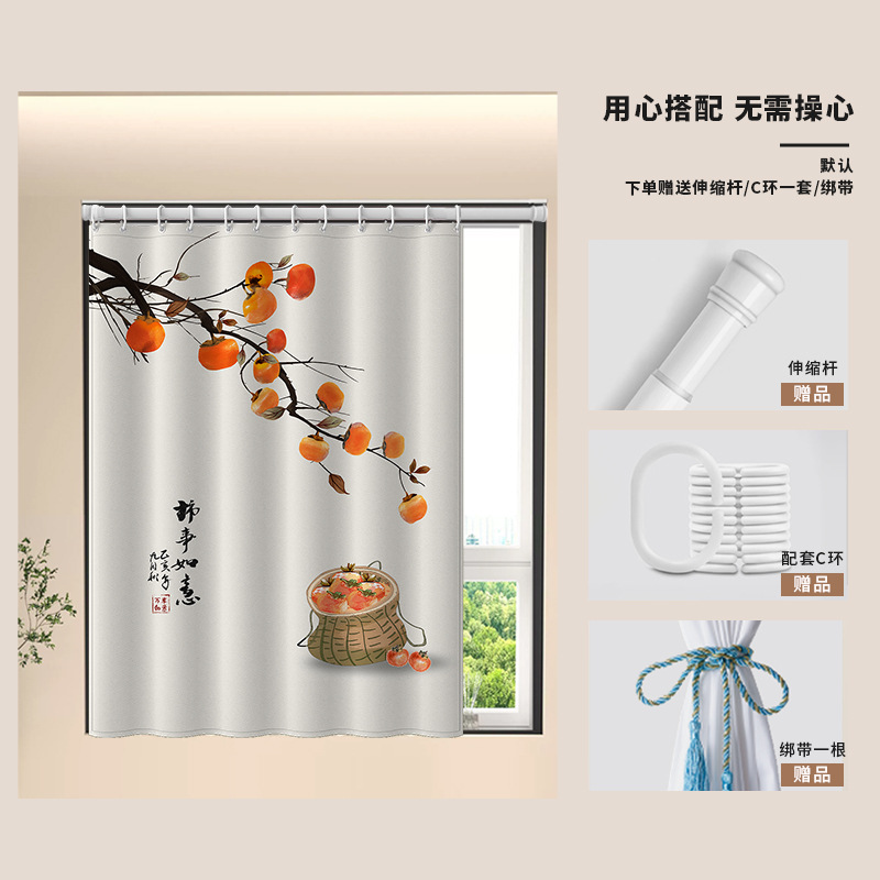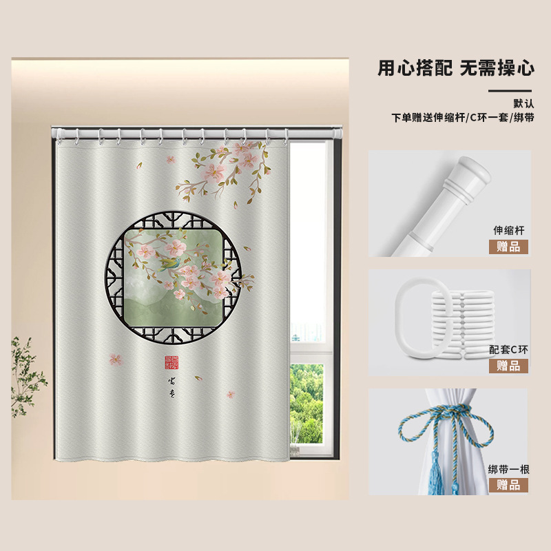 중국식 욕실 커튼, 펀치 없는 텔레스코픽 막대, 욕실 창 커튼, 방수 및 노출 방지 주방 차양