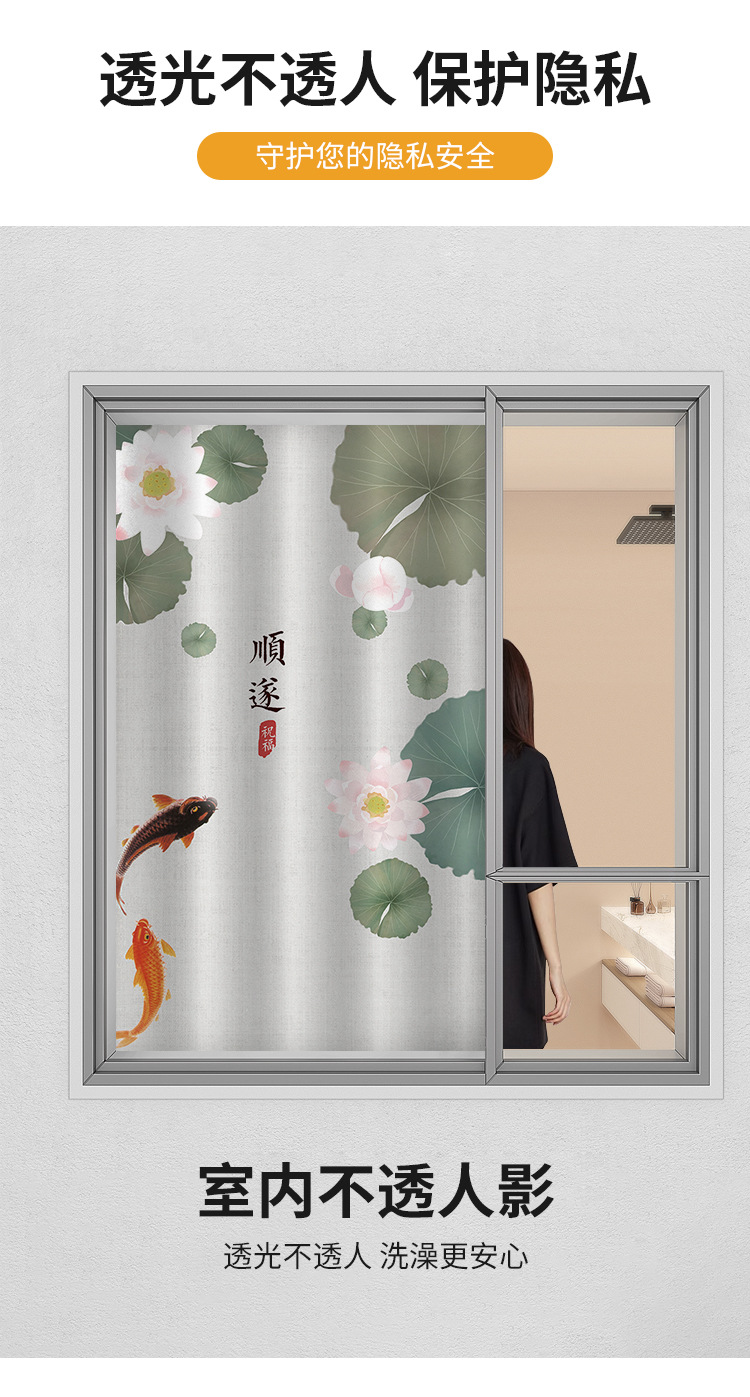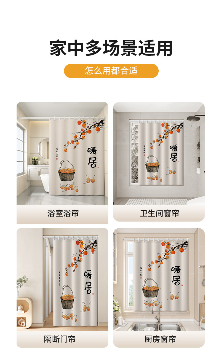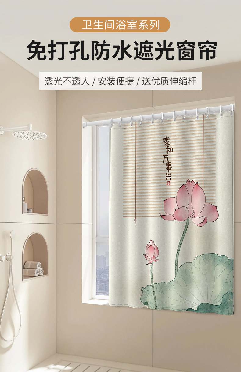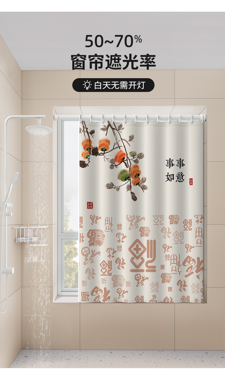 중국식 욕실 커튼, 펀치 없는 텔레스코픽 막대, 욕실 창 커튼, 방수 및 노출 방지 주방 차양스토어 가기