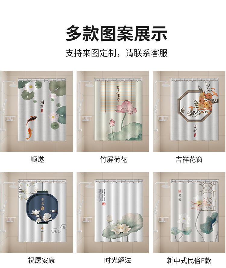 • 신중국 민속풍 F형 [C링 작은 구멍 샤워커튼] - 프리로드