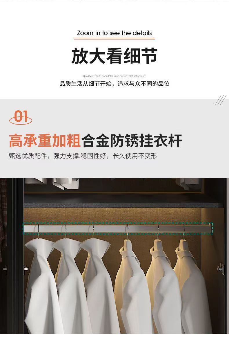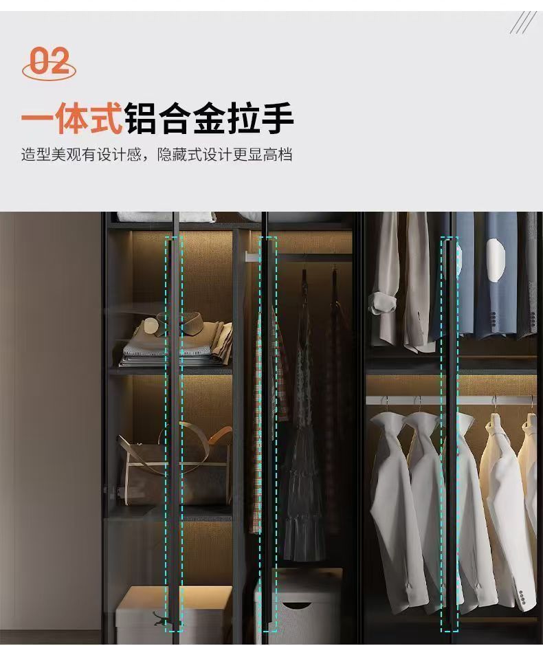 가정용 침실용 원목 옷장, 소형 아파트용, 모던하고 심플한 고급 수납장, 2도어 유리장
