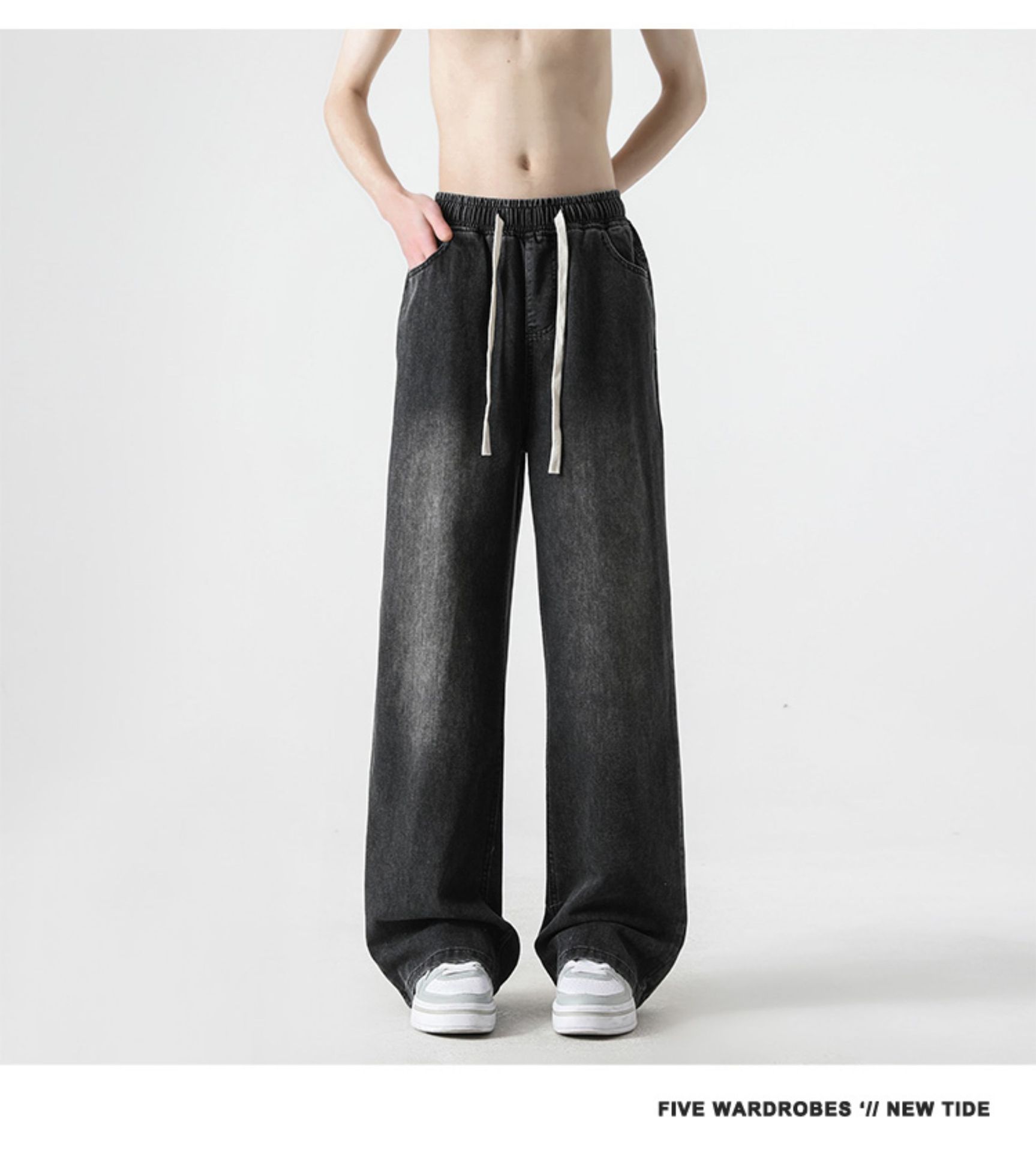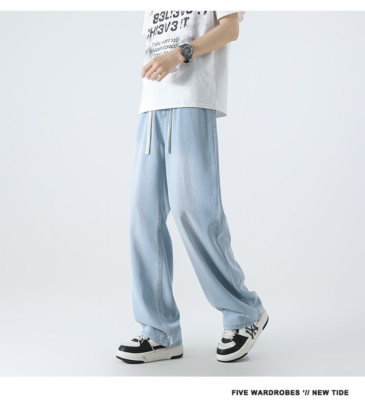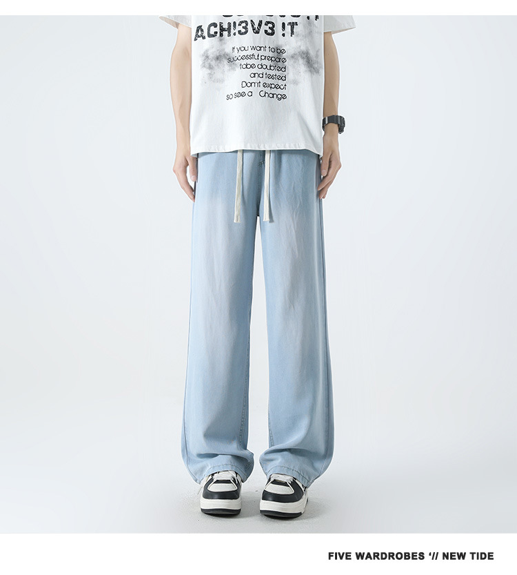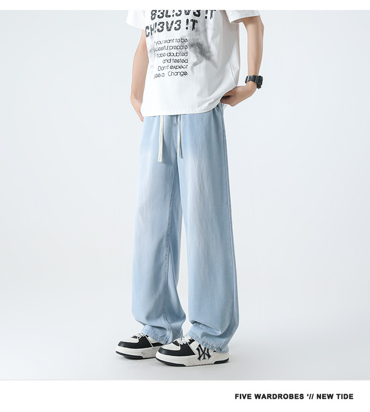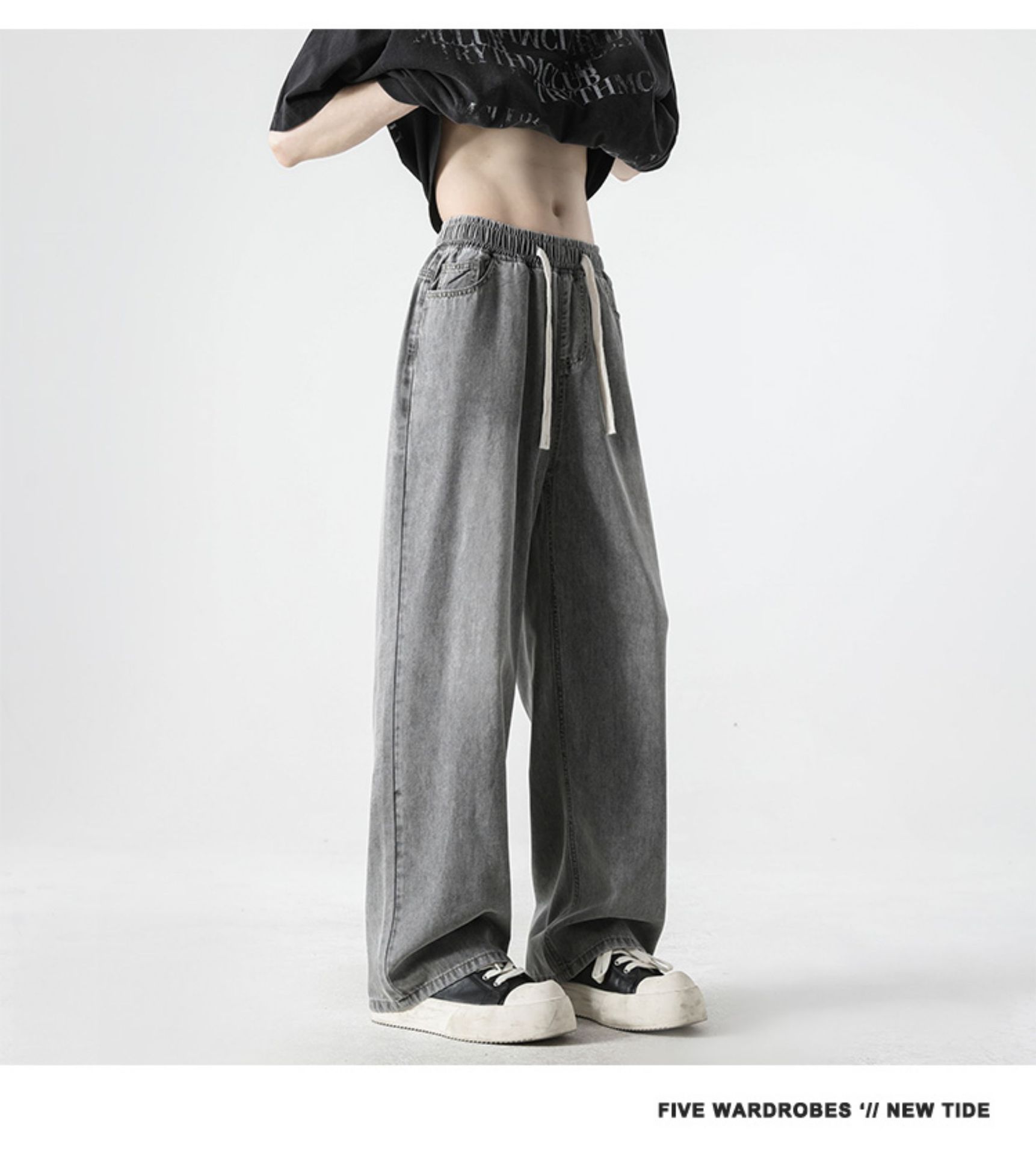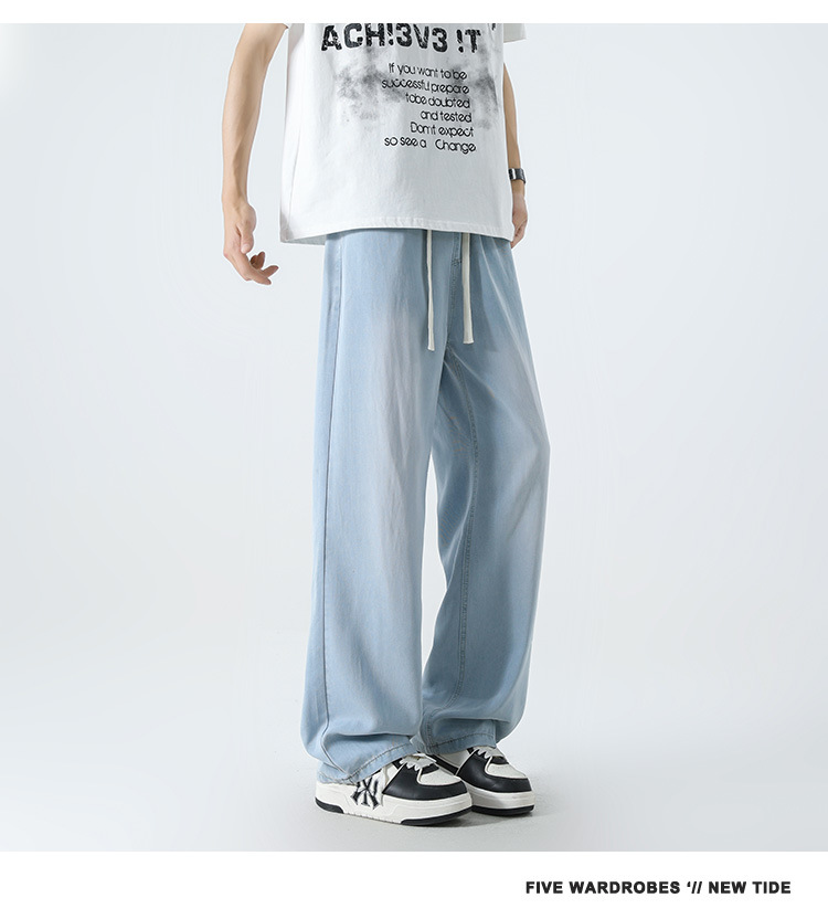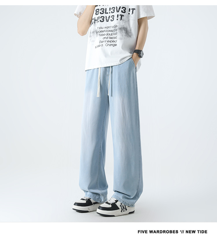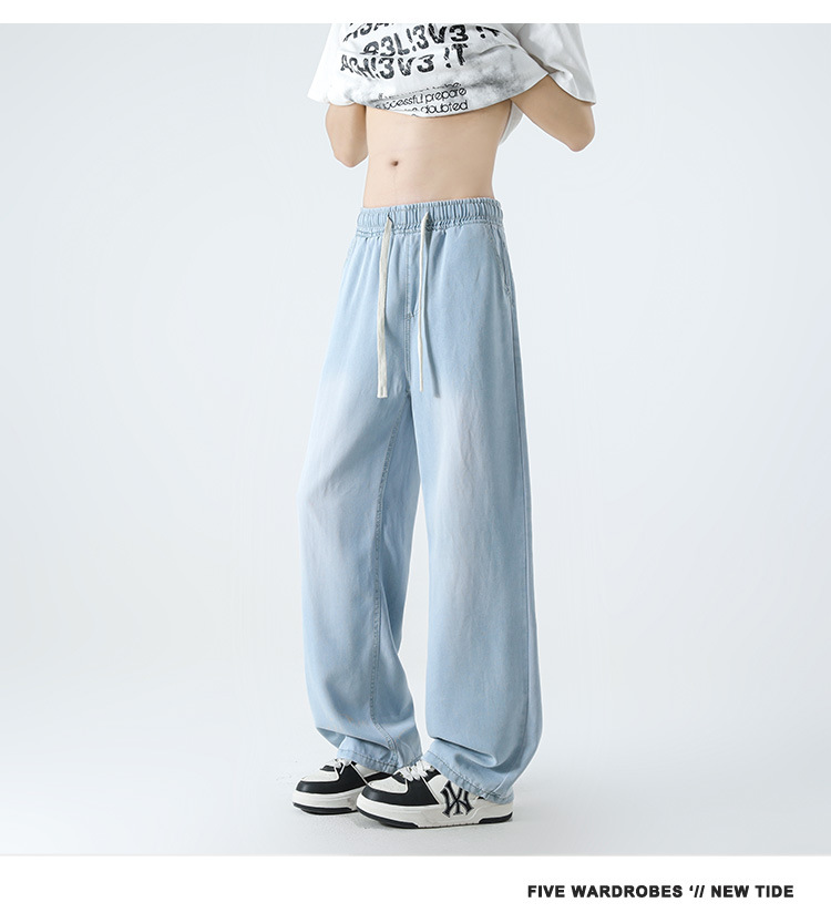 아이스 실크 청바지 남성 여름 얇은 2025 새로운 루즈 스트레이트 팬츠 리오셀 텐셀 드레이프 와이드 레그 팬츠스토어 가기