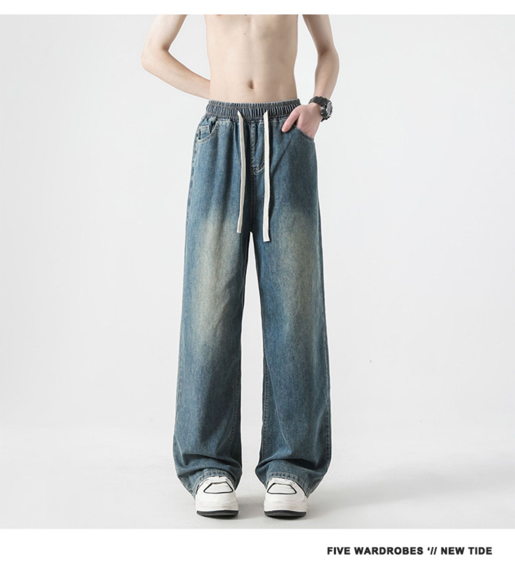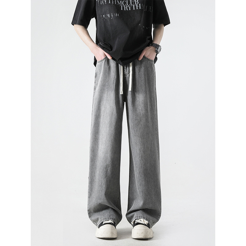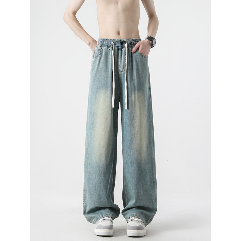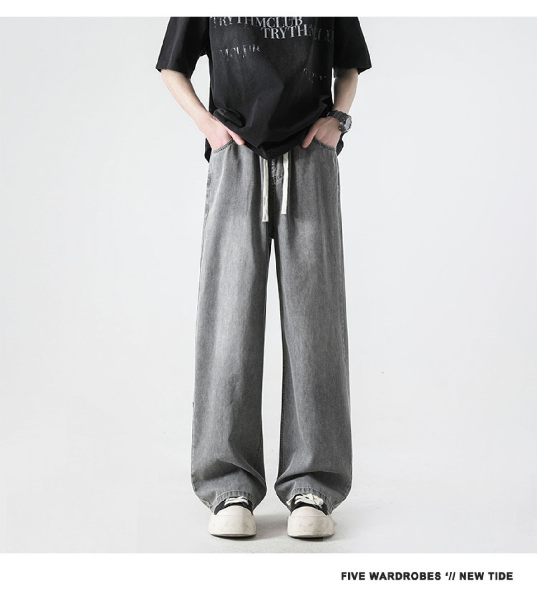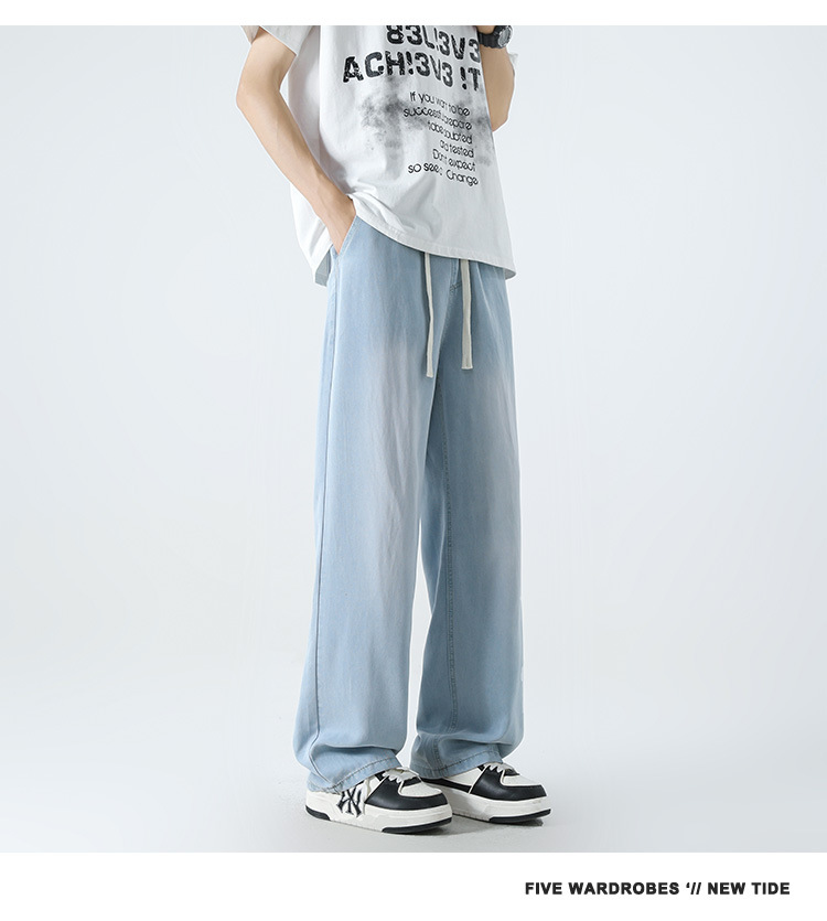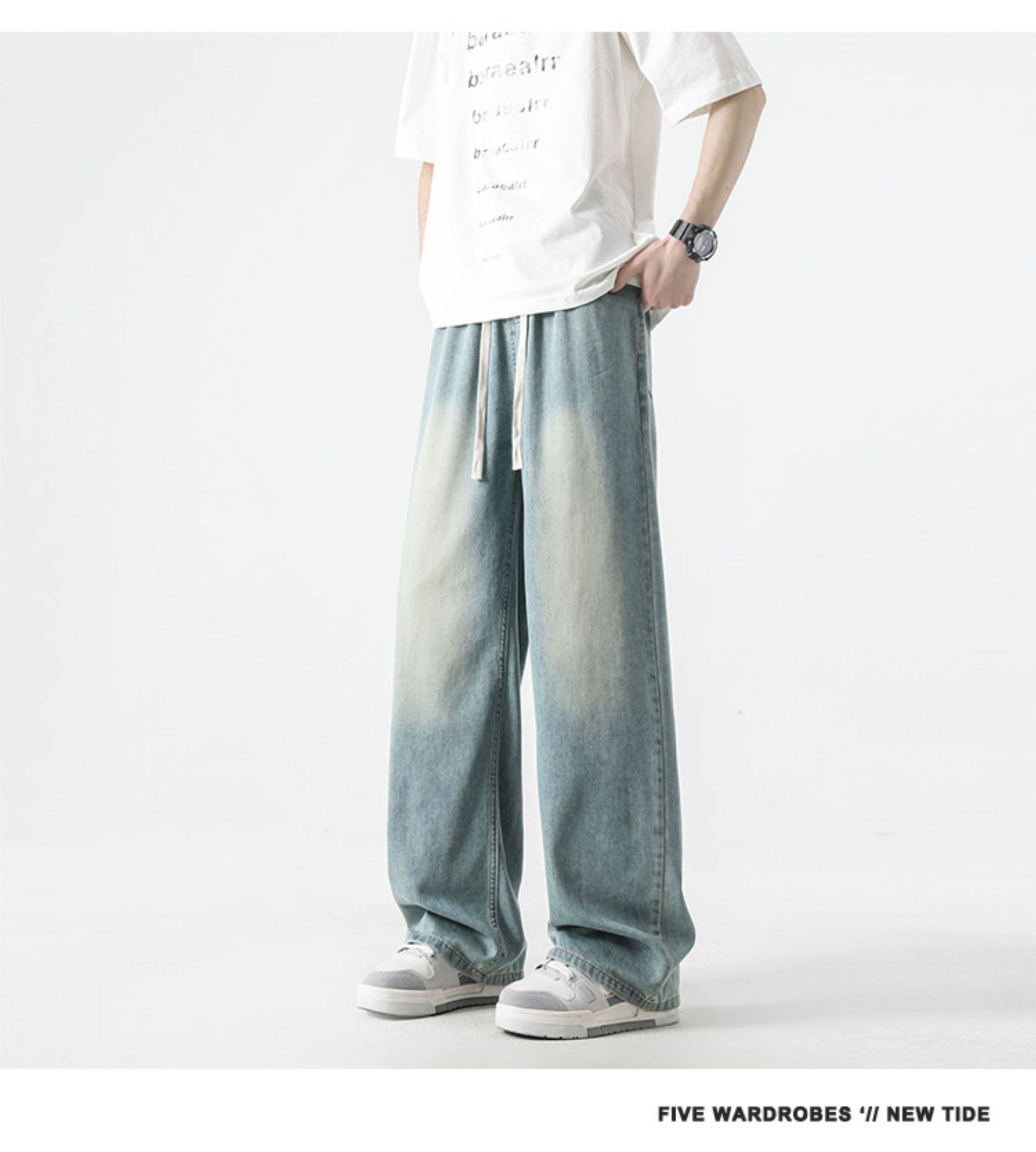 아이스 실크 청바지 남성 여름 얇은 2025 새로운 루즈 스트레이트 팬츠 리오셀 텐셀 드레이프 와이드 레그 팬츠스토어 가기