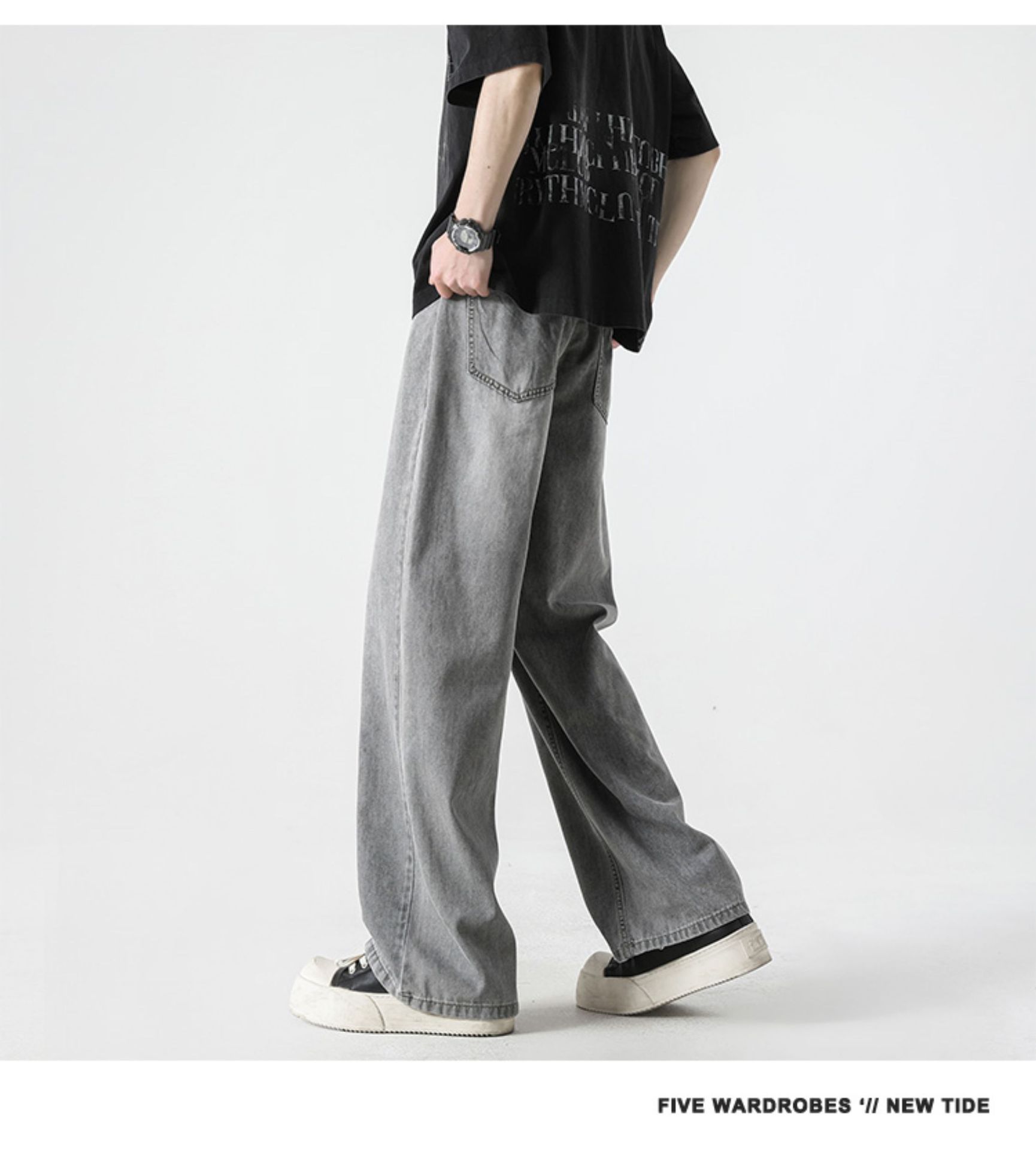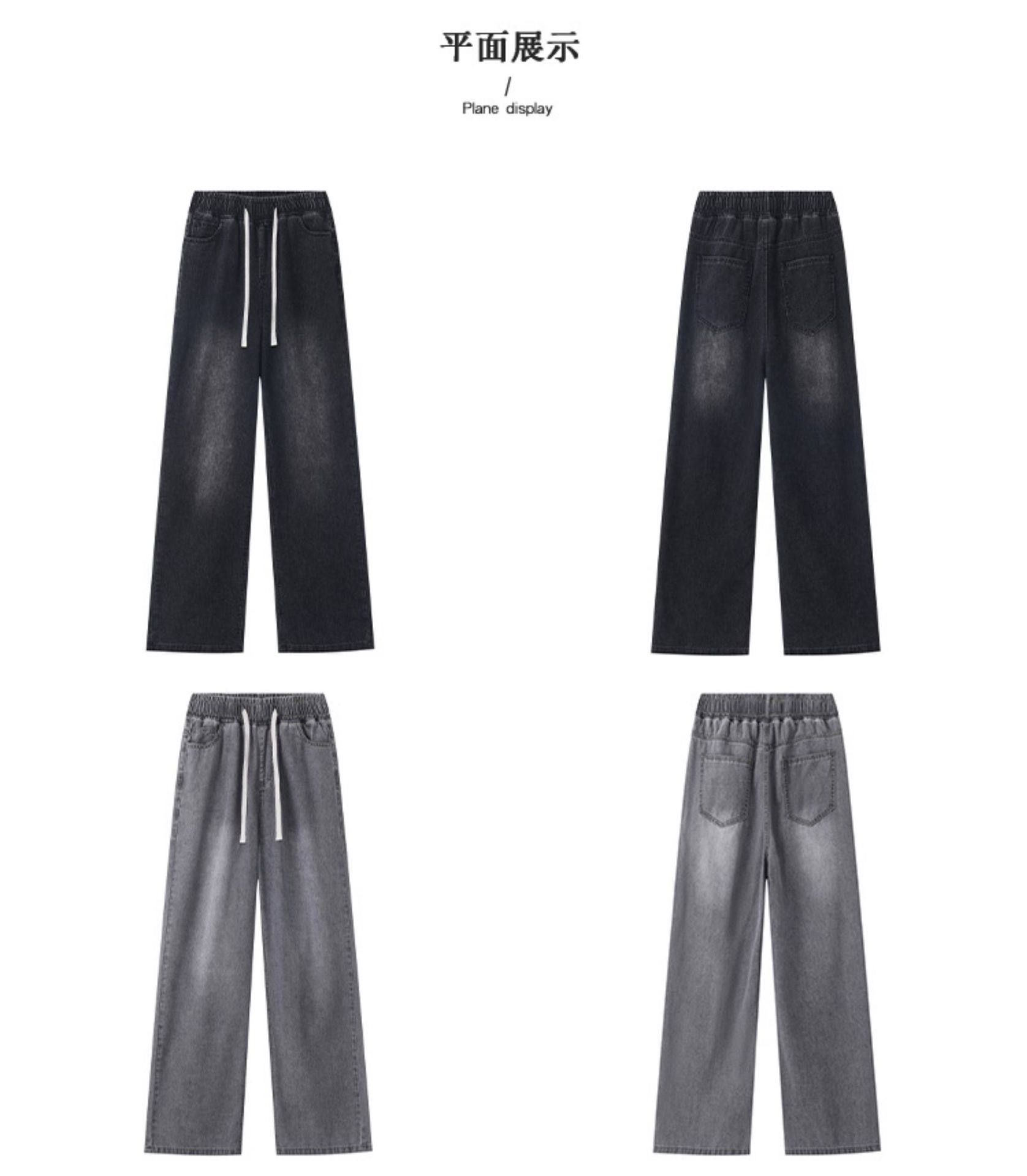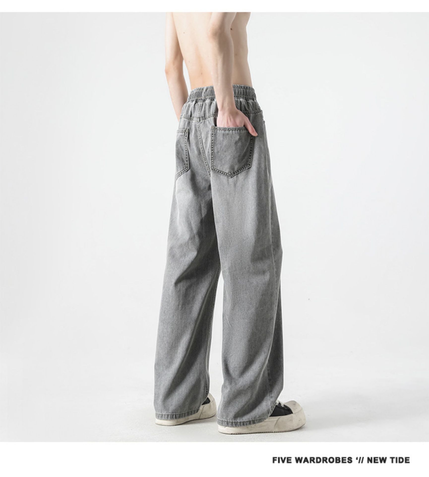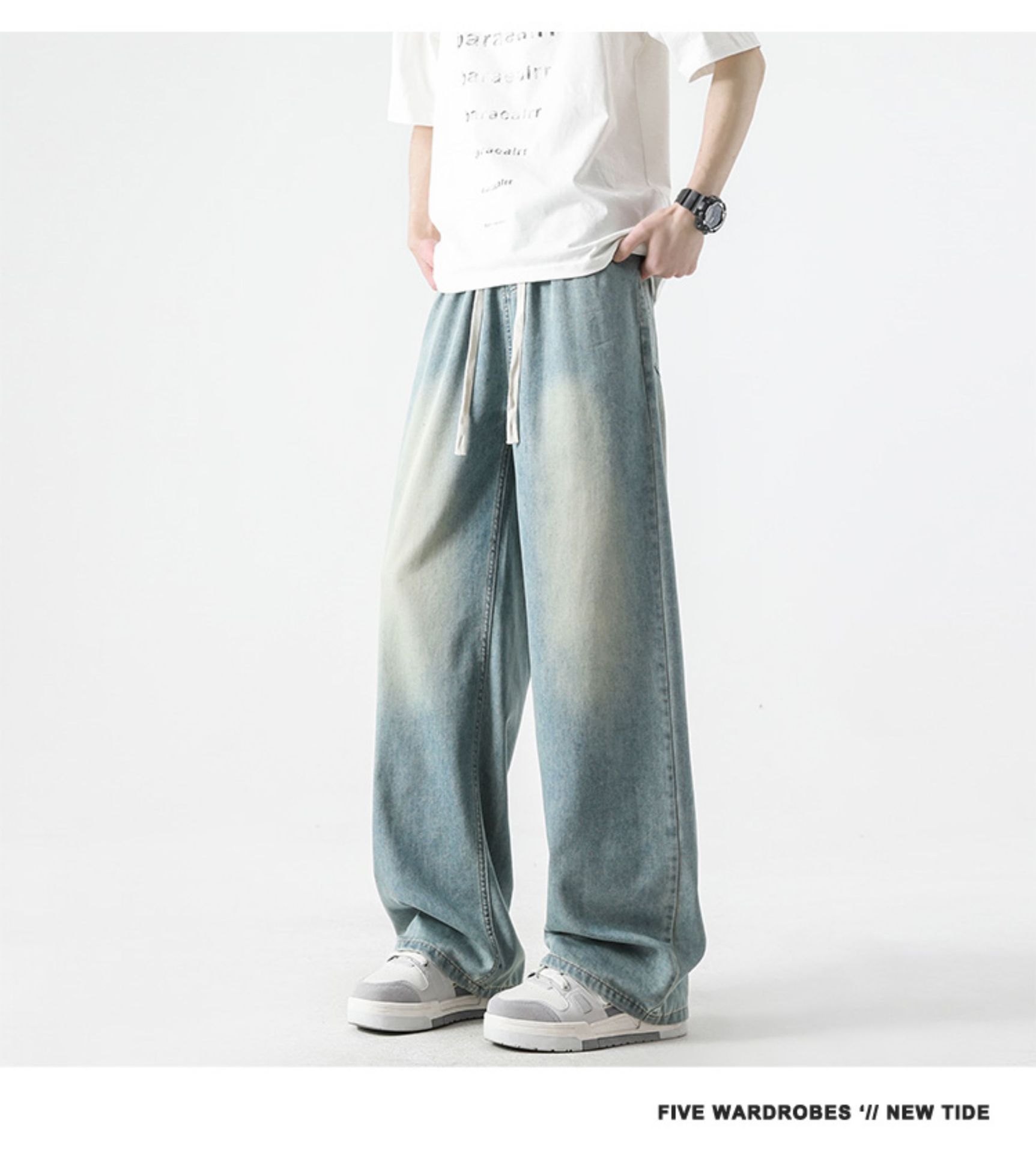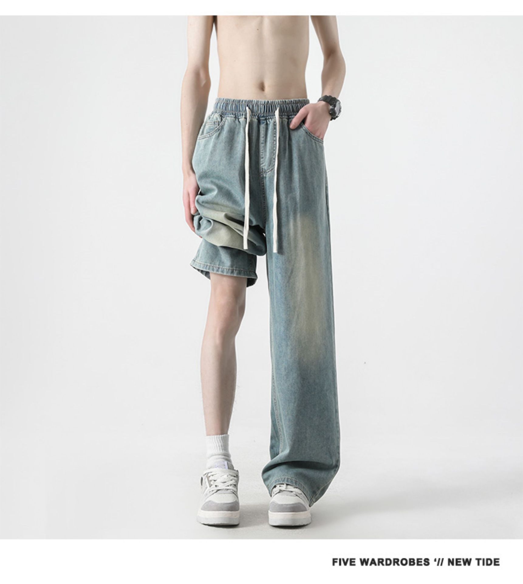 아이스 실크 청바지 남성 여름 얇은 2025 새로운 루즈 스트레이트 팬츠 리오셀 텐셀 드레이프 와이드 레그 팬츠스토어 가기