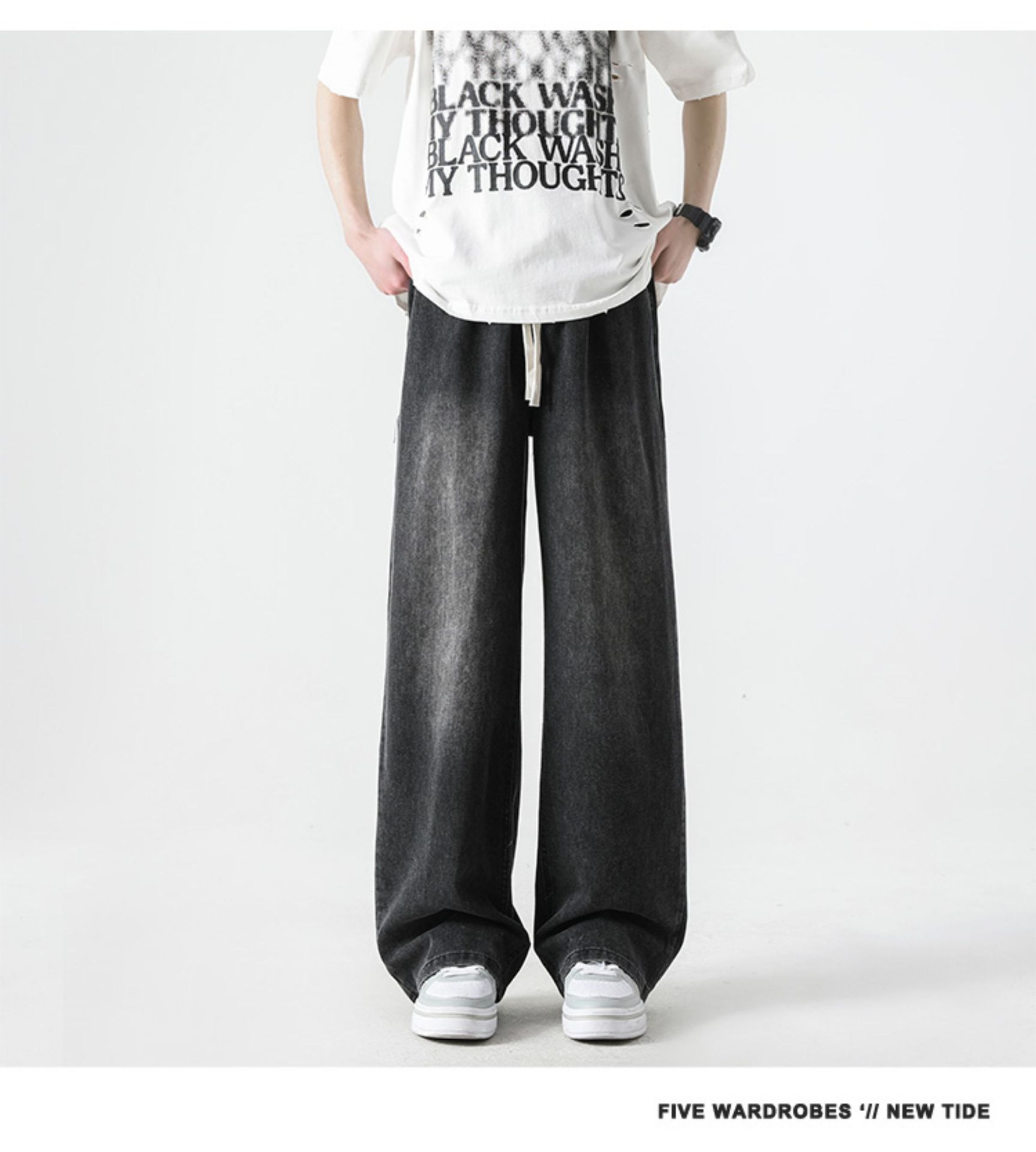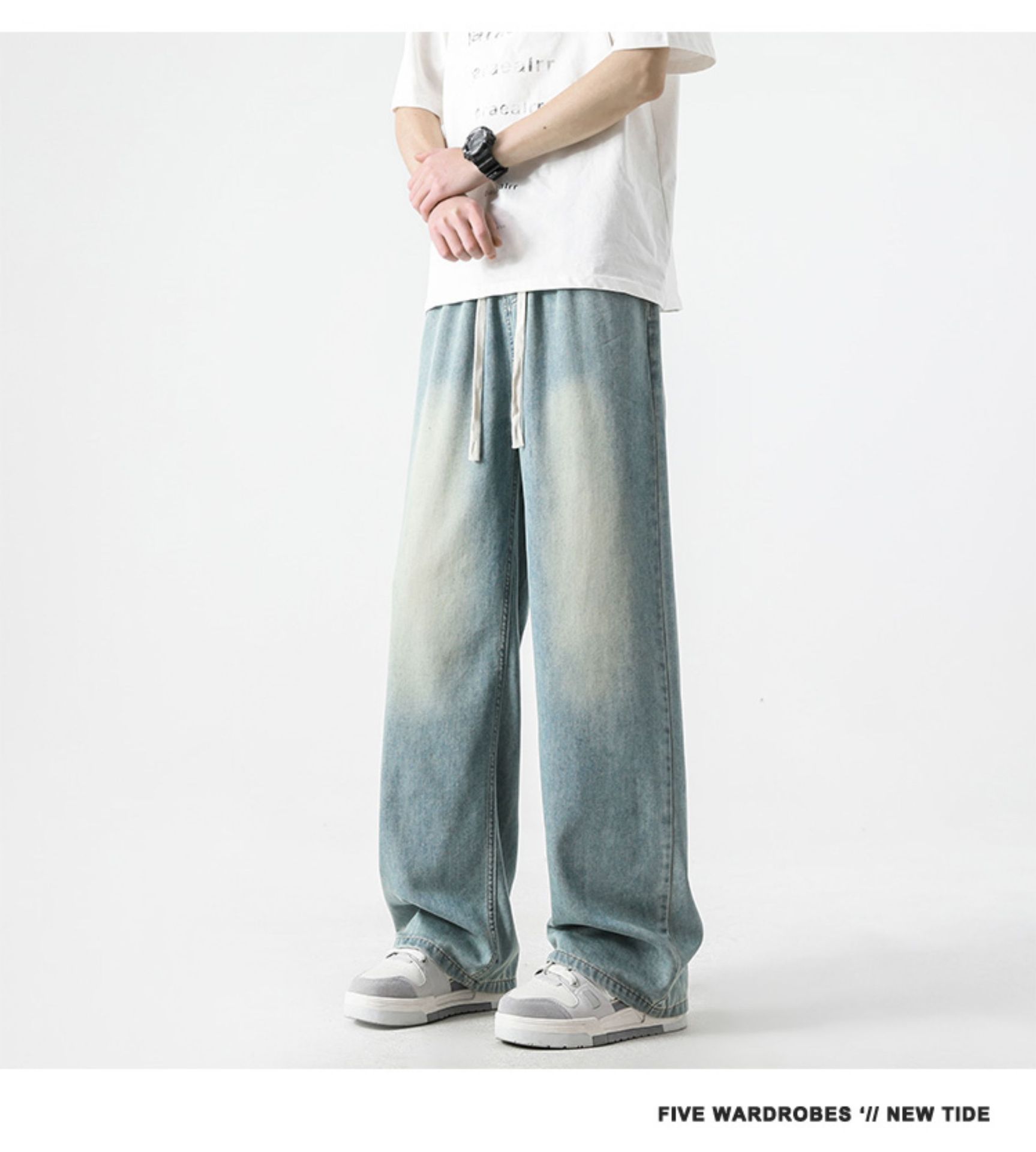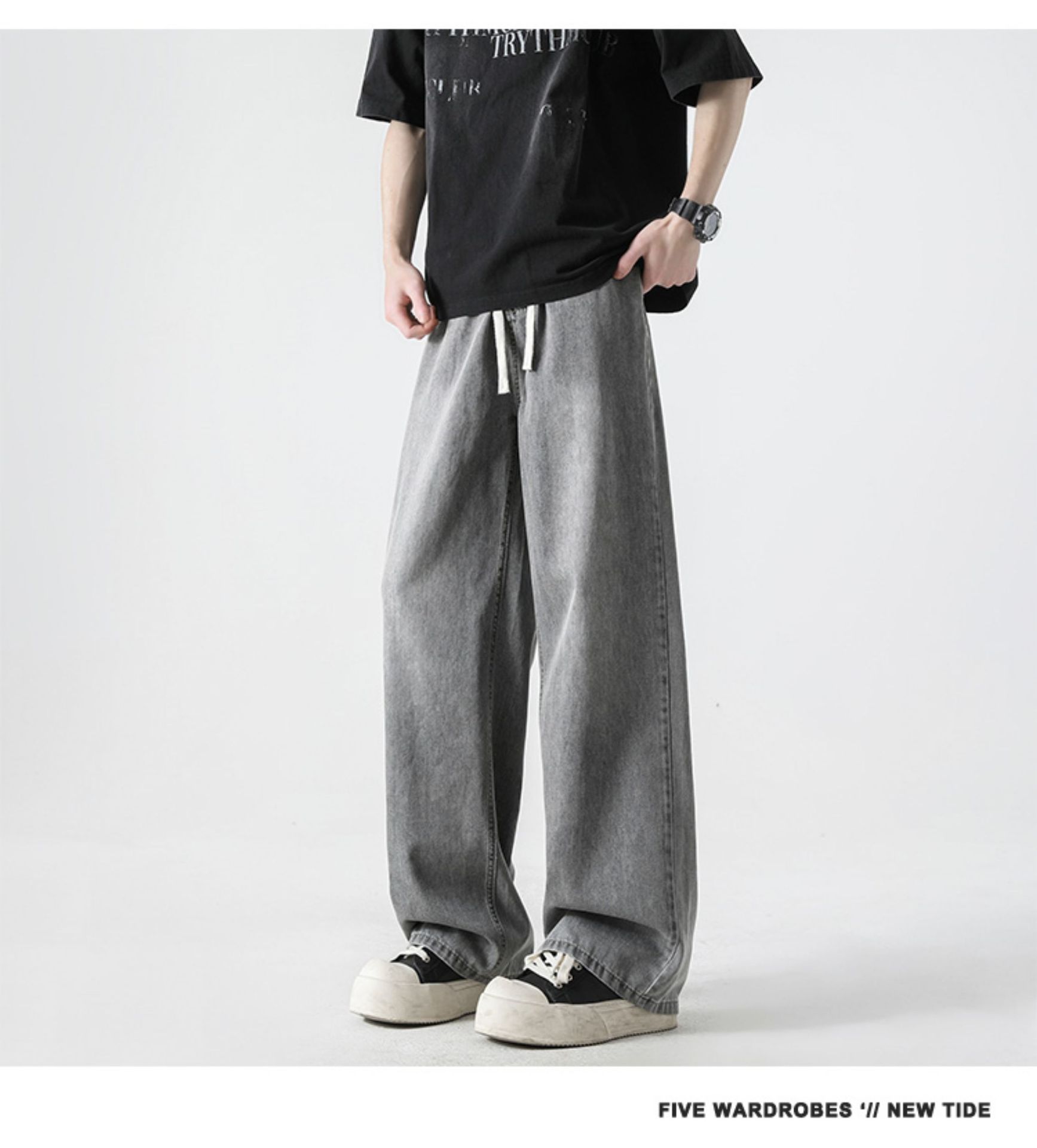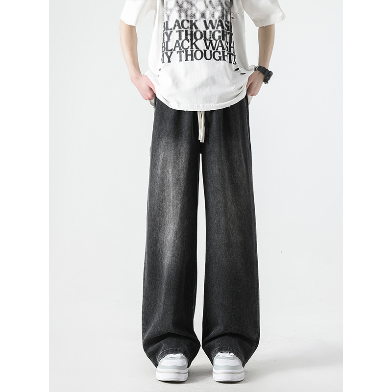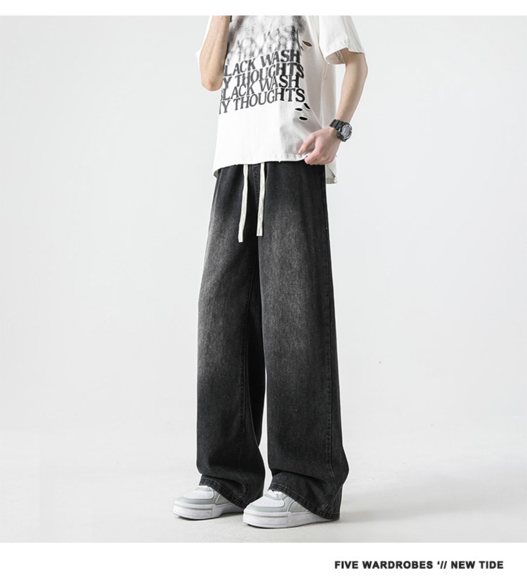 아이스 실크 청바지 남성 여름 얇은 2025 새로운 루즈 스트레이트 팬츠 리오셀 텐셀 드레이프 와이드 레그 팬츠스토어 가기