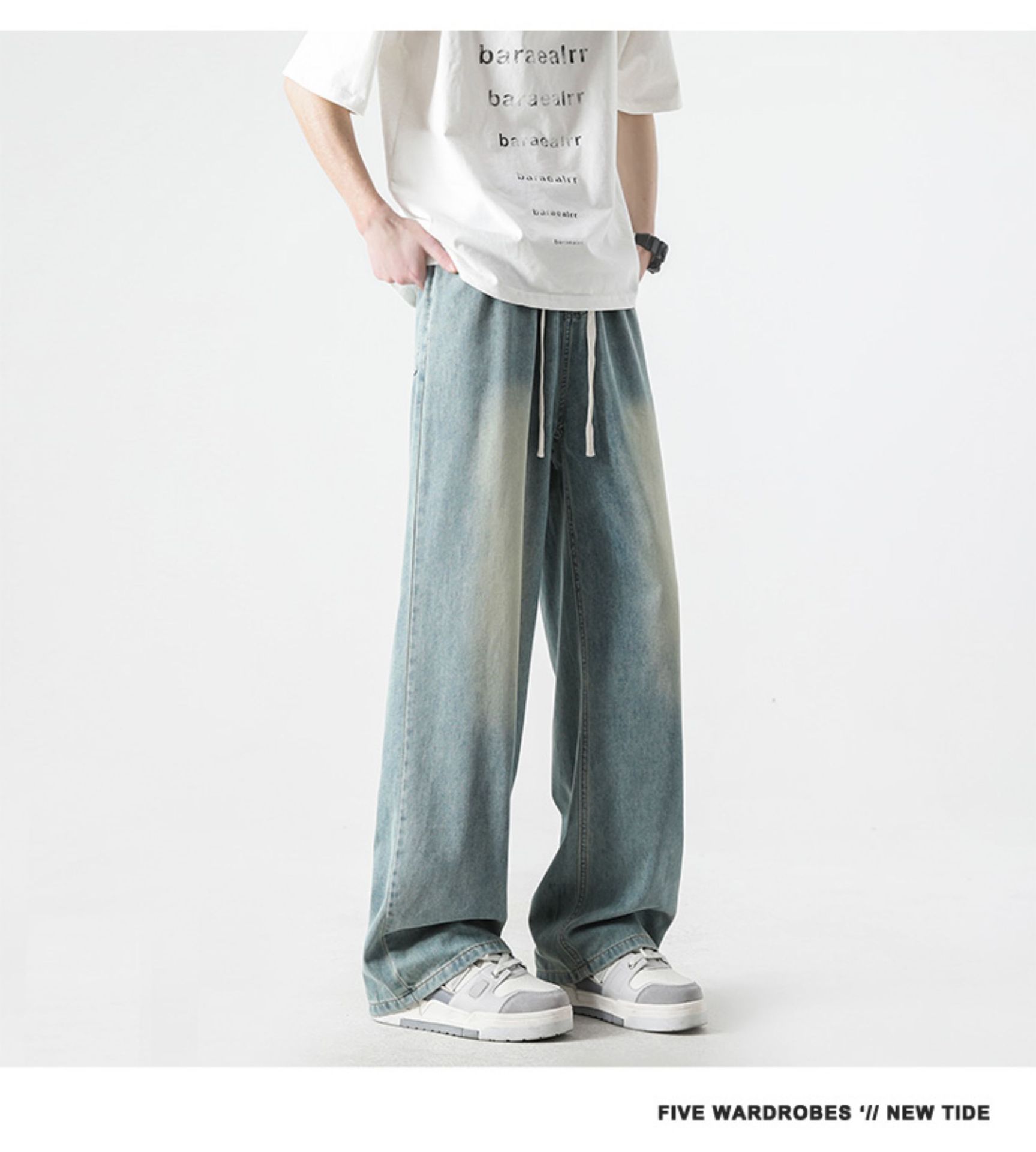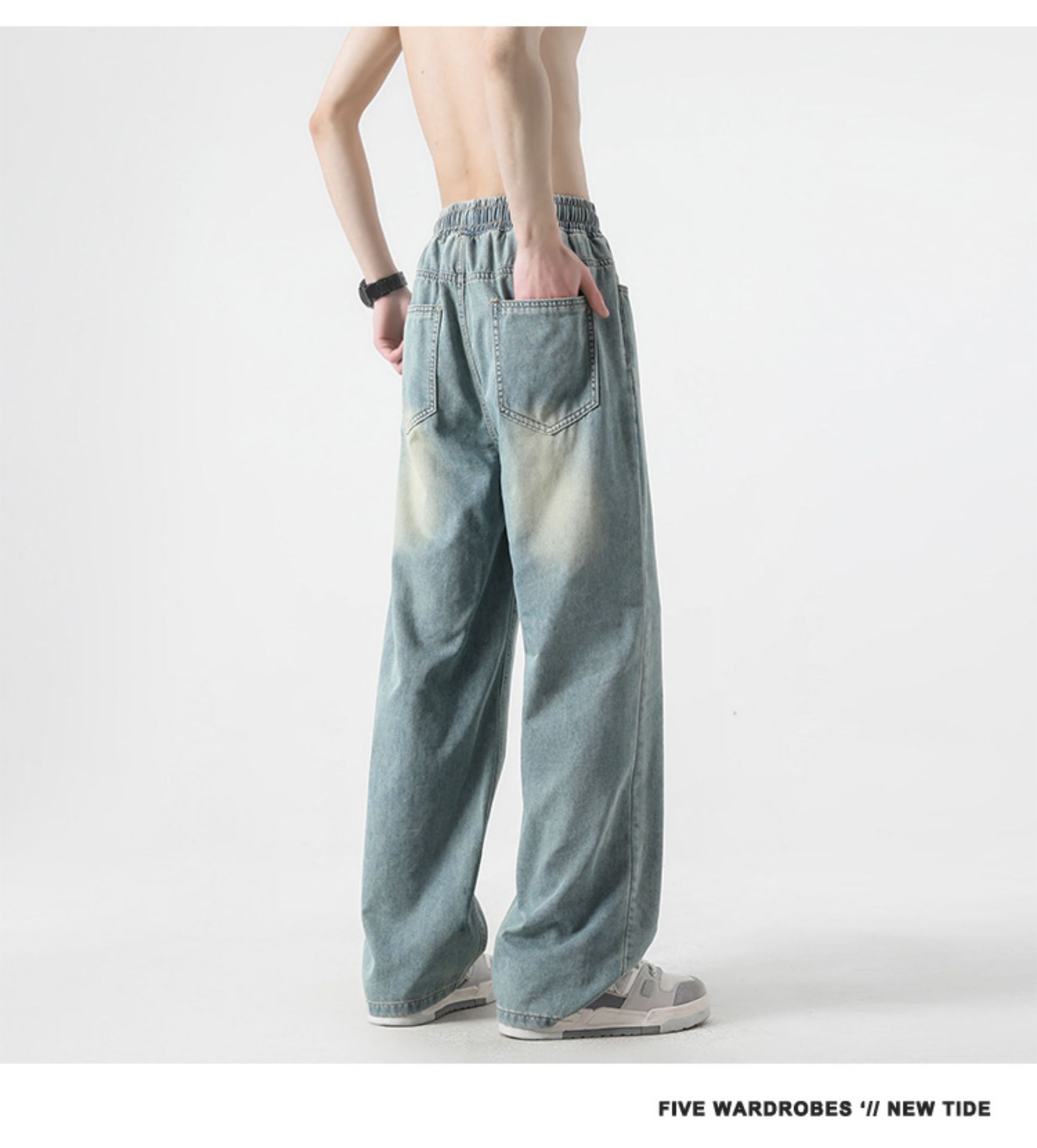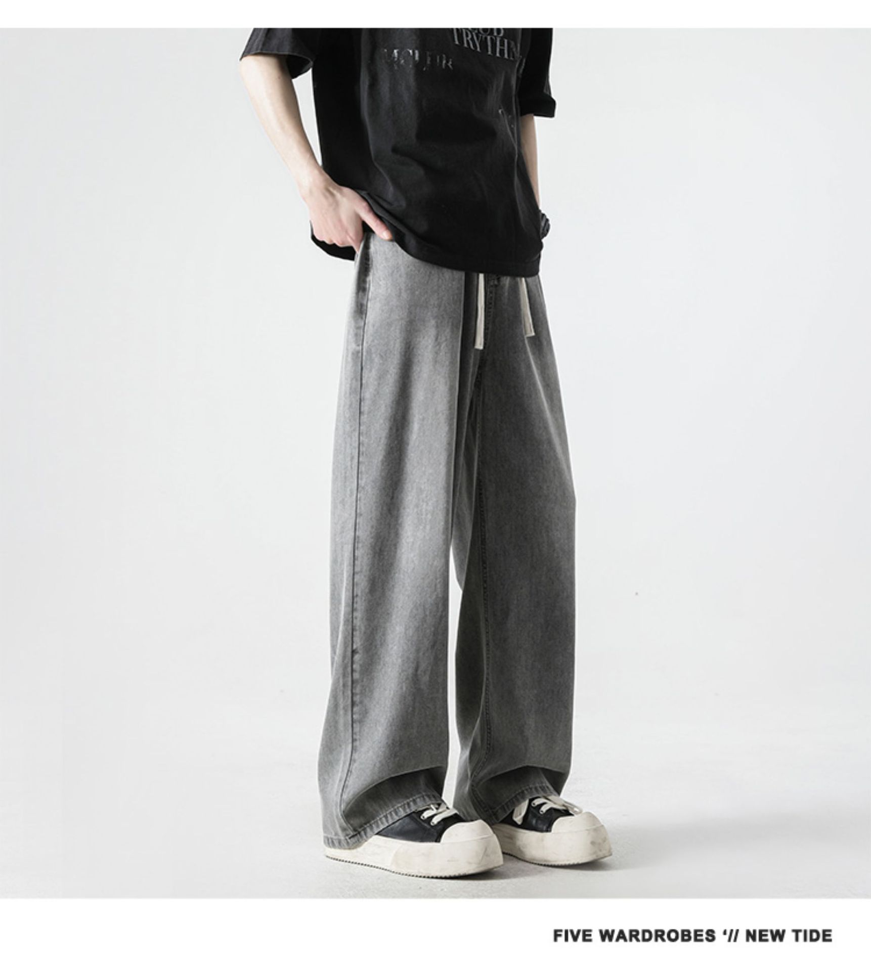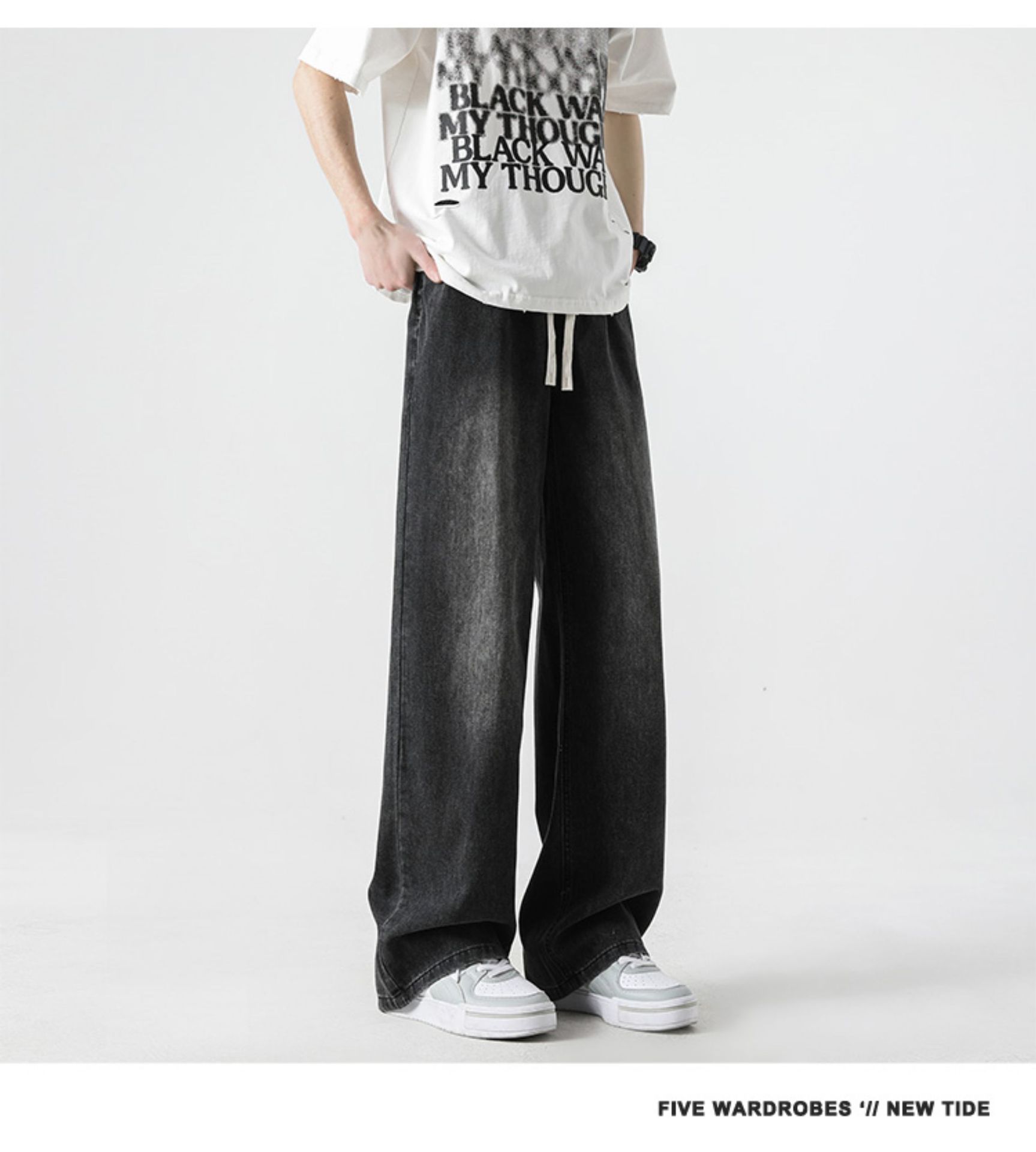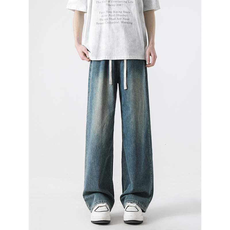 아이스 실크 청바지 남성 여름 얇은 2025 새로운 루즈 스트레이트 팬츠 리오셀 텐셀 드레이프 와이드 레그 팬츠스토어 가기