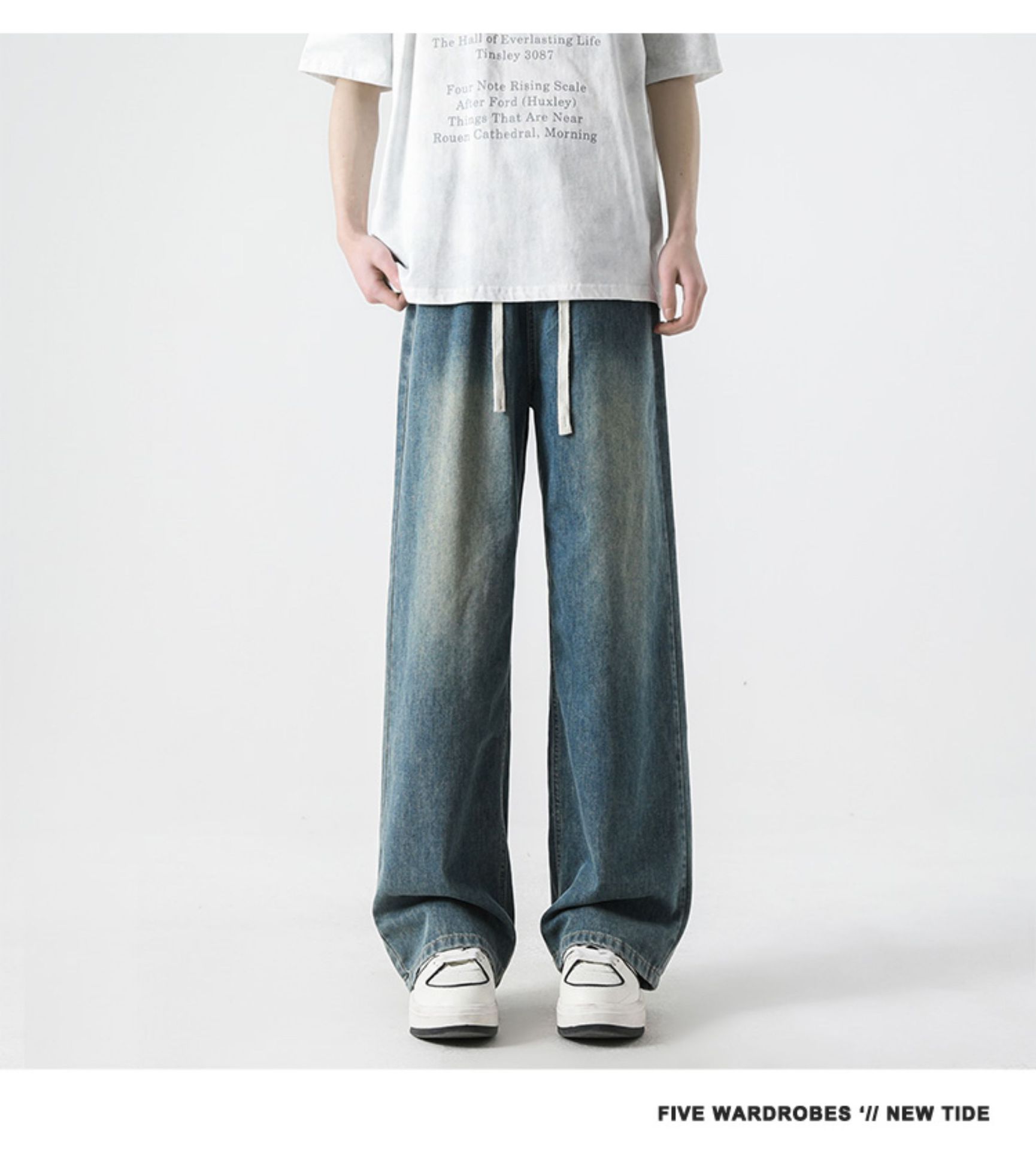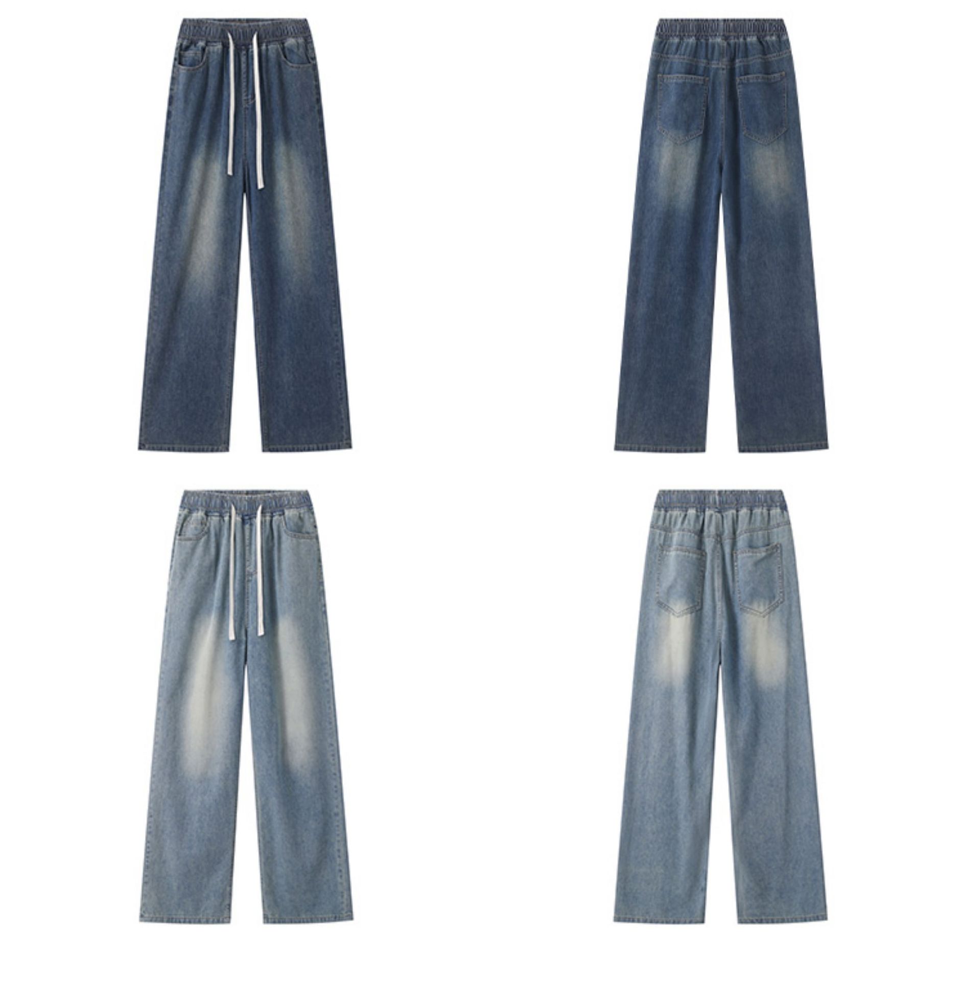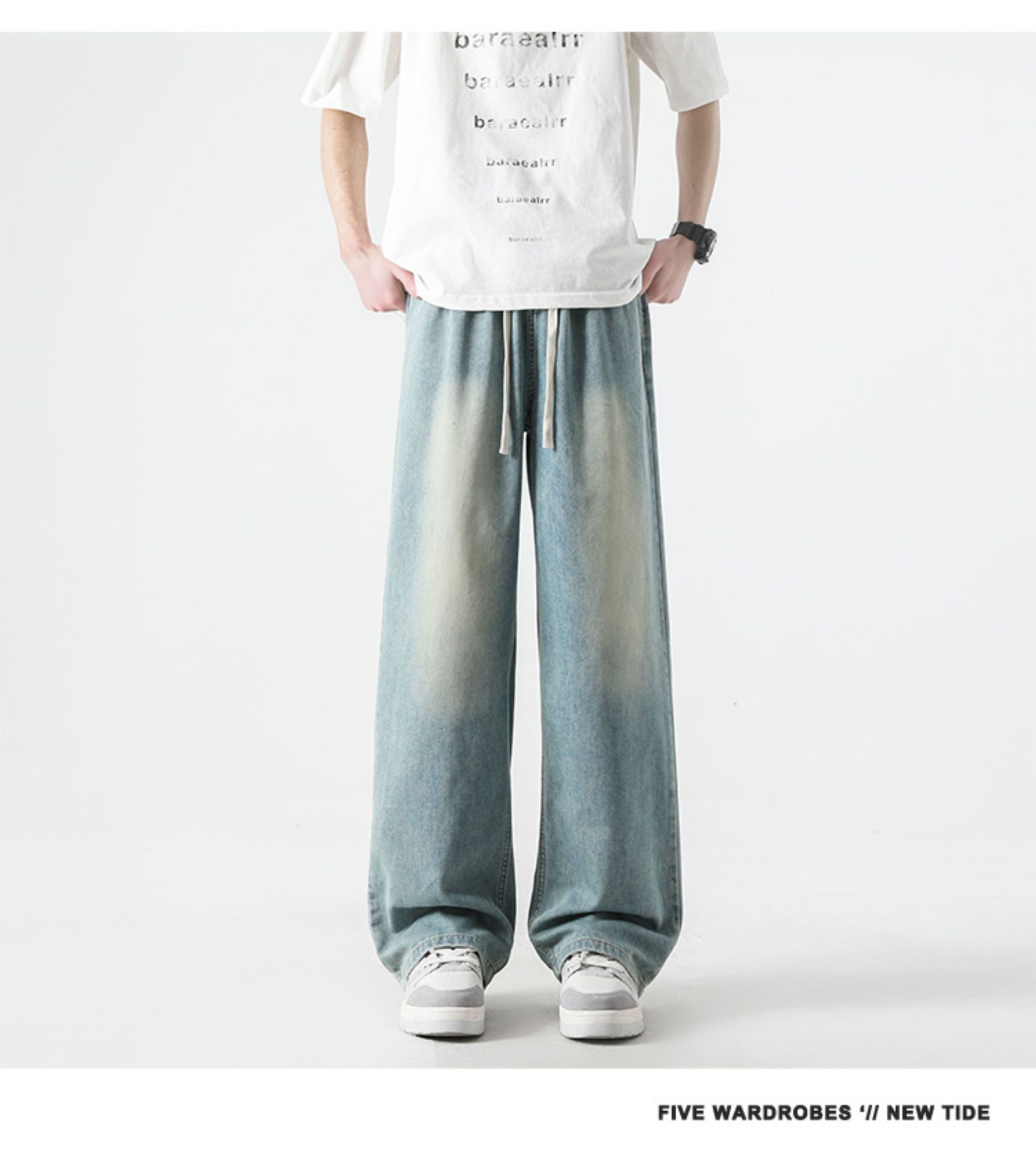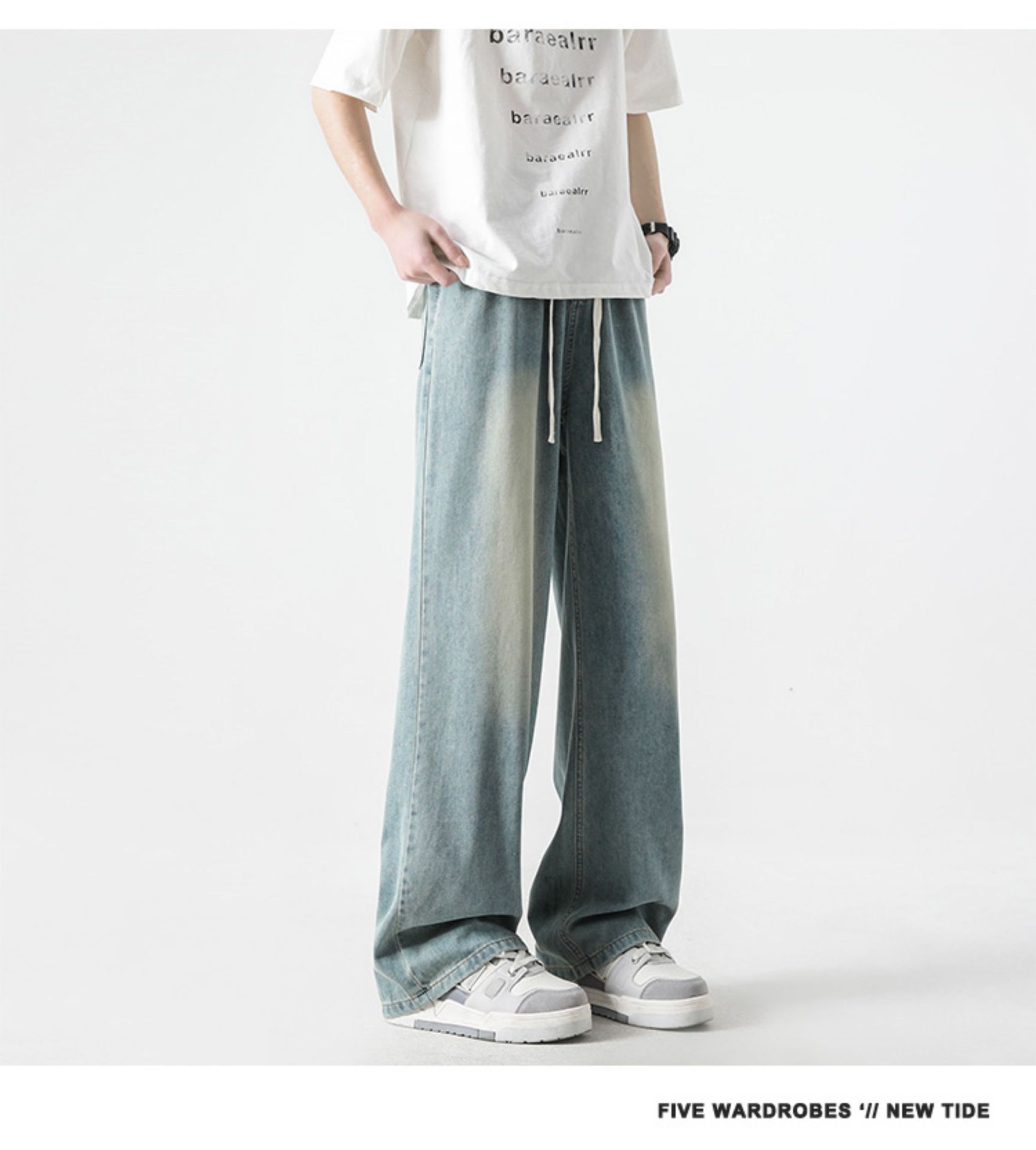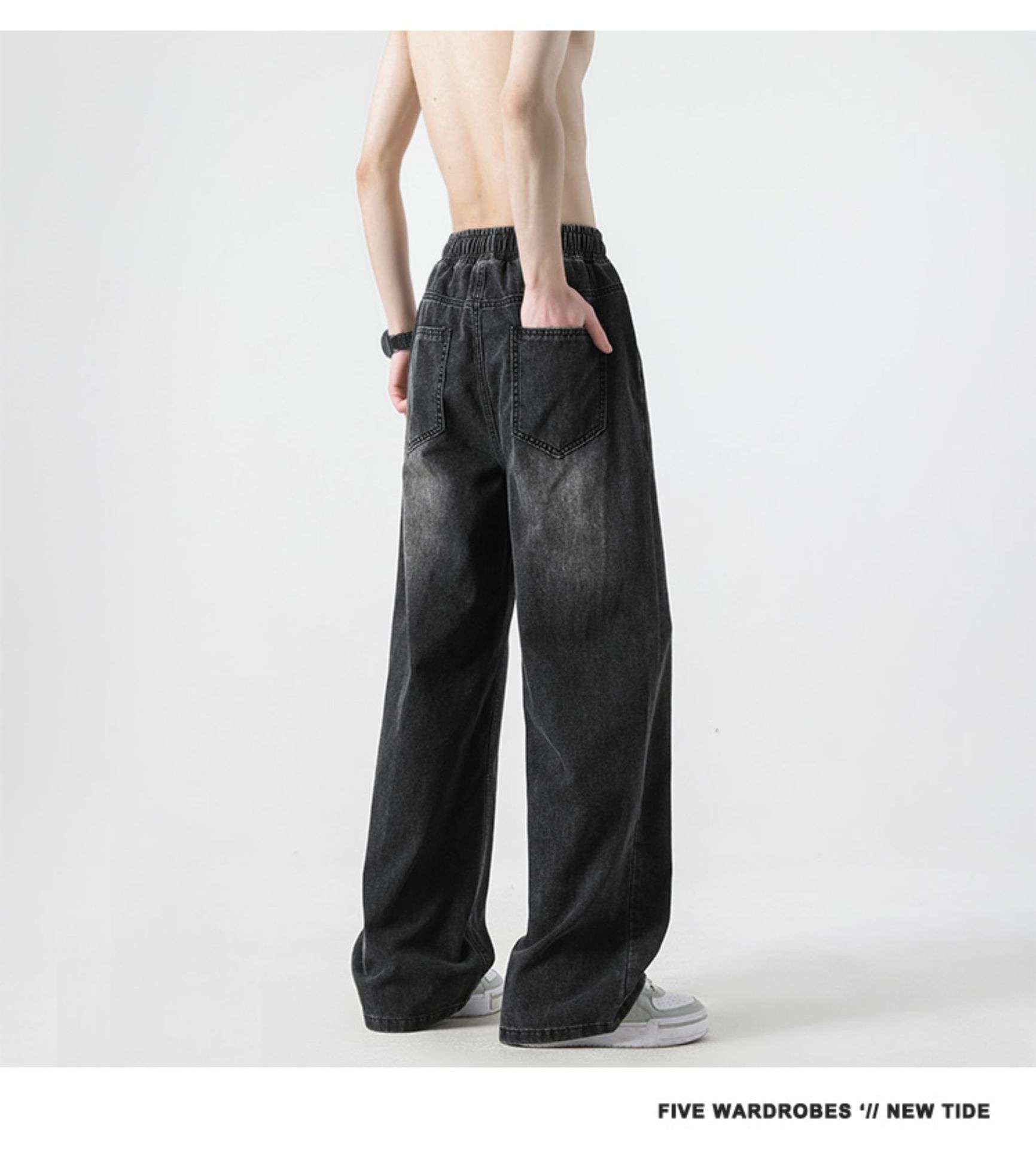 아이스 실크 청바지 남성 여름 얇은 2025 새로운 루즈 스트레이트 팬츠 리오셀 텐셀 드레이프 와이드 레그 팬츠스토어 가기