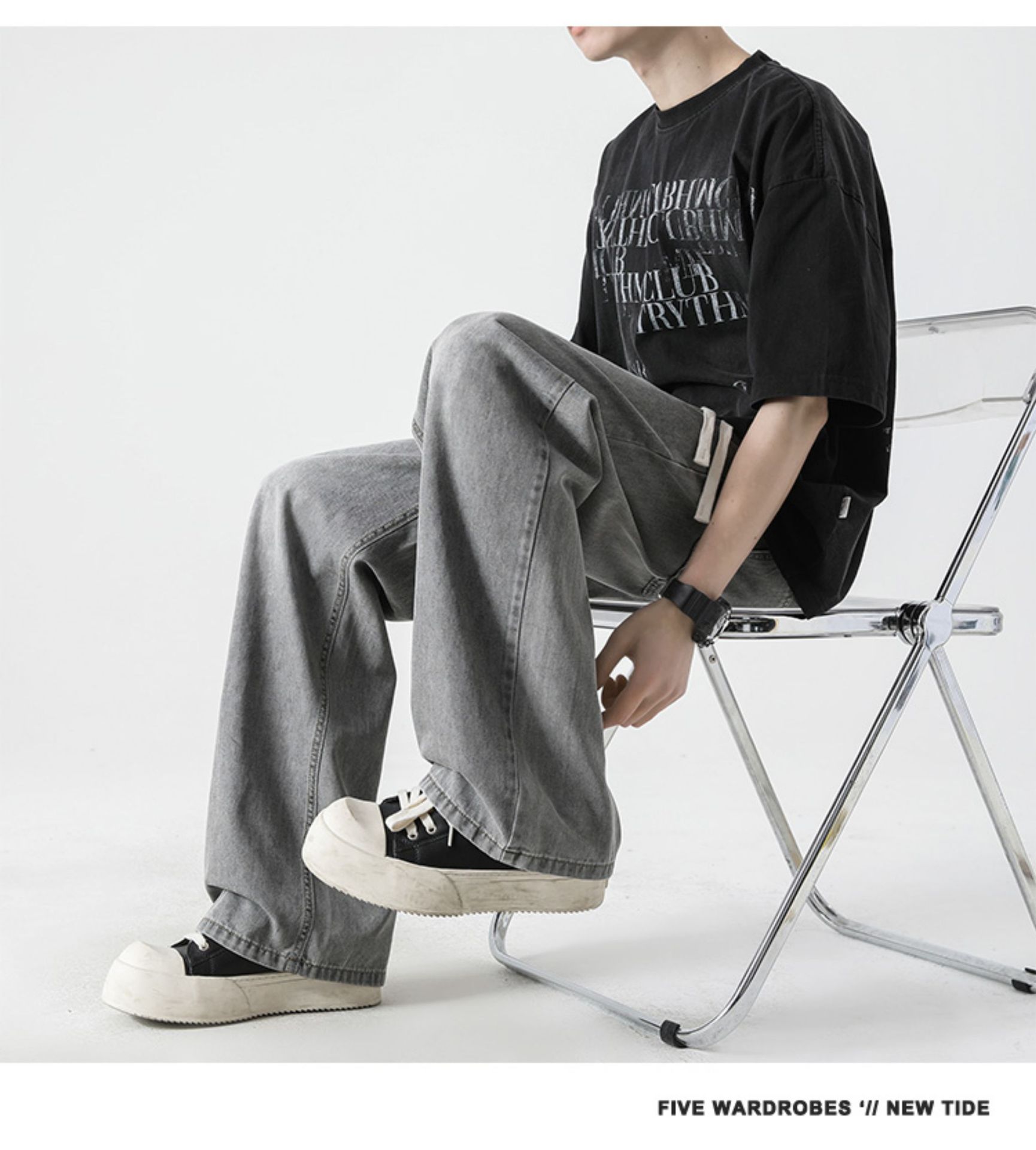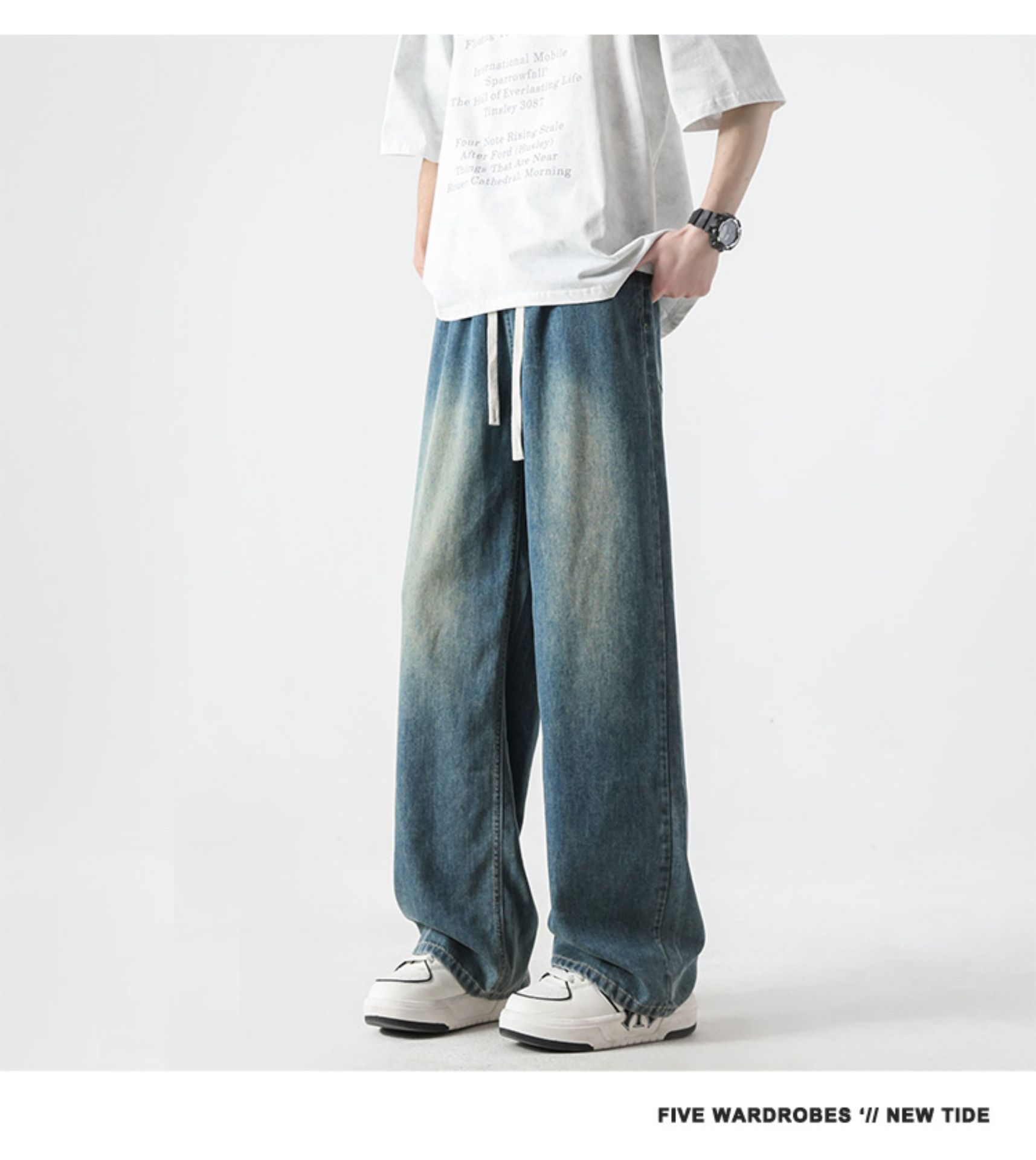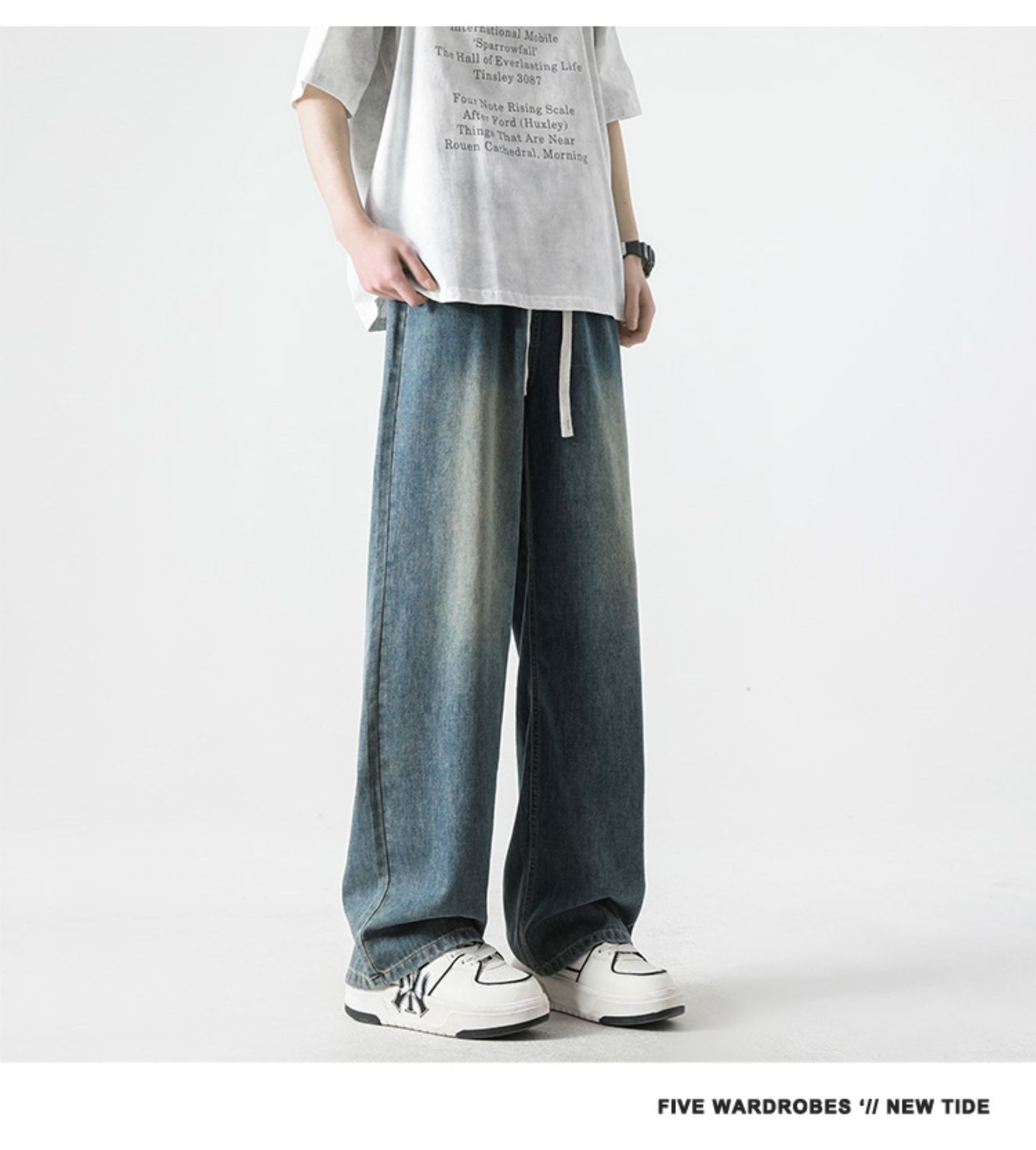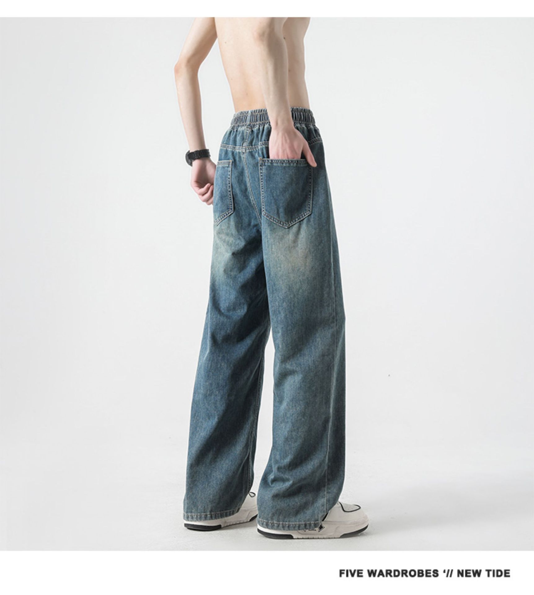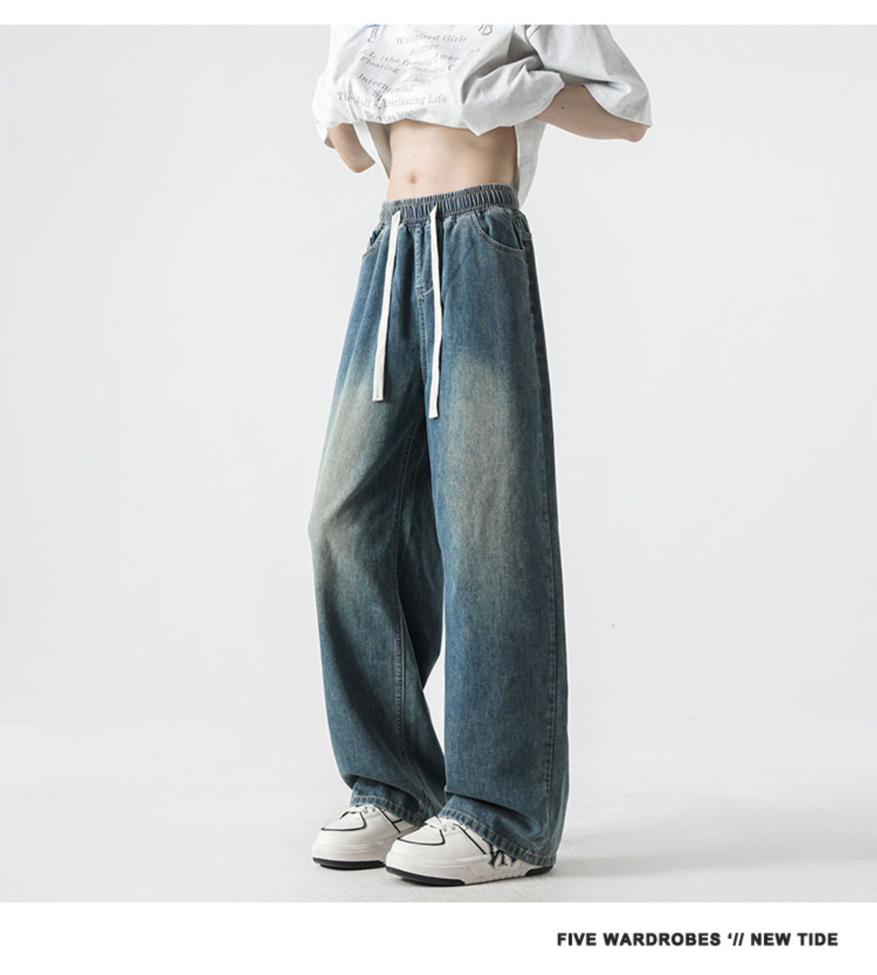 아이스 실크 청바지 남성 여름 얇은 2025 새로운 루즈 스트레이트 팬츠 리오셀 텐셀 드레이프 와이드 레그 팬츠스토어 가기