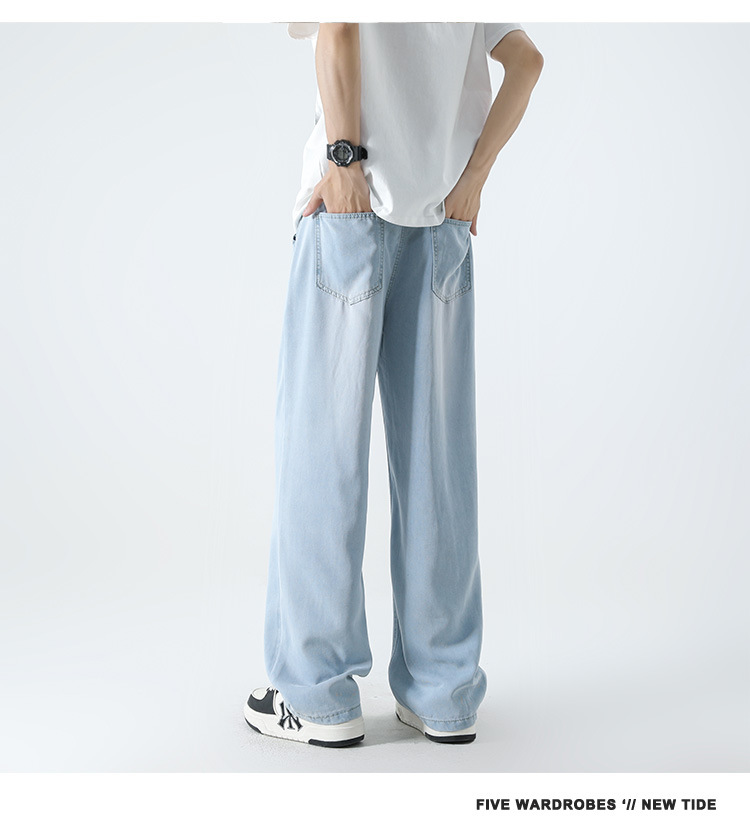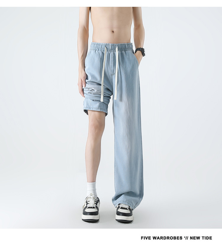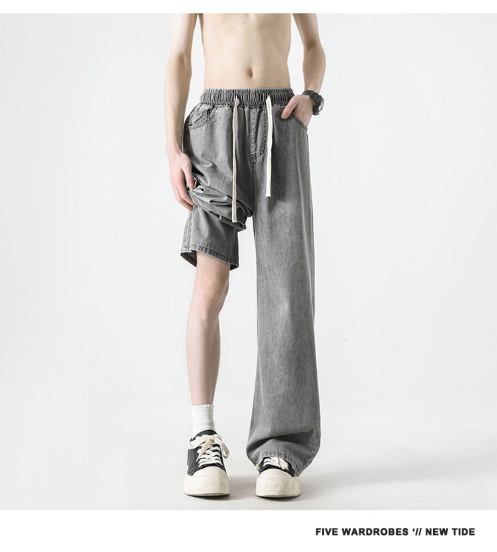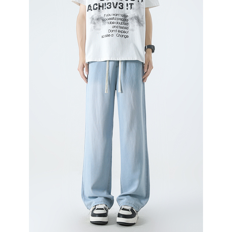 아이스 실크 청바지 남성 여름 얇은 2025 새로운 루즈 스트레이트 팬츠 리오셀 텐셀 드레이프 와이드 레그 팬츠